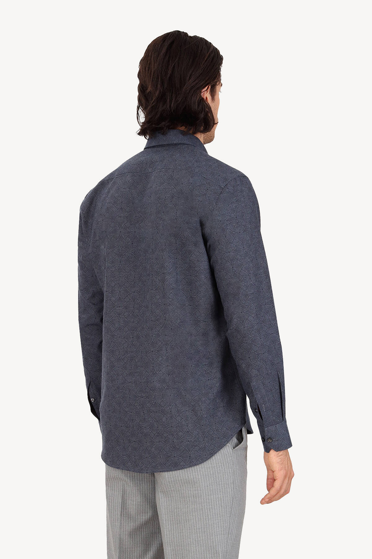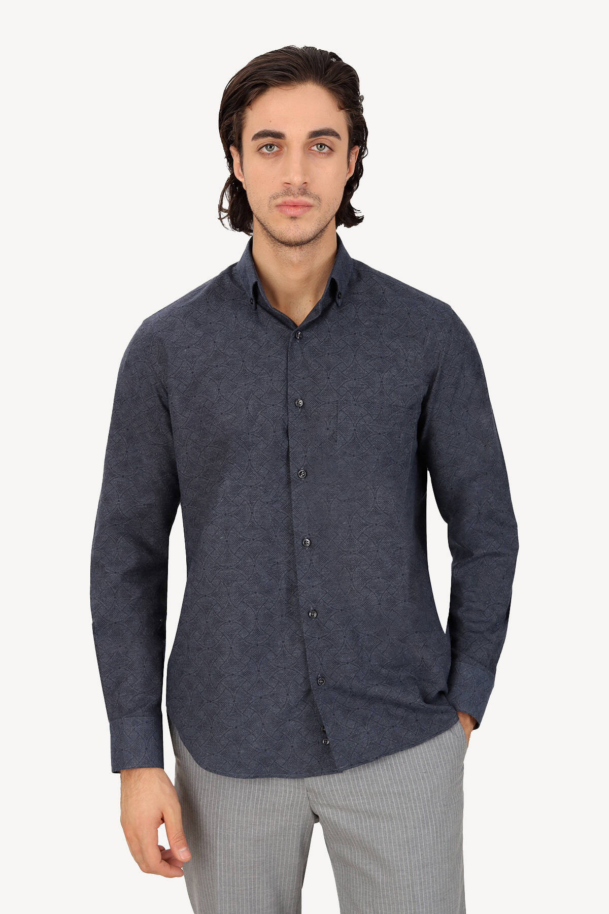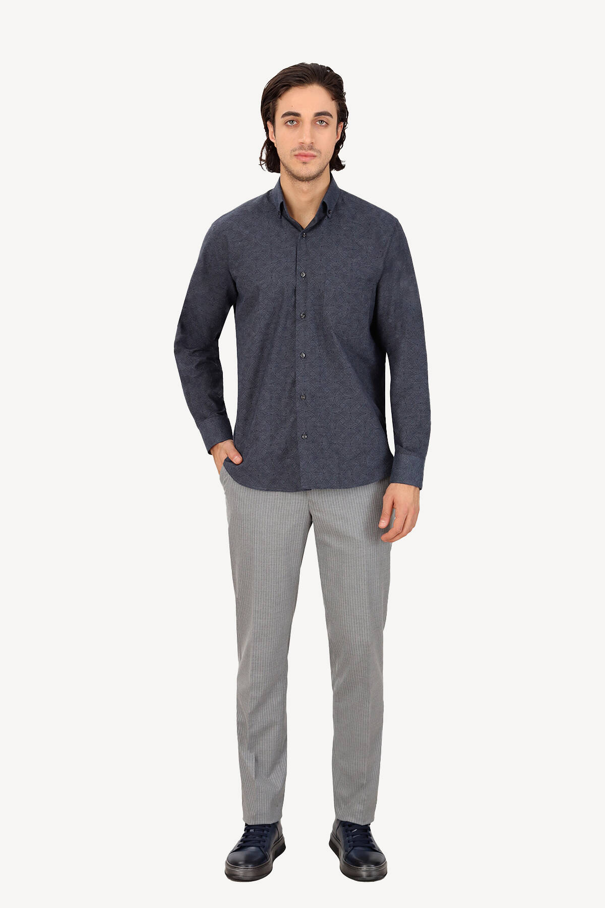 Erkek Gri Uzun Kol Regular Fit Desenli Gömlek