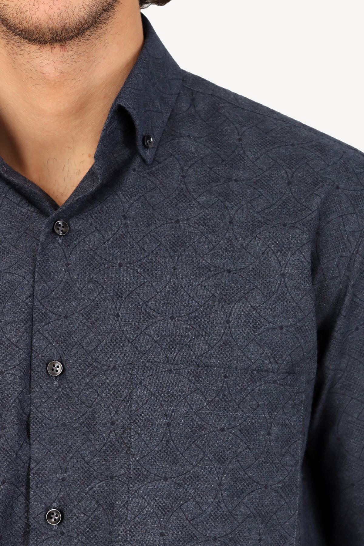 Erkek Füme Uzun Kol Regular Fit Desenli Gömlek
