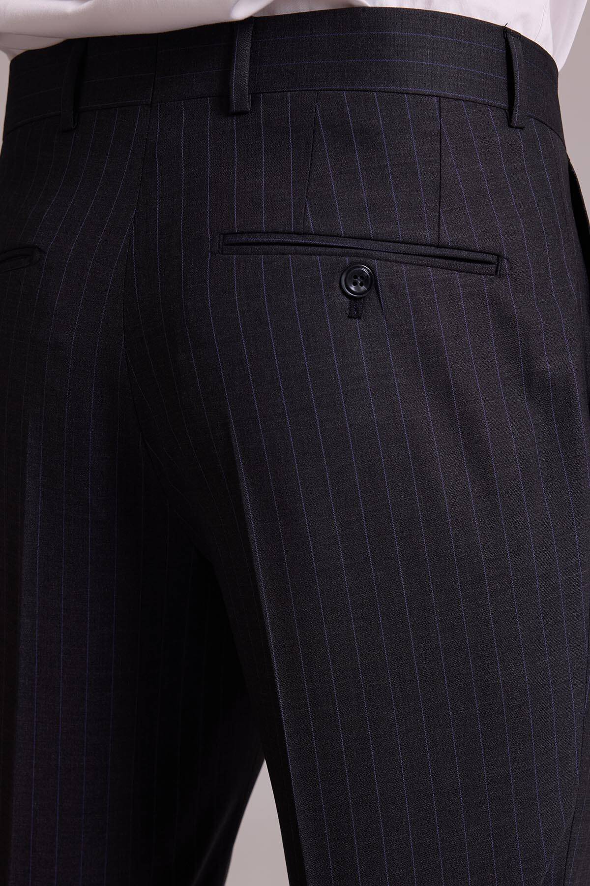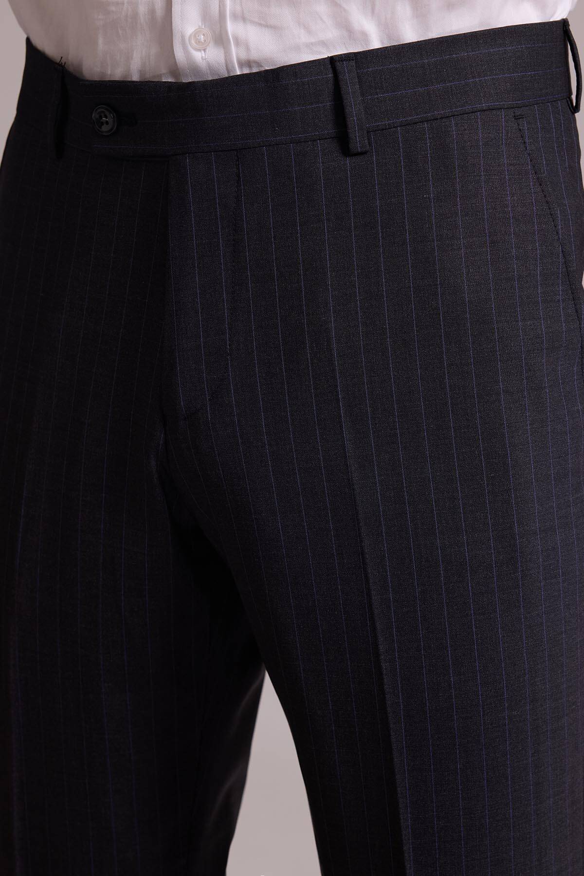 Erkek Gri Çizgili Slim Fit Sivri Yaka Kruvaze %100 Yün Takım Elbise