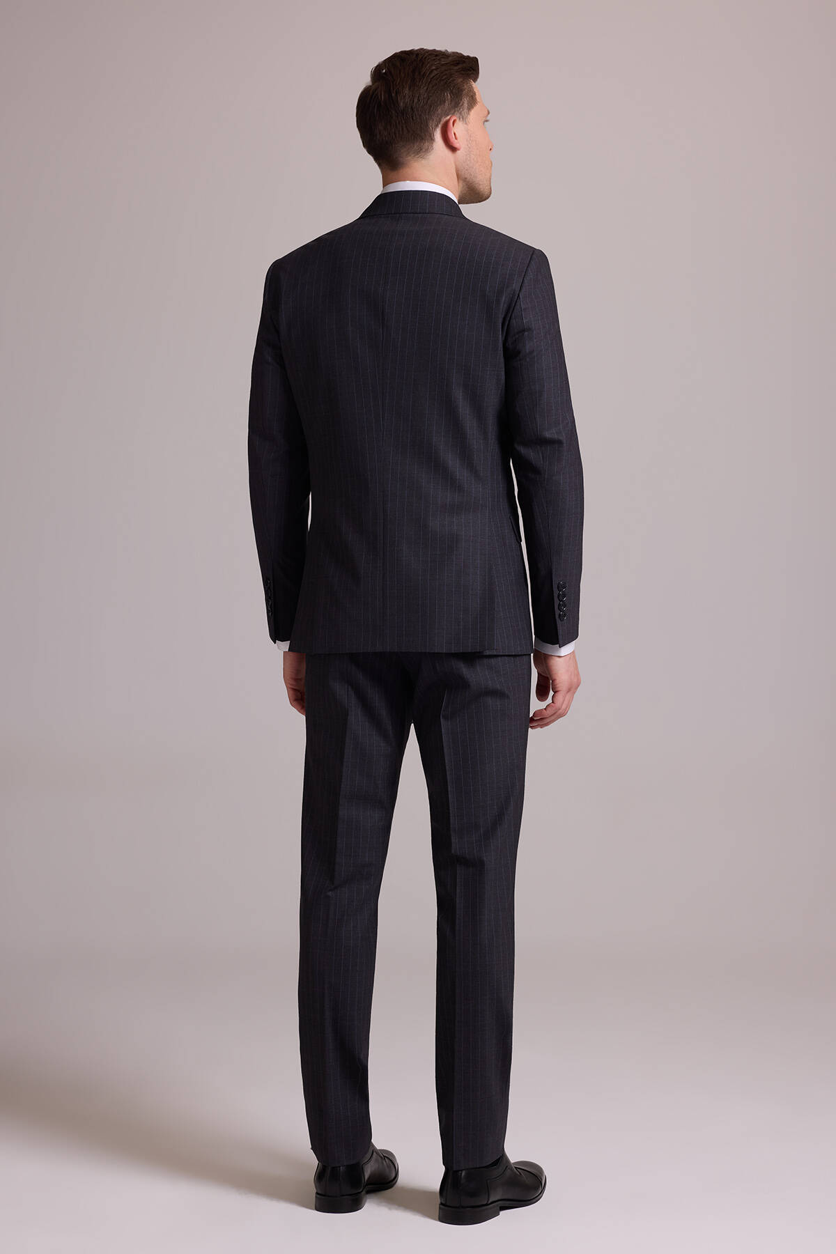 Erkek Siyah Slim Fit Çizgili Kruvaze Yün Takım Elbise