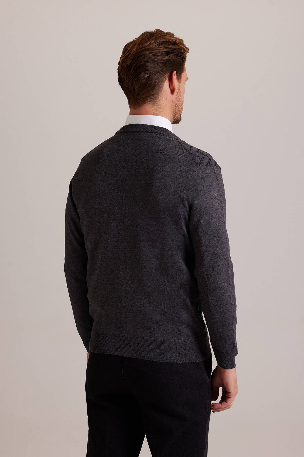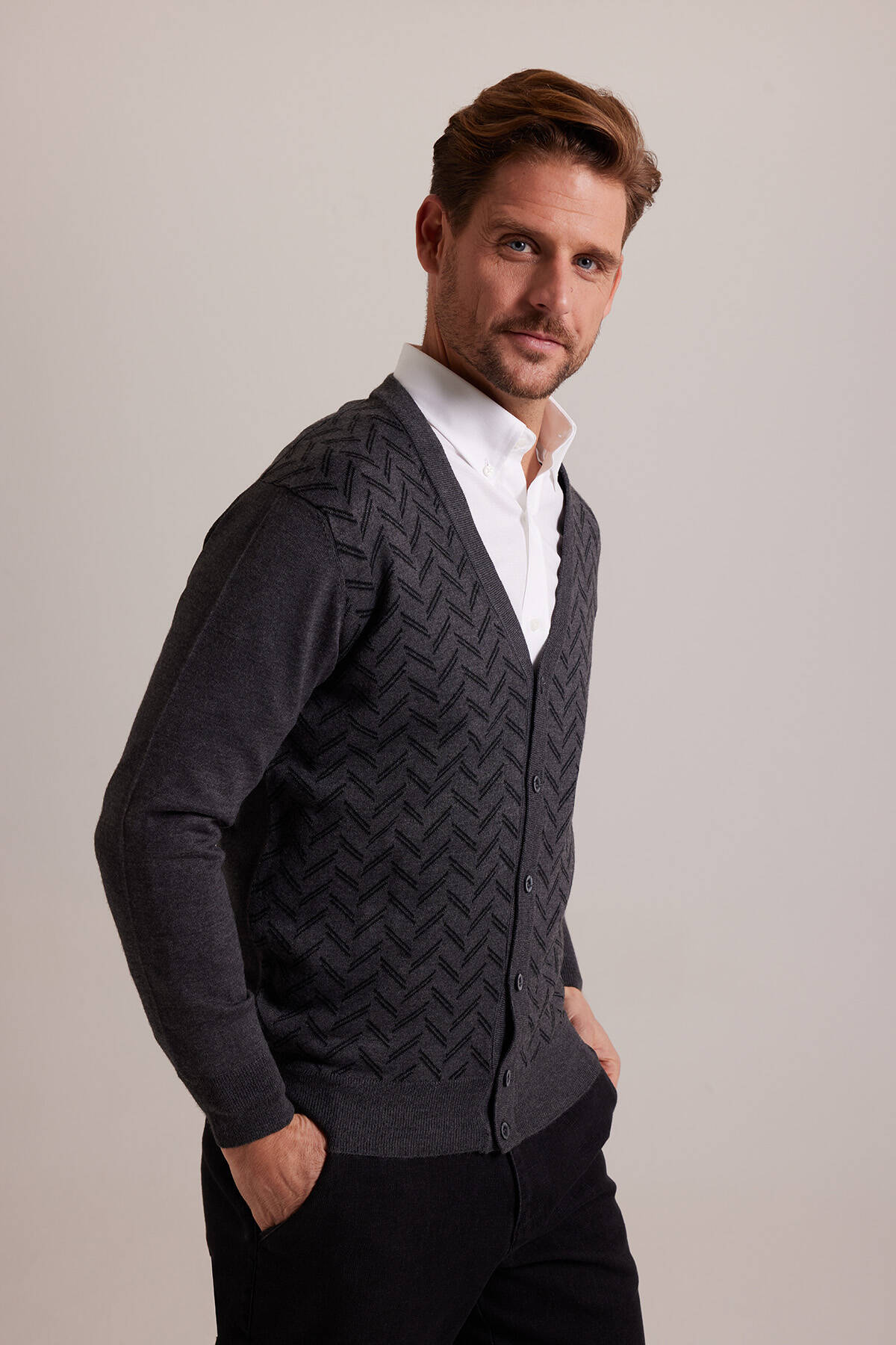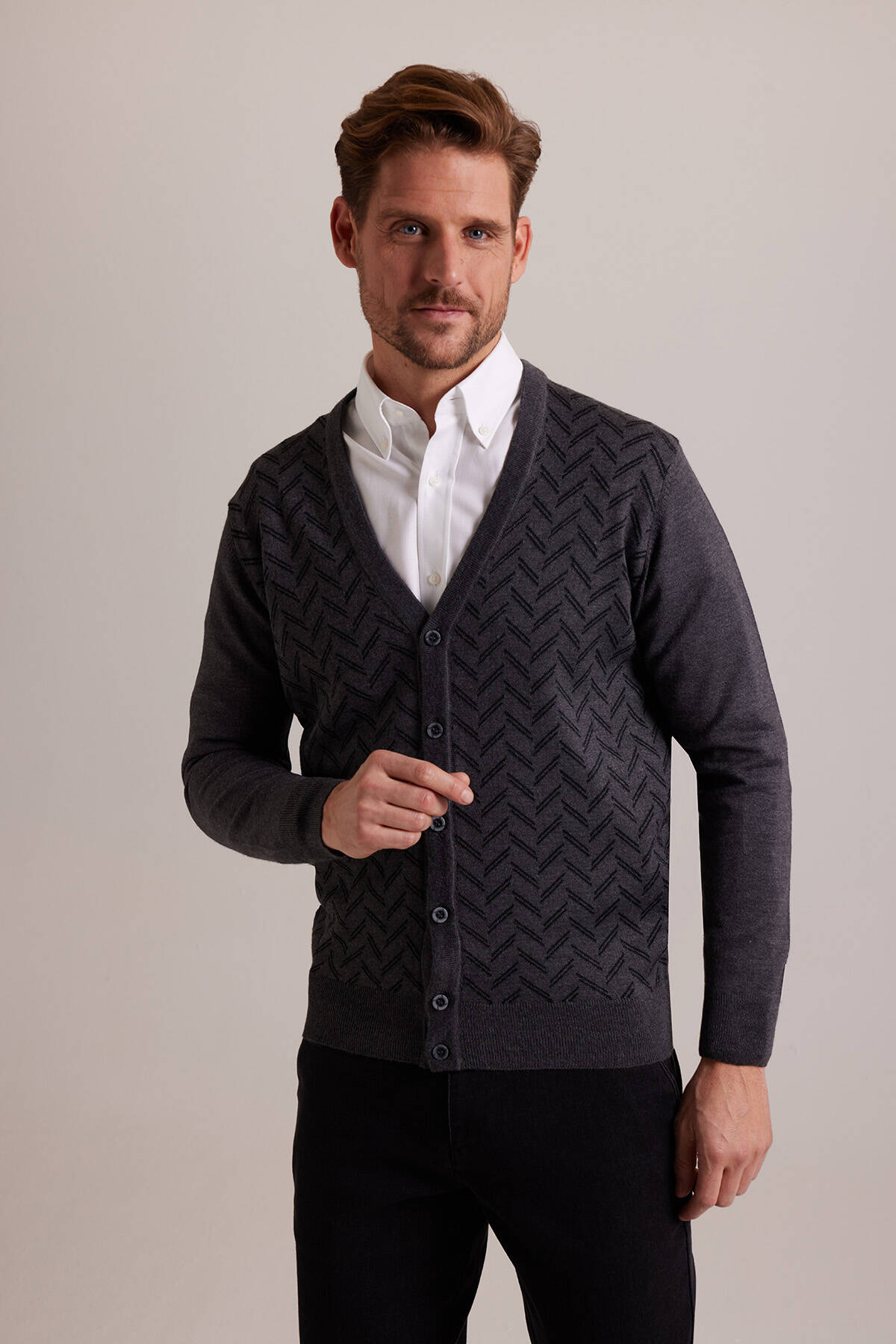 Erkek Gri Desenli Triko Hırka