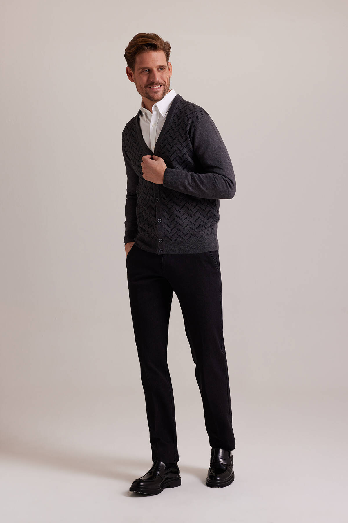 Erkek Siyah Desenli Triko Hırka