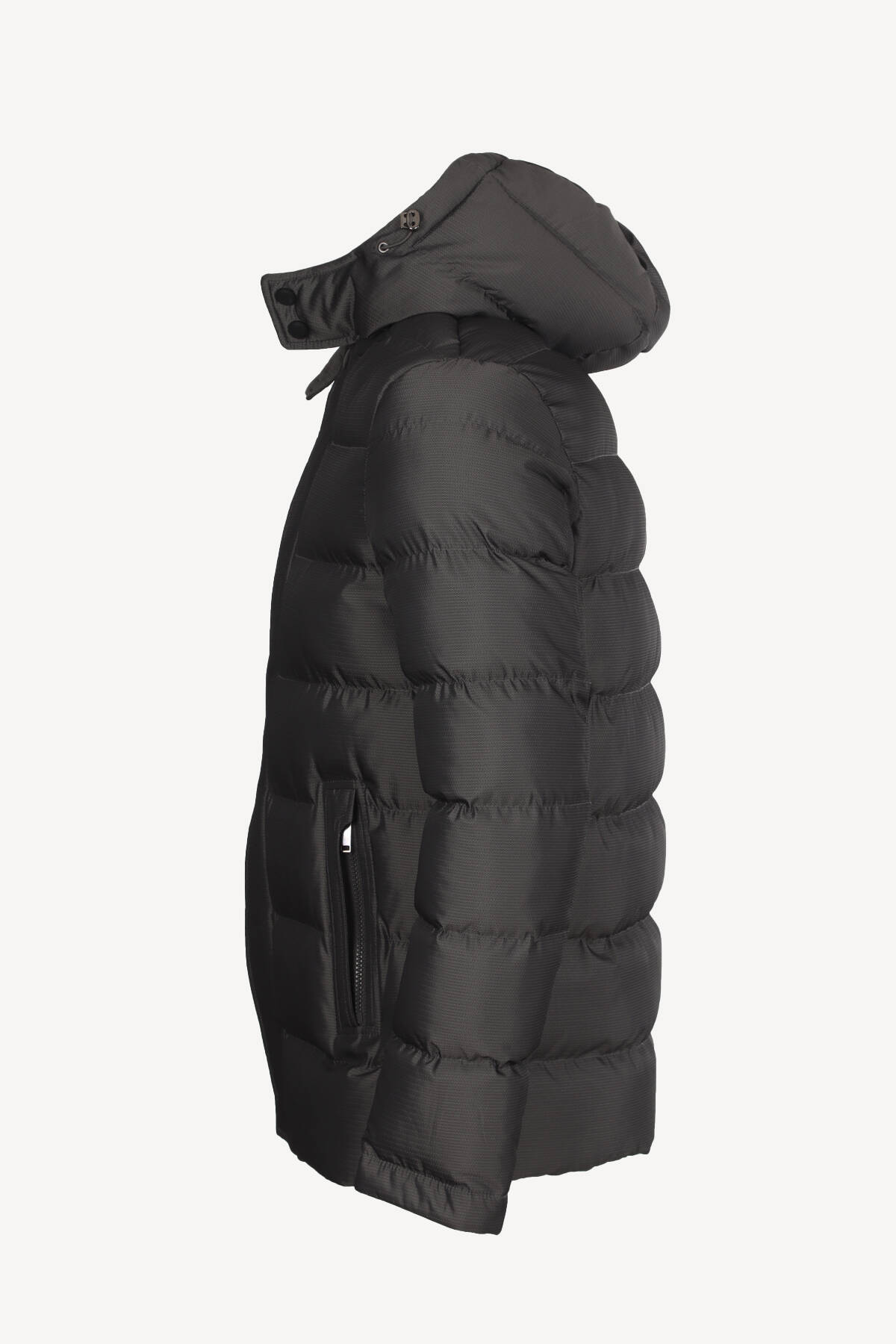 Erkek Siyah Kapüşonlu Klasik Kaban
