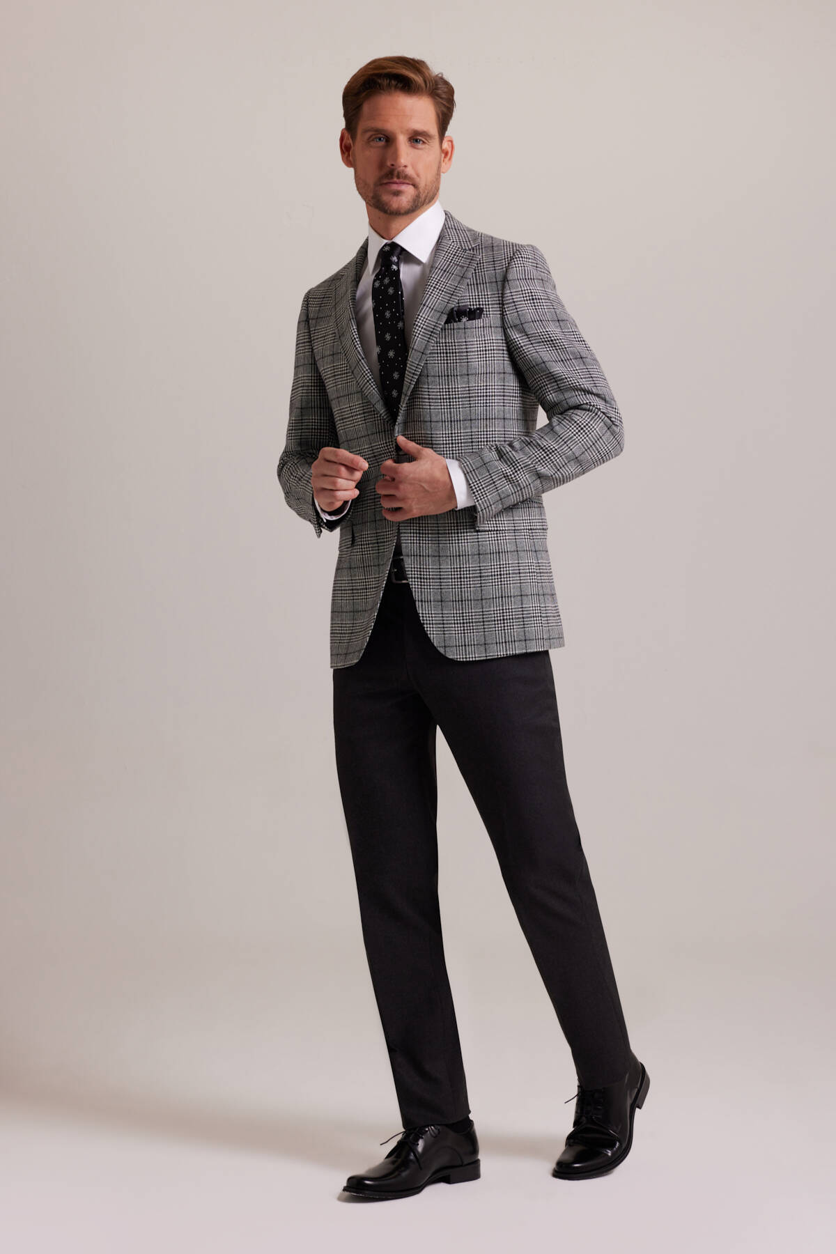 YSF Giyim kış koleksiyonunun favorisi olan Erkek Gri Kışlık Yünlü Regular Fit Ekose Desenli Tek Ceket, lüks kumaşı ve eşsiz formuyla stilinize değer katar. Yün kumaşın yarattığı eşsiz tuşesi, hem gündüz hem gece aktiviteleri veya işle ilgili durumlar için ihtiyacınız olan seçkin görünümü sunar. En resmî desenlerden olan ekose ile zenginleştirilen bu özel tasarım, kombinlerinize resmiyeti bozmadan dinamizm katar. Gri ekoseli erkek yün ceket, mono yakası ve çift yırtmaç özellikleriyle ince işçiliği kanıtlar. Sonbahar ve kış kombinleri için değerli bir yatırım olan yün erkek ceket, regular fit kalıbı sayesinde doğal olarak konforlu hissettirir.Ceketin çok yönlü gri tonu, hem akıllı-şık hem resmî kombinlerde ihtiyacınız olan zamansız stili sunar. Kontrast oluşturan ekose desen çizgileri, grinin daha da ön plana çıkmasını sağlayarak zahmetsizce hareketli görünür. Bu premium erkek yün ceket, klas ofis toplantıları, önemli iş görüşmeleri veya şık davetler için imza bir stil oluşturmanızı sağlar. Erkek modasını zamansız stilinizle yakalamak istiyorsanız bu özel tasarımı; beyaz gömlek, siyah kumaş pantolon, siyah desenli kravat ve Oxford rugan klasik ayakkabı modelleriyle iddialı şekilde kombinleyebilirsiniz. Kış boyunca aradığınız sofistike ve prestijli görünümlere ulaşmak için asla şıklığını kaybetmeyecek zamansız yün ceket modelleri ayrıcalıklı fiyatlarla YSF Giyim’de sizleri bekler!