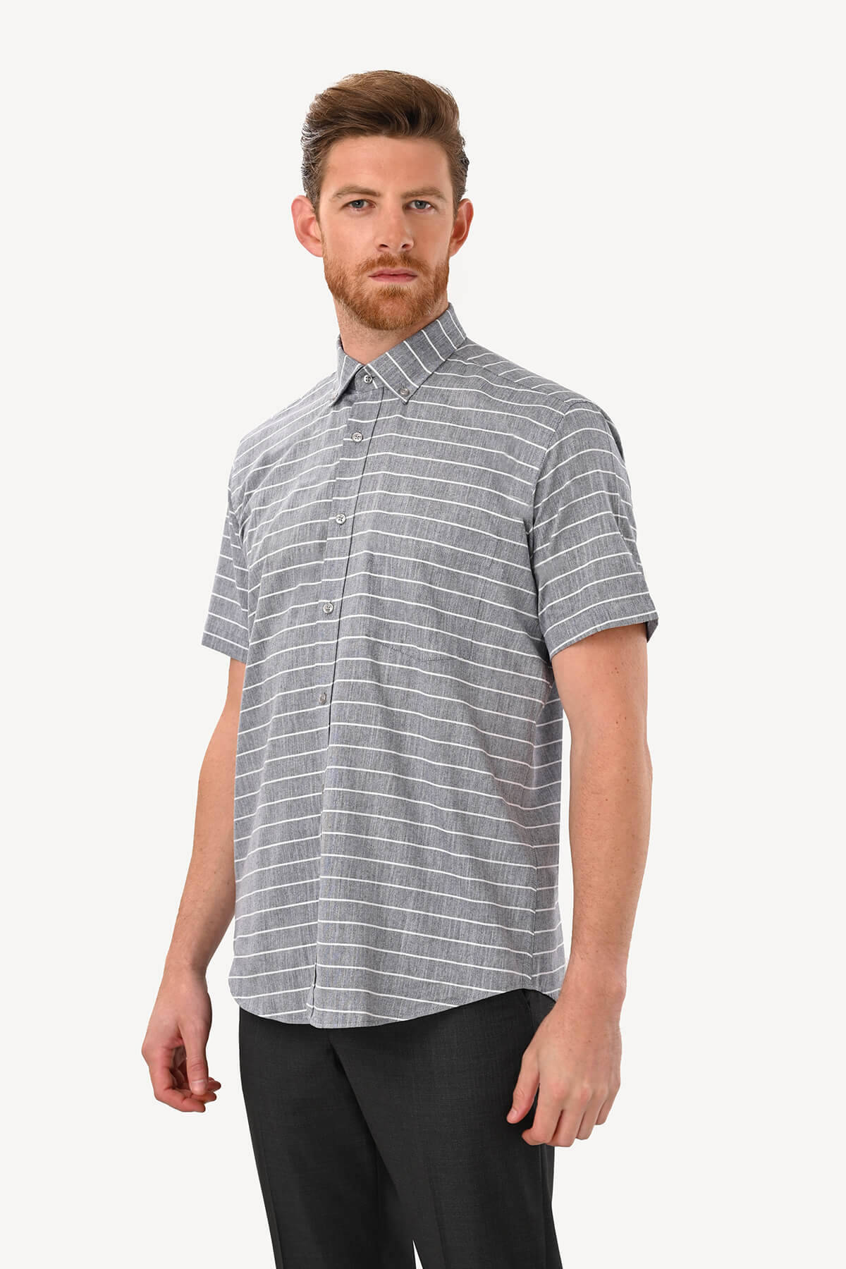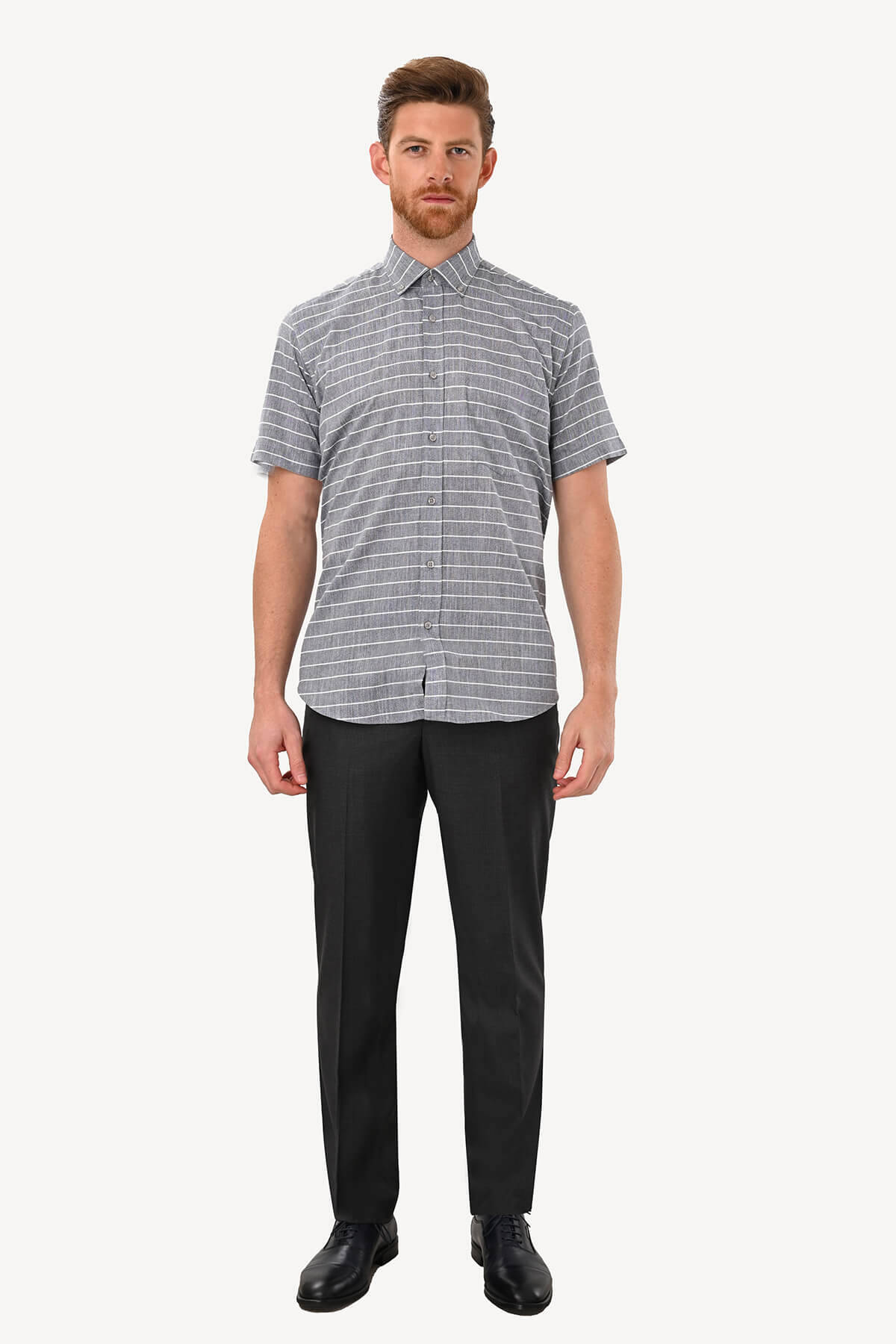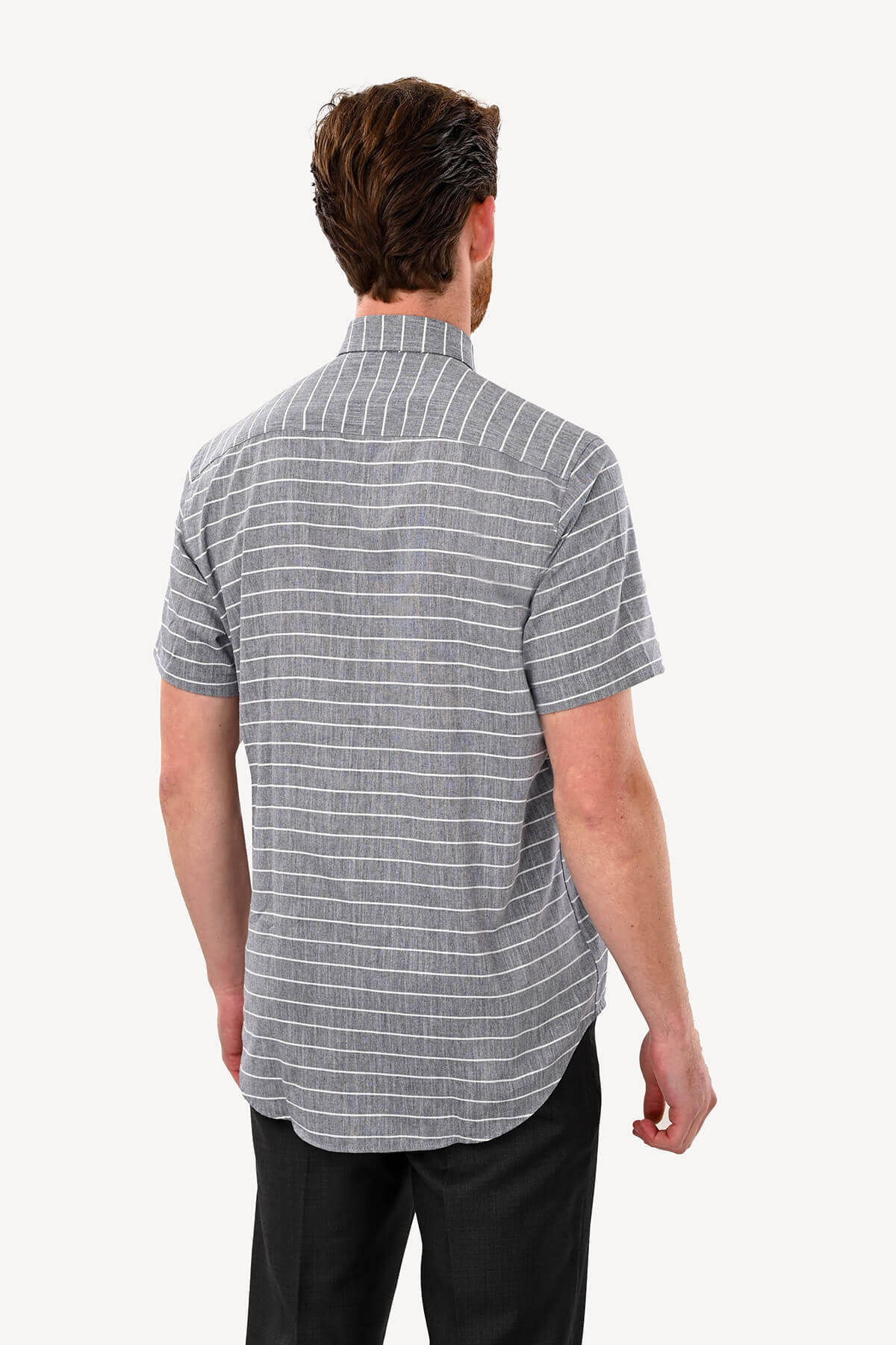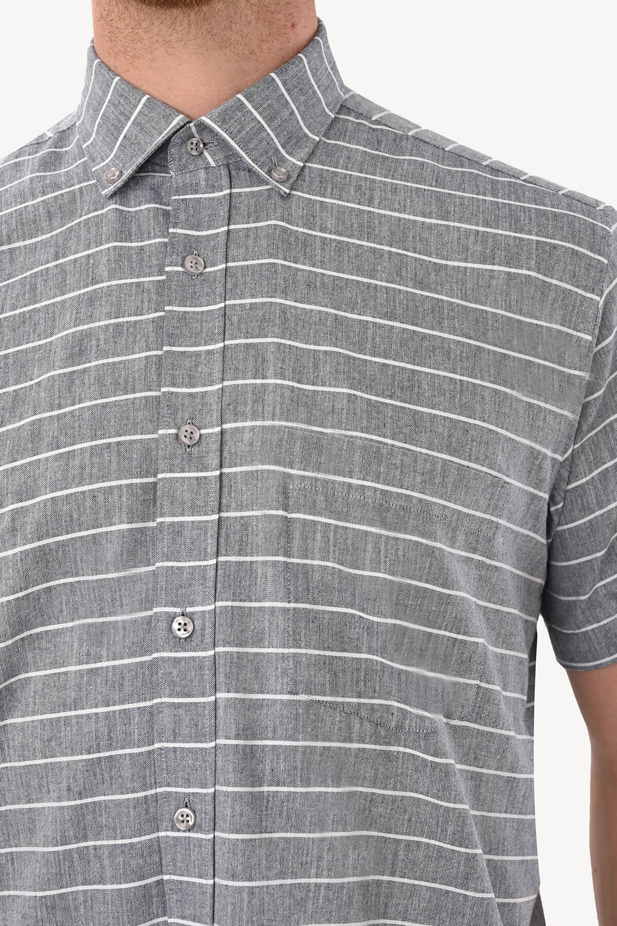 Erkek Gri Klasik Çizgili Keten Gömlek