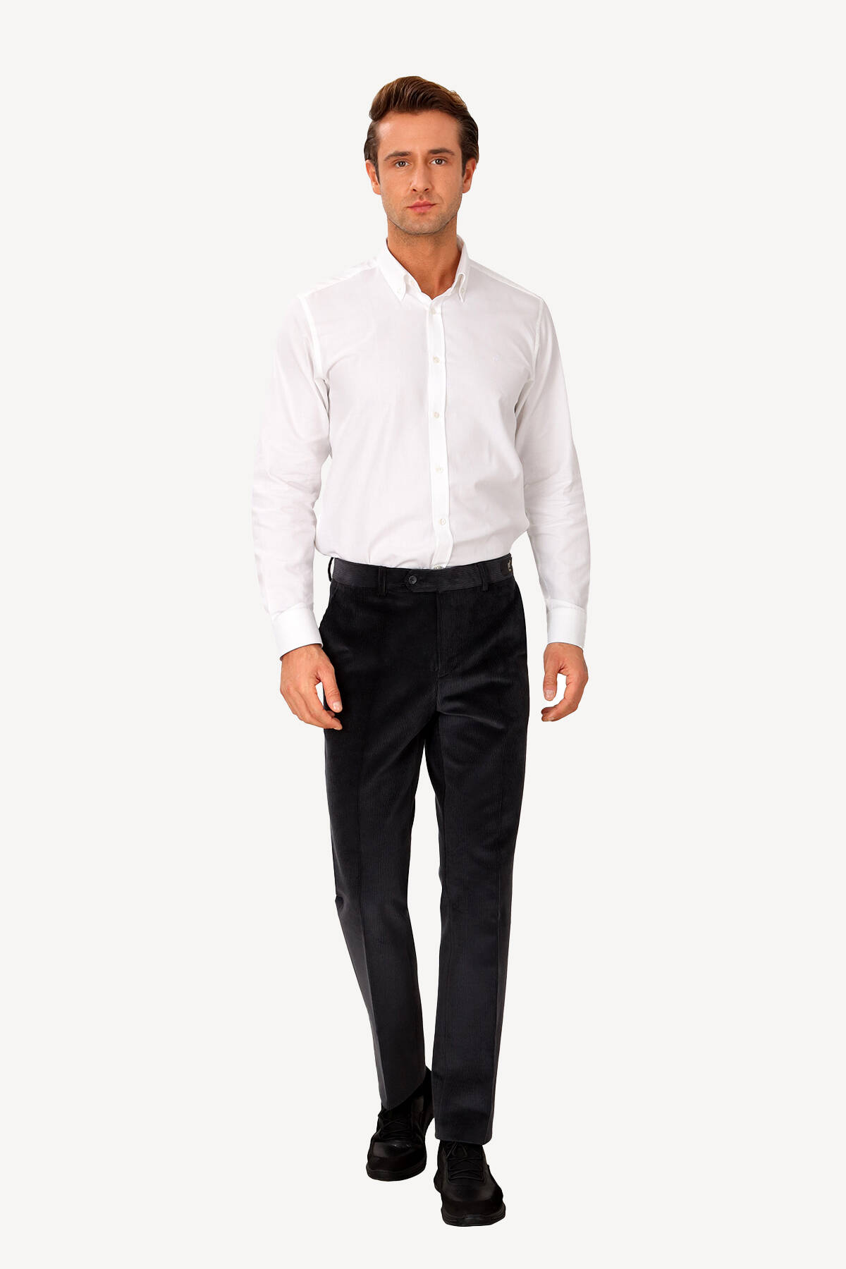 YSF Giyim kış koleksiyonunun gözdesi olan Erkek Gri Klasik Kadife Pantolon, ince fitilli kadife dokusuyla klasik silüete zarif bir his verir. Pantolon, değişen mevsimler için sıcaklık ve şık bir görünüm sağlamak üzere esnek pamuk karışımından üretilmiştir. Klasik kalıba eşlik eden lüks kadife tuşesi, şık ve gündelik arasında mükemmel bir orta yol sunar. Klasik kesimi dolayısıyla ısmarlama kalitesinde keskin, klas ve sofistike silüet ortaya çıkarır. Sade görünümü, özellikle business smart kombinlerde ihtiyacınız olan profesyonel ve güçlü duruşu elde etmenize imkan sağlar. Pantolonun kemerine işlenen deri anagram etiket YSF Giyim’in premium düzeydeki kalitesini belli eder. Fleto ve arka cepler ise kadife pantolonun klasik tarzını en iyi şekilde vurgular. Soğuk günlerde seçkin stili takip eden erkeklerin favorisi olan kadife pantolon, koyu gri tonuyla zamansız şıklığın kapılarını aralamanızı sağlar. Sonbahar ve kış gardırobunuzdaki casual veya smart parçalarla mükemmel bir şekilde kombinlenebilir. Bu şık tasarımı, zarif balıkçı yaka triko ve rahat bir çift spor ayakkabıyla birleştirdiğinizde şehirli ve modern erkeklerin imza stilini yaratmak mümkündür. Erkek kadife pantolon, beyaz gömlek ve Oxford rugan ayakkabıyla kombinlendiğinde business smart şıklığı zirveye taşıyabilir. Siz de pantolon modelleri ile sonsuz stil olanakları yaratmak için en havalı ve kaliteli tasarımları YSF Giyim’in avantajlı fiyatlarıyla deneyimlemeye başlayabilirsiniz!