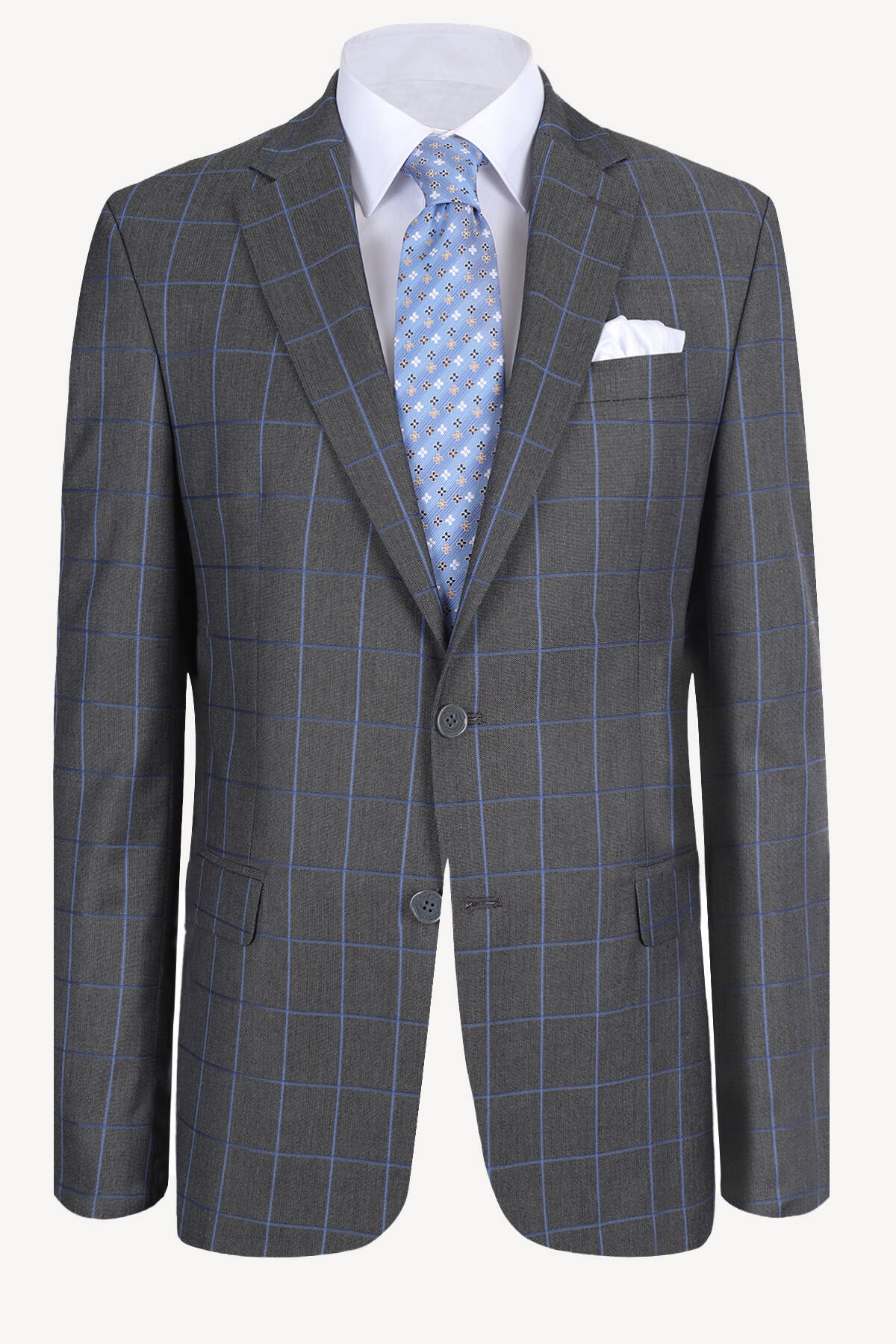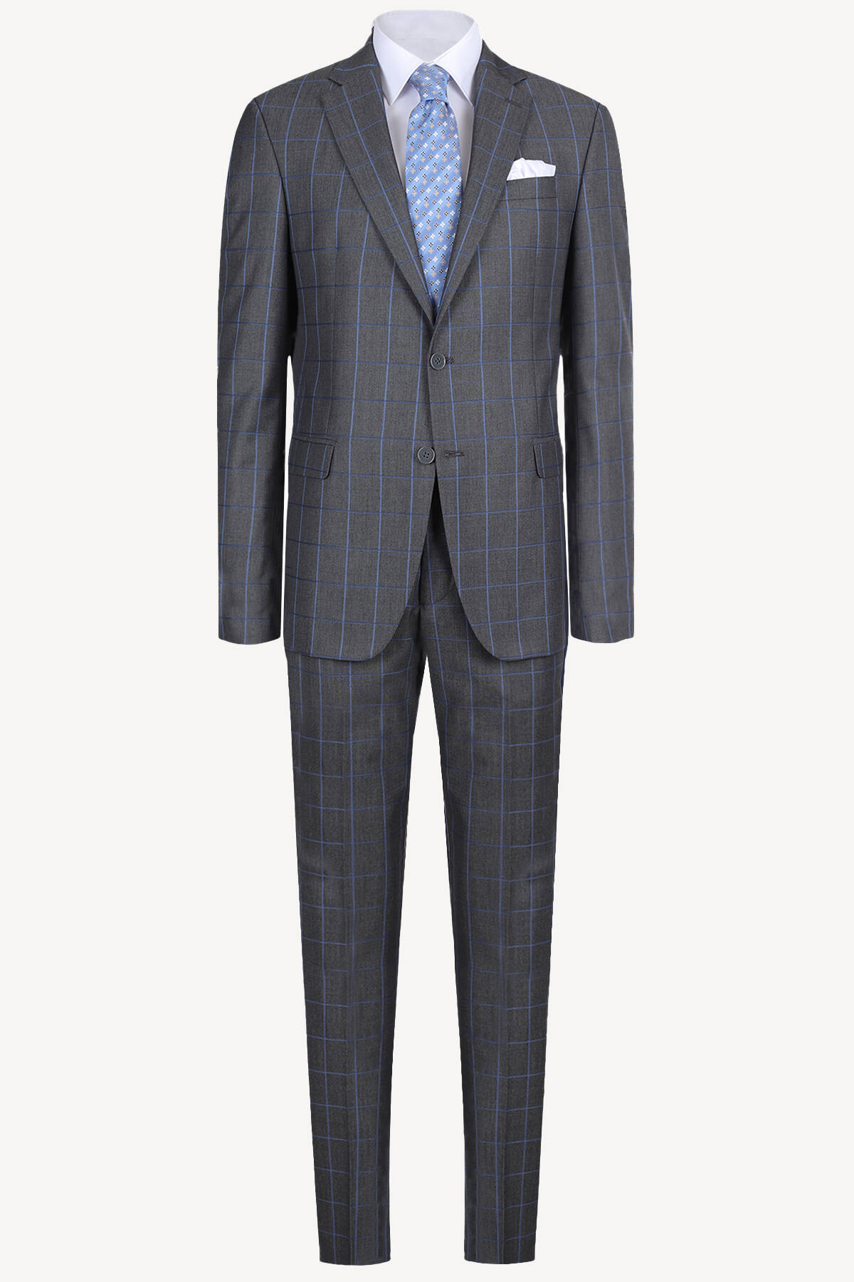 Erkek Gri Mavi Ekose Regular Fit Takım Elbise