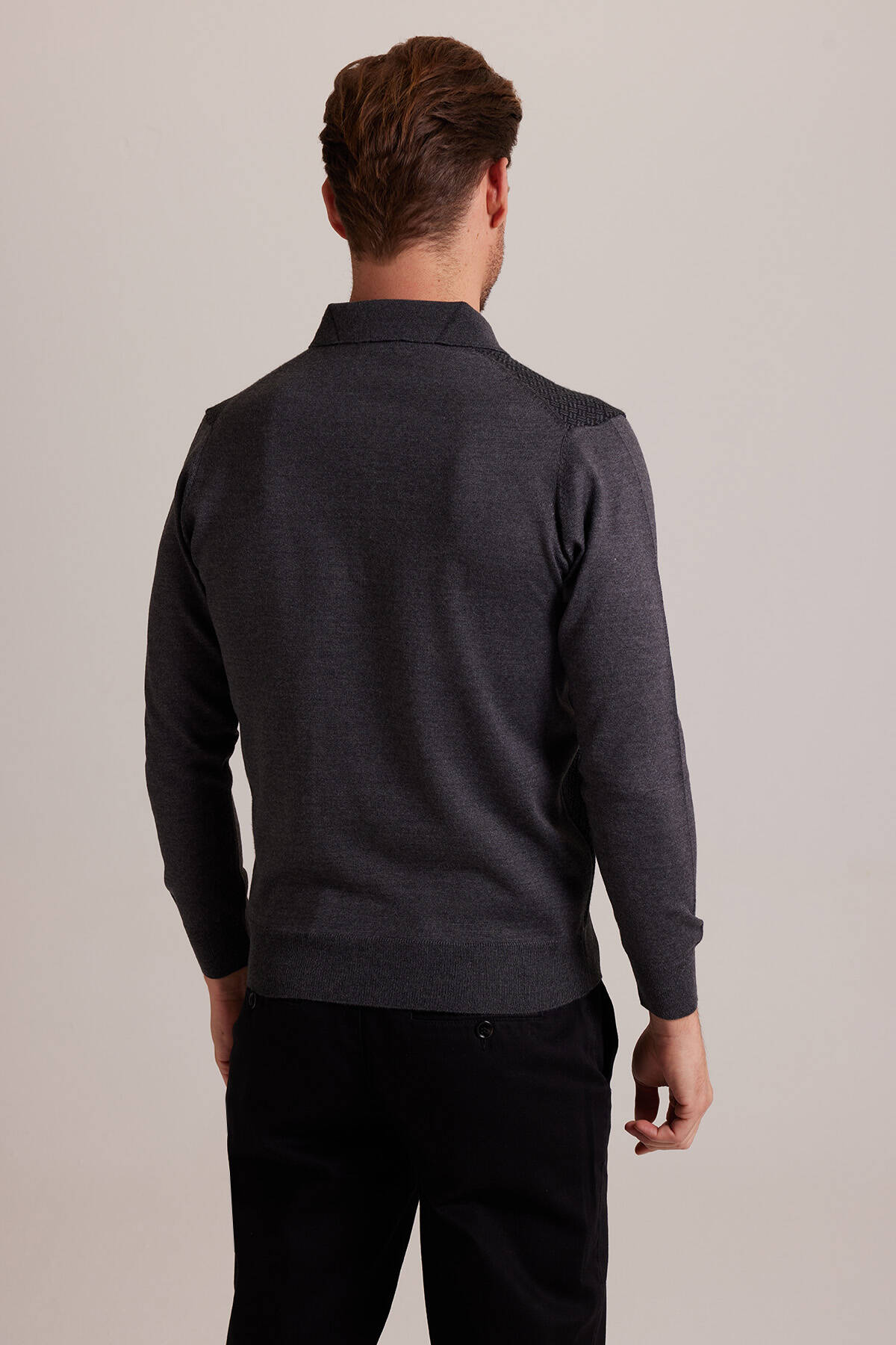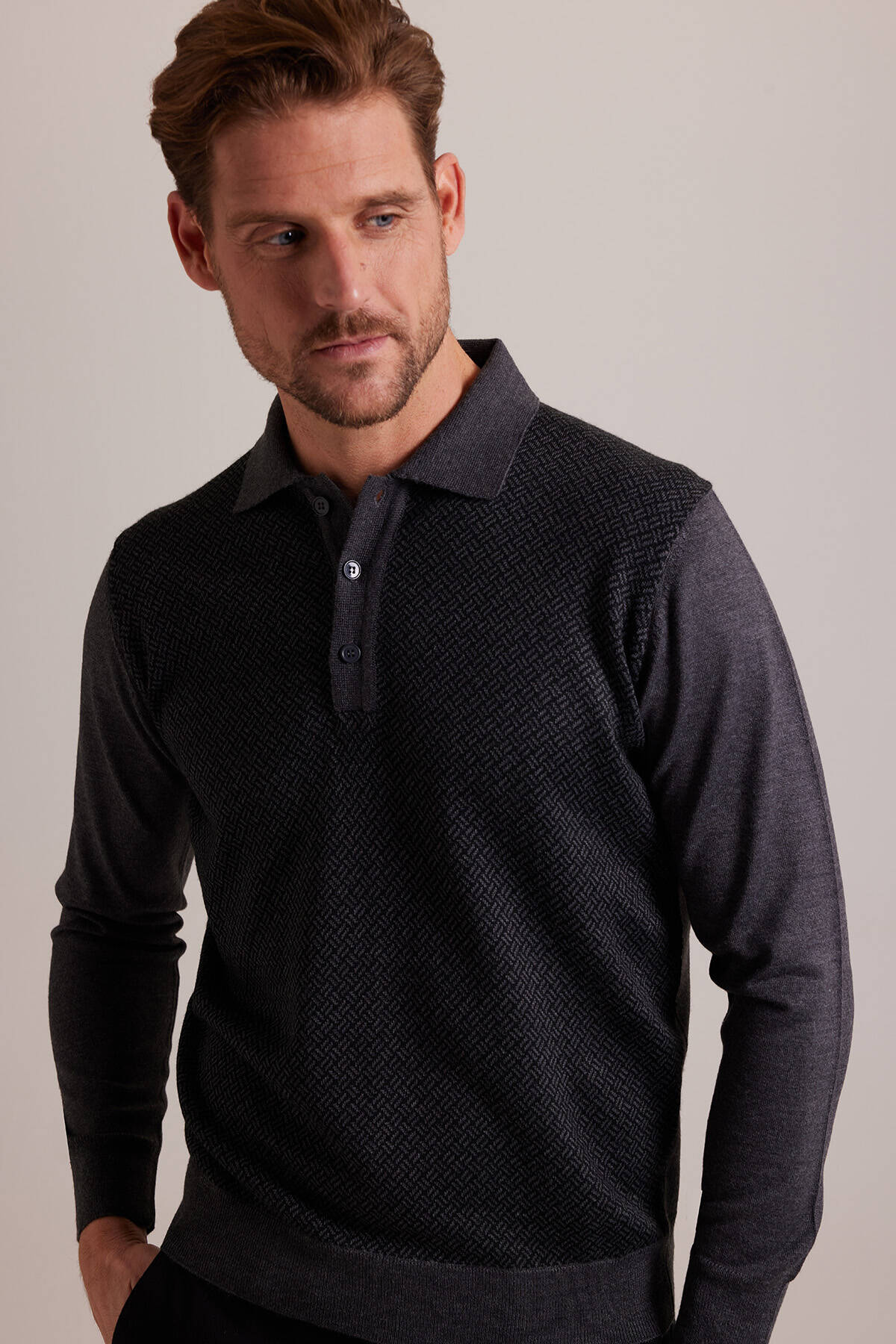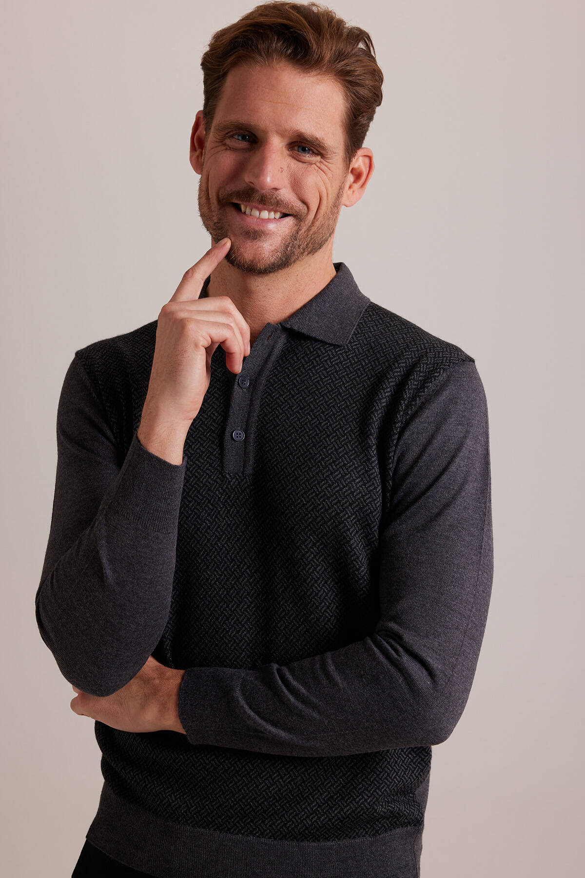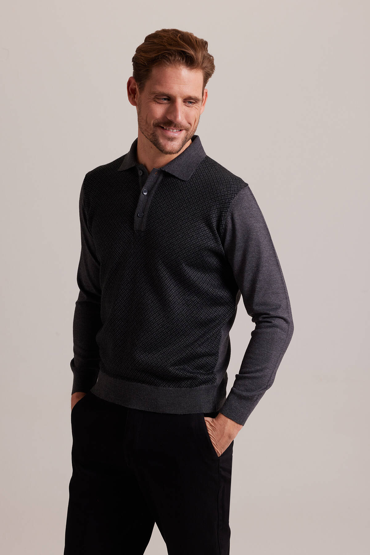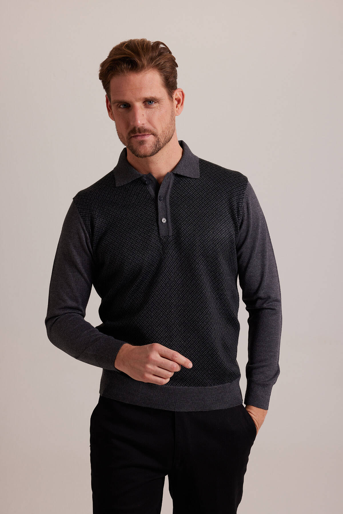 Erkek Lacivert Bordo Polo Yaka Desenli Triko