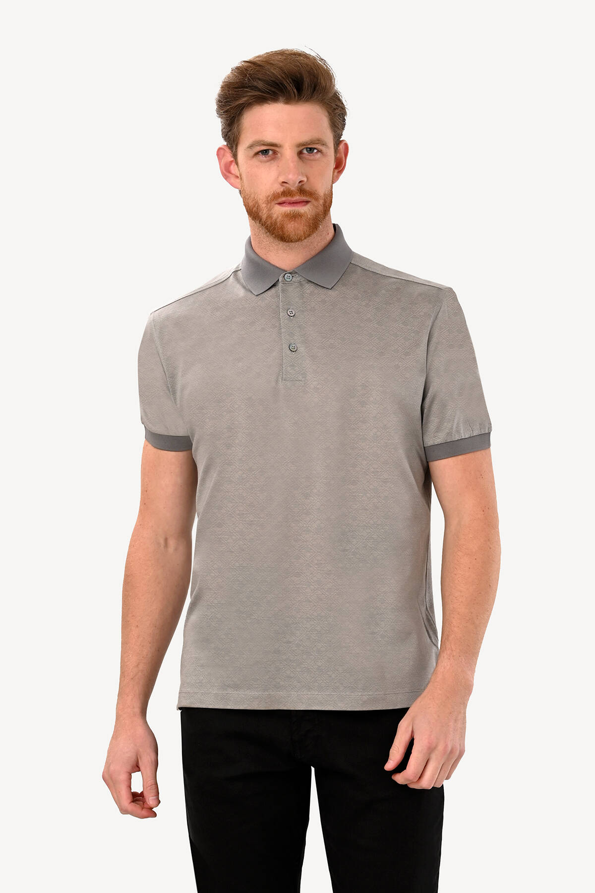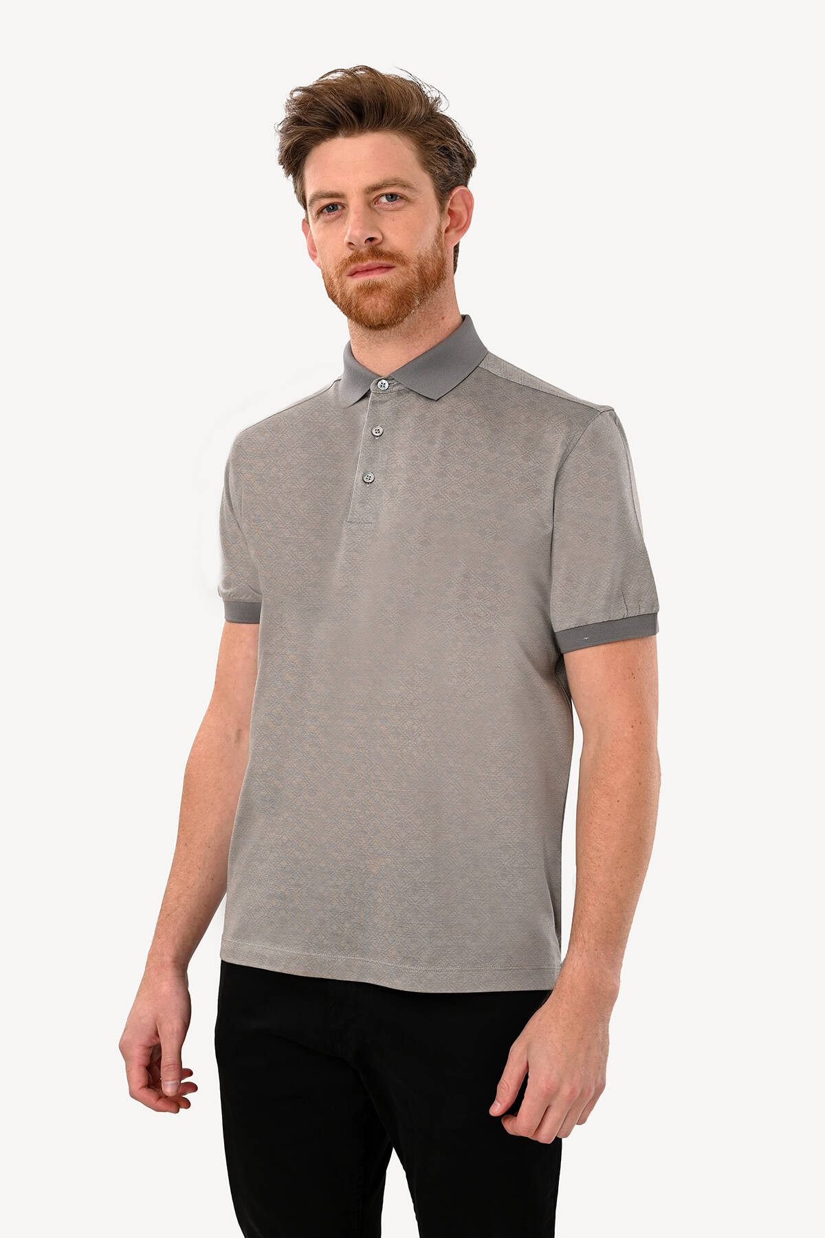 Erkek Gri Polo Yaka Regular Fit Desenli Tshirt