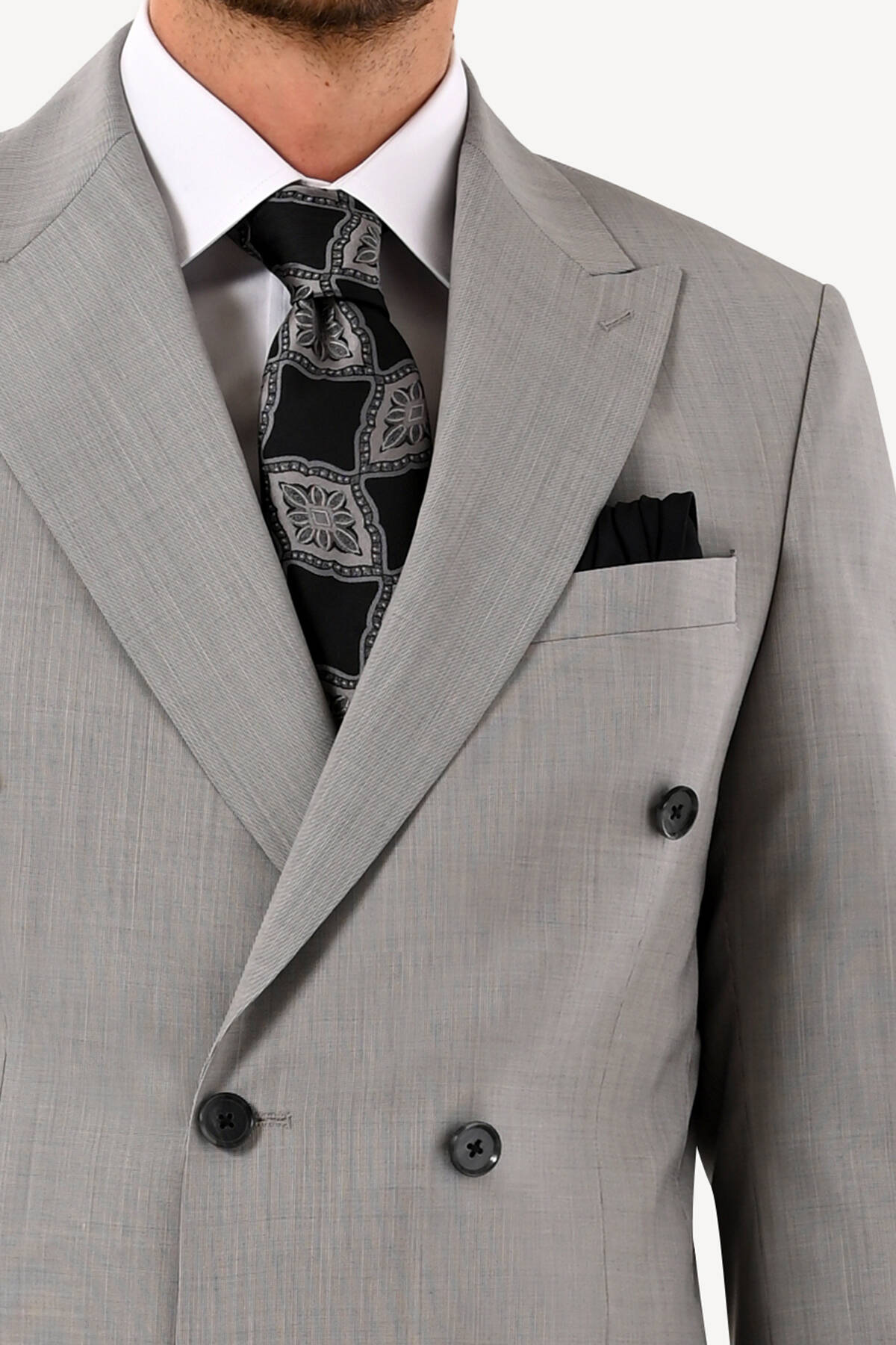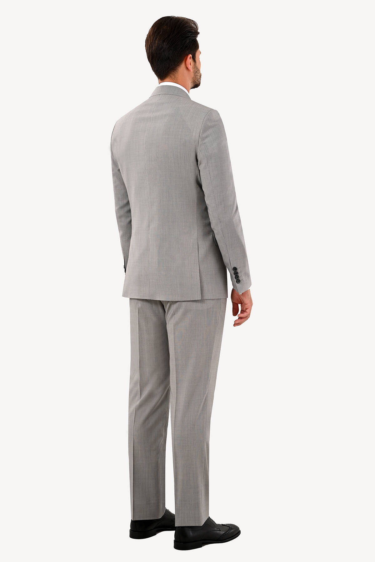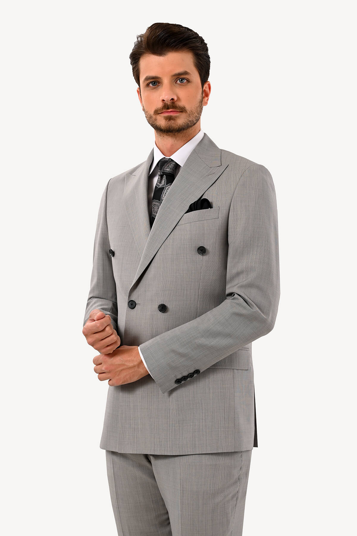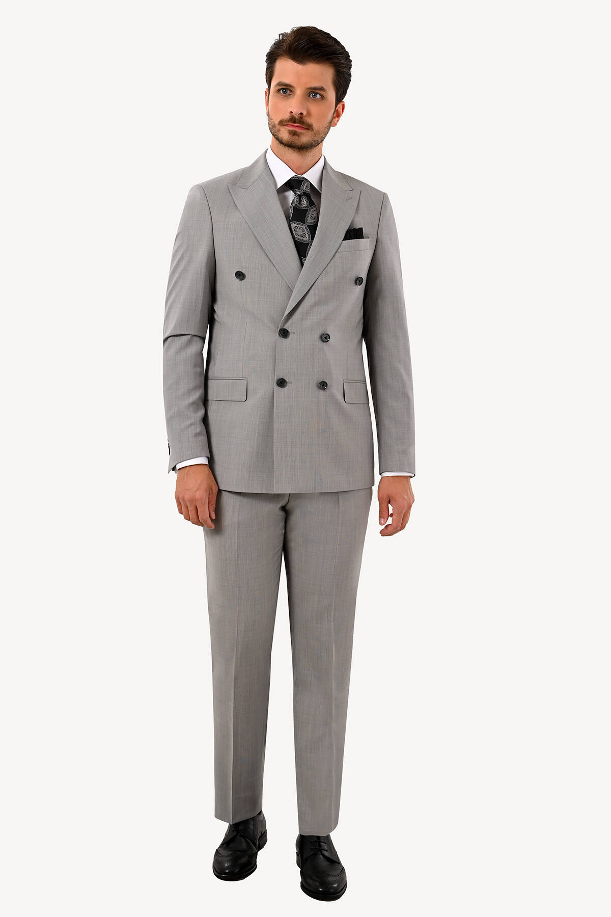 Erkek Gri Regular Fit %100 Yün Kruvaze Takım Elbise