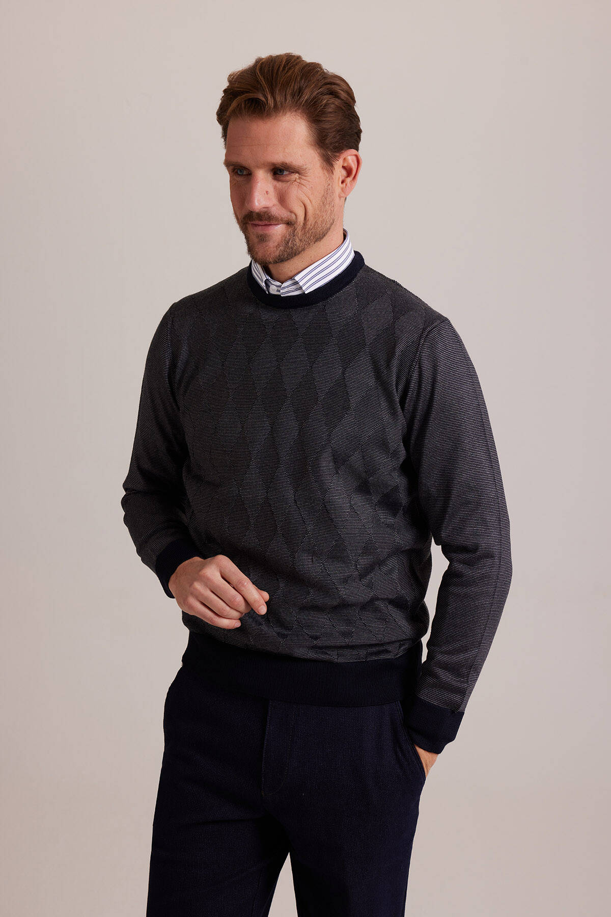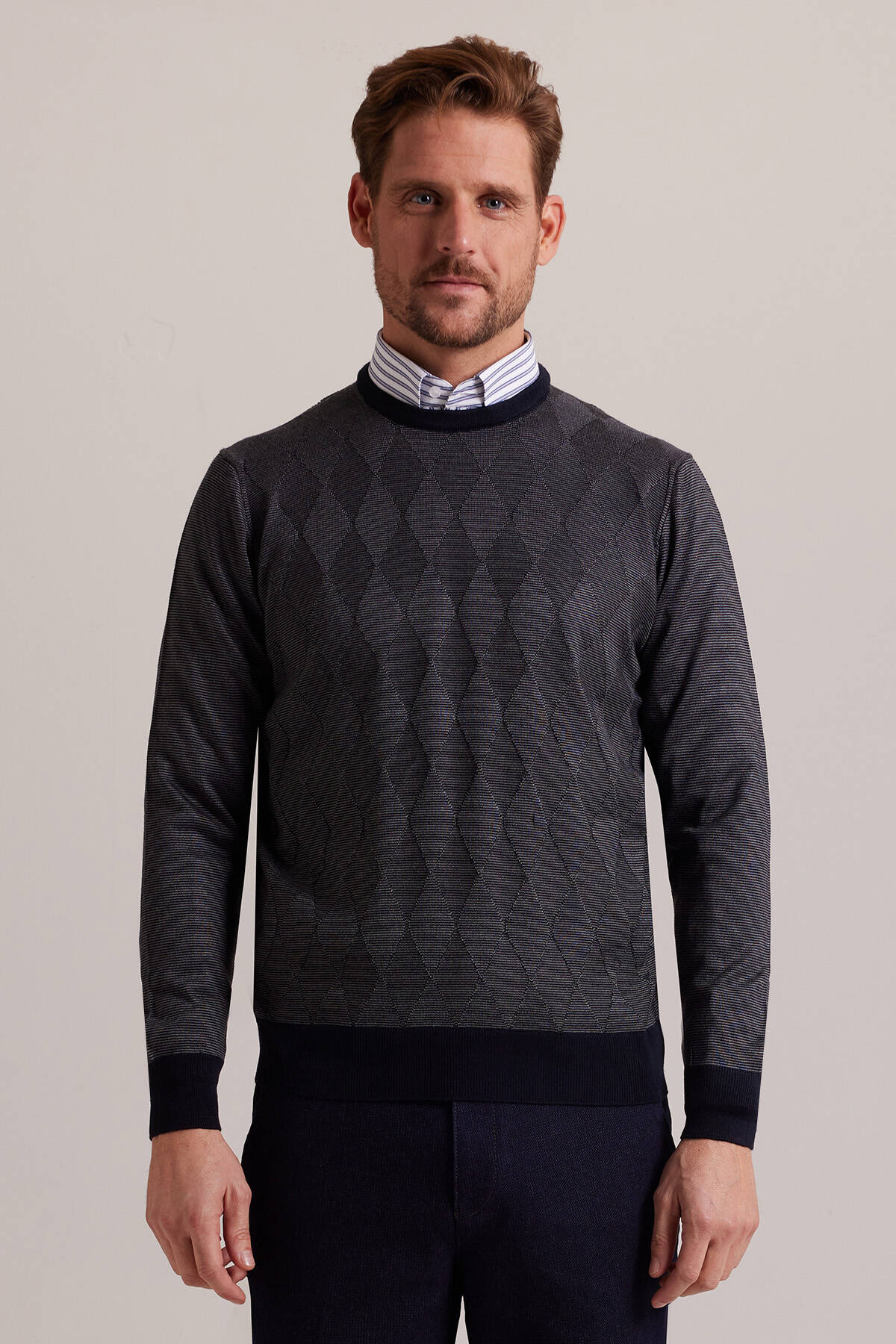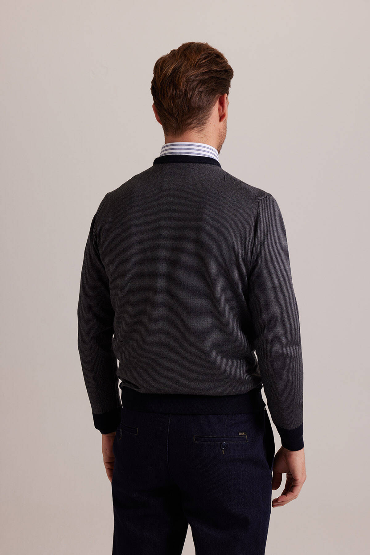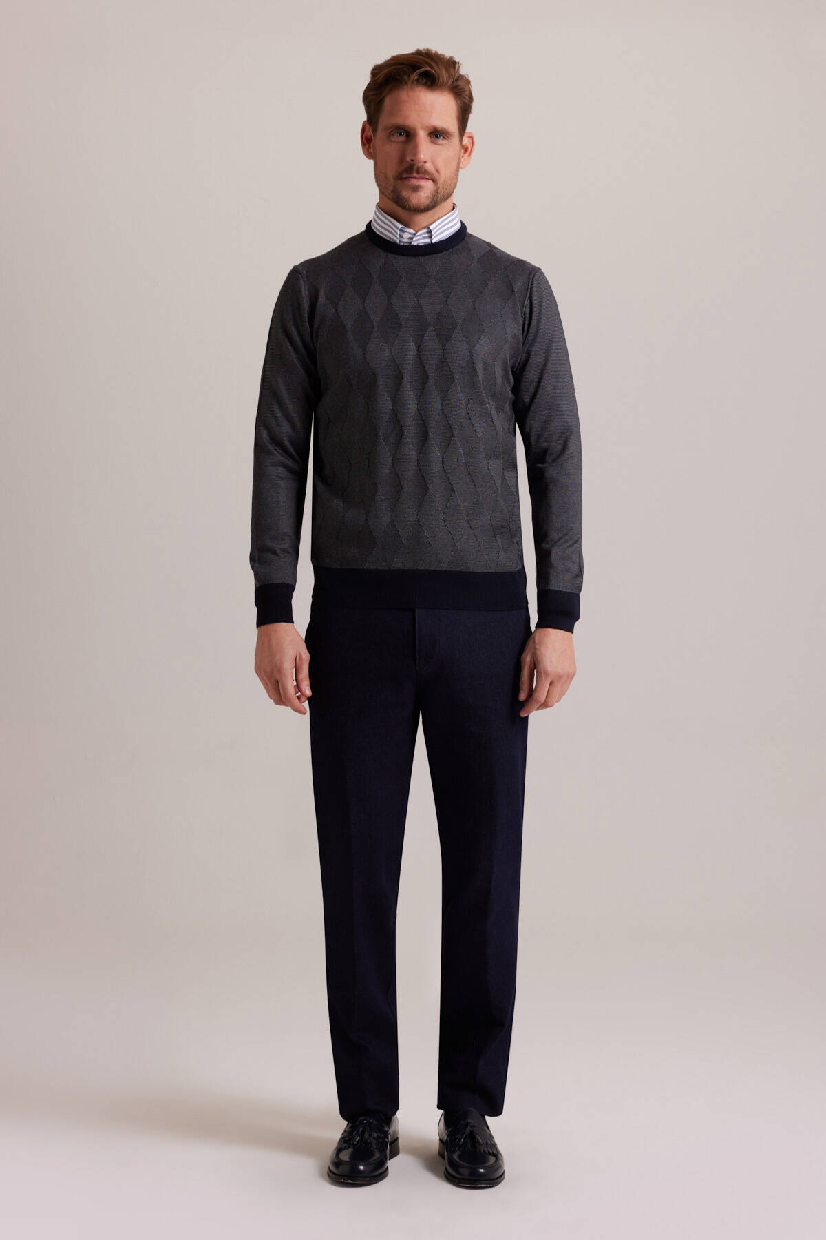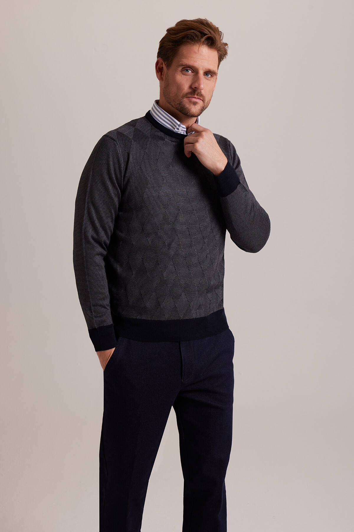 Erkek Gri Regular Fit Baklava Desenli Bisiklet Yaka Triko