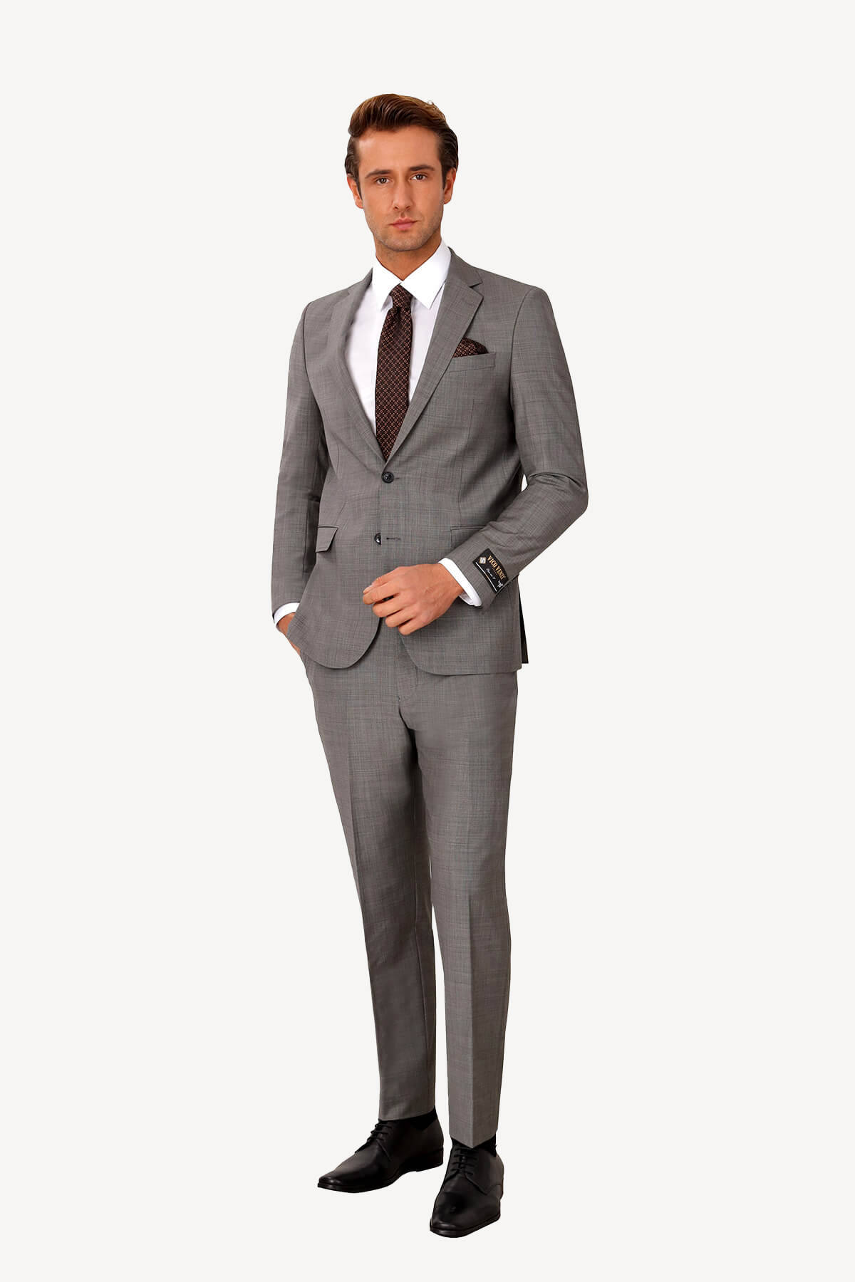 Erkek Gri Regular Fit Çift Yırtmaç Takım Elbise