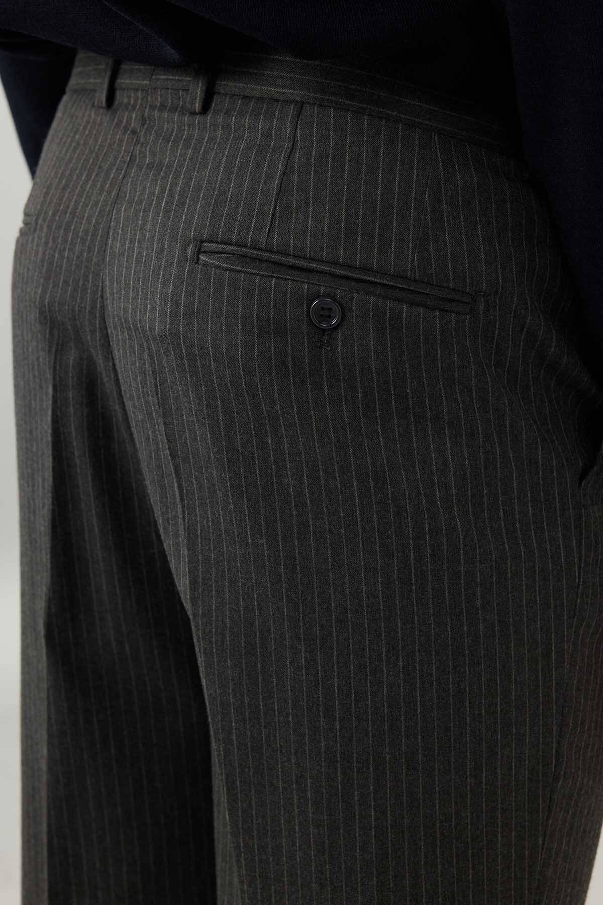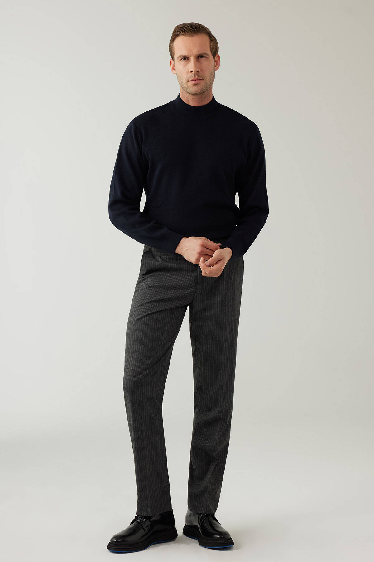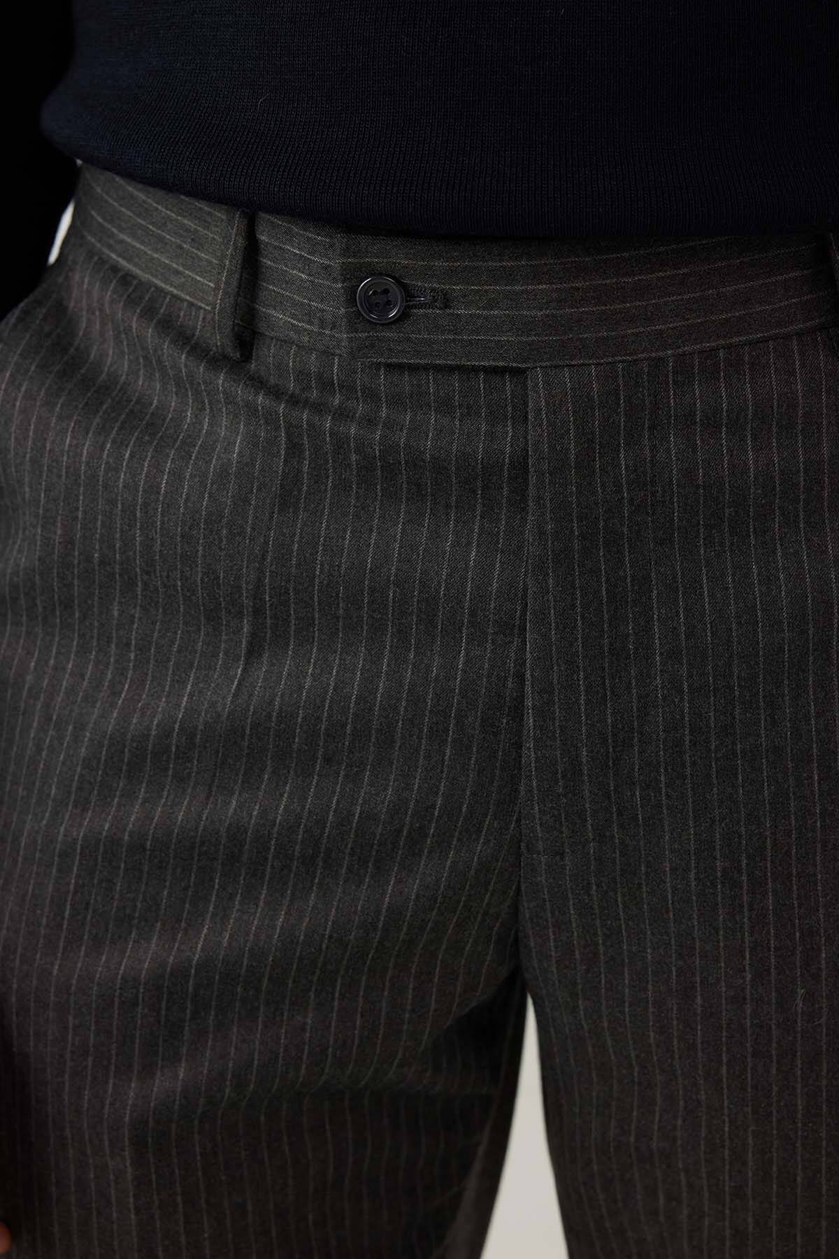 Erkek Gri Regular Fit Çizgili Yün Kumaş Pantolon