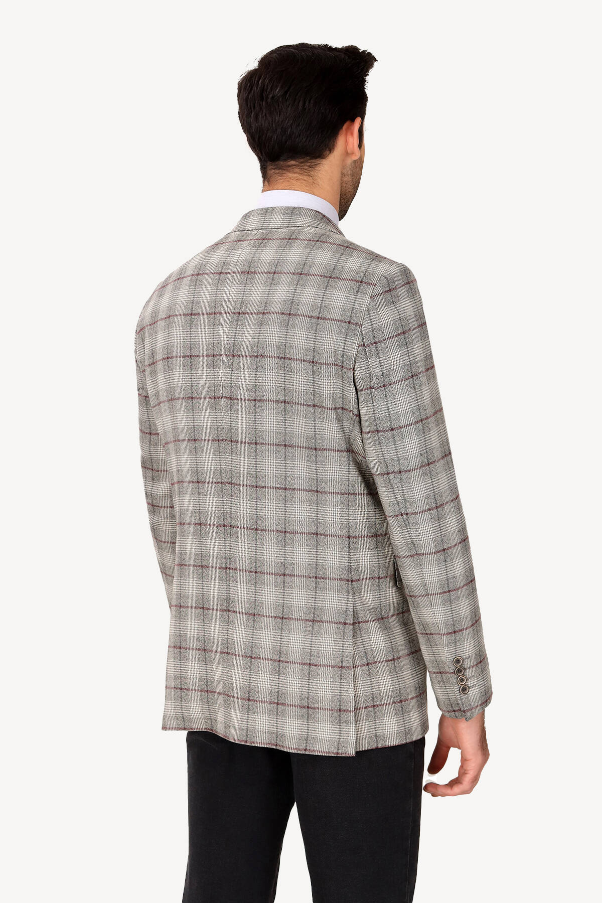 Erkek Gri Regular Fit Ekose Ceket