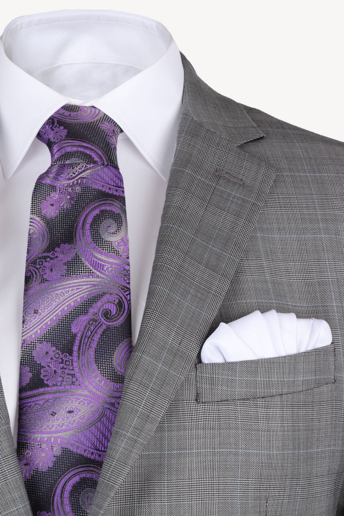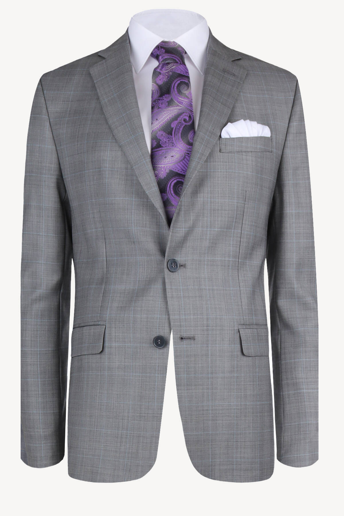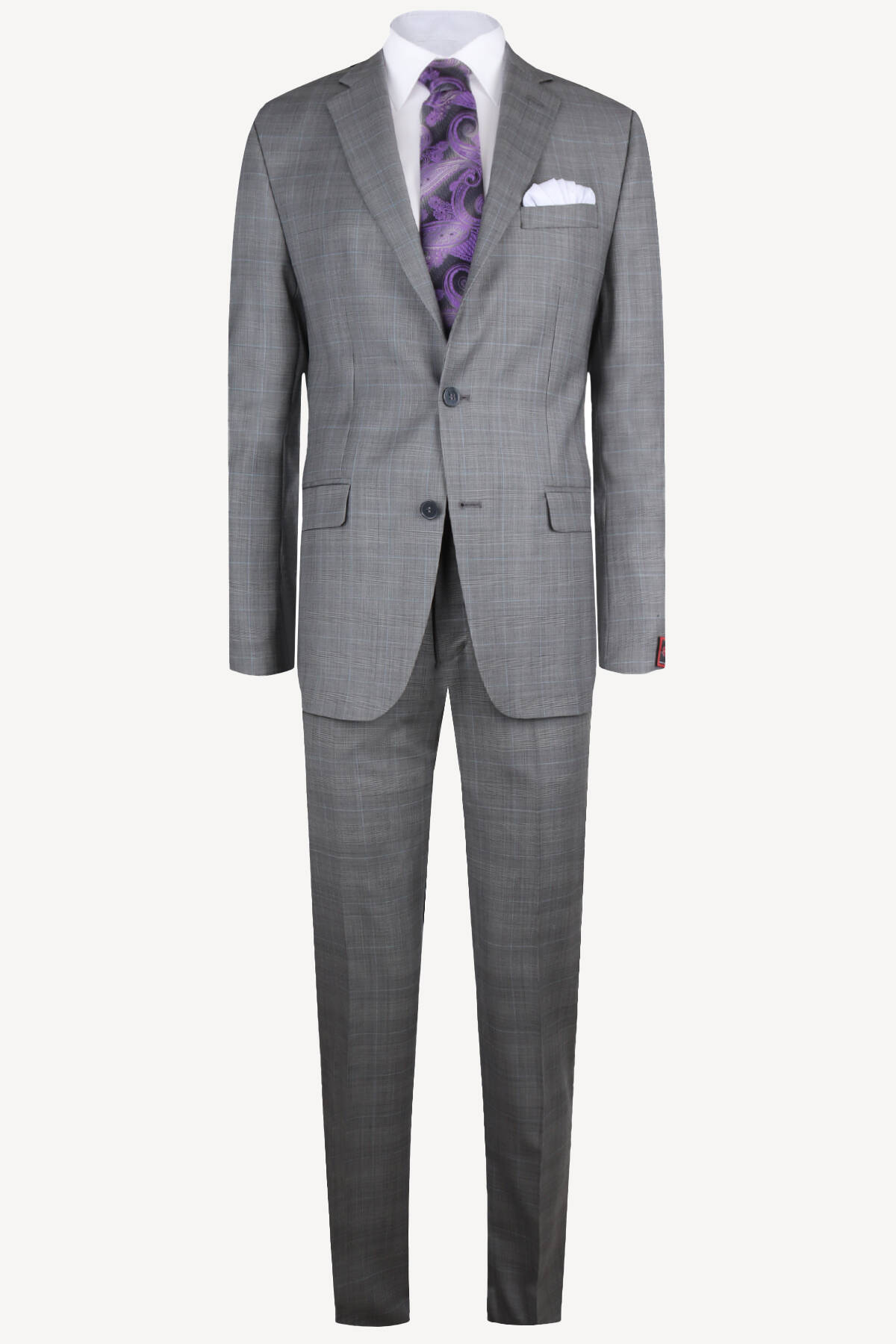 Erkek Gri Regular Fit Ekose Takım Elbise