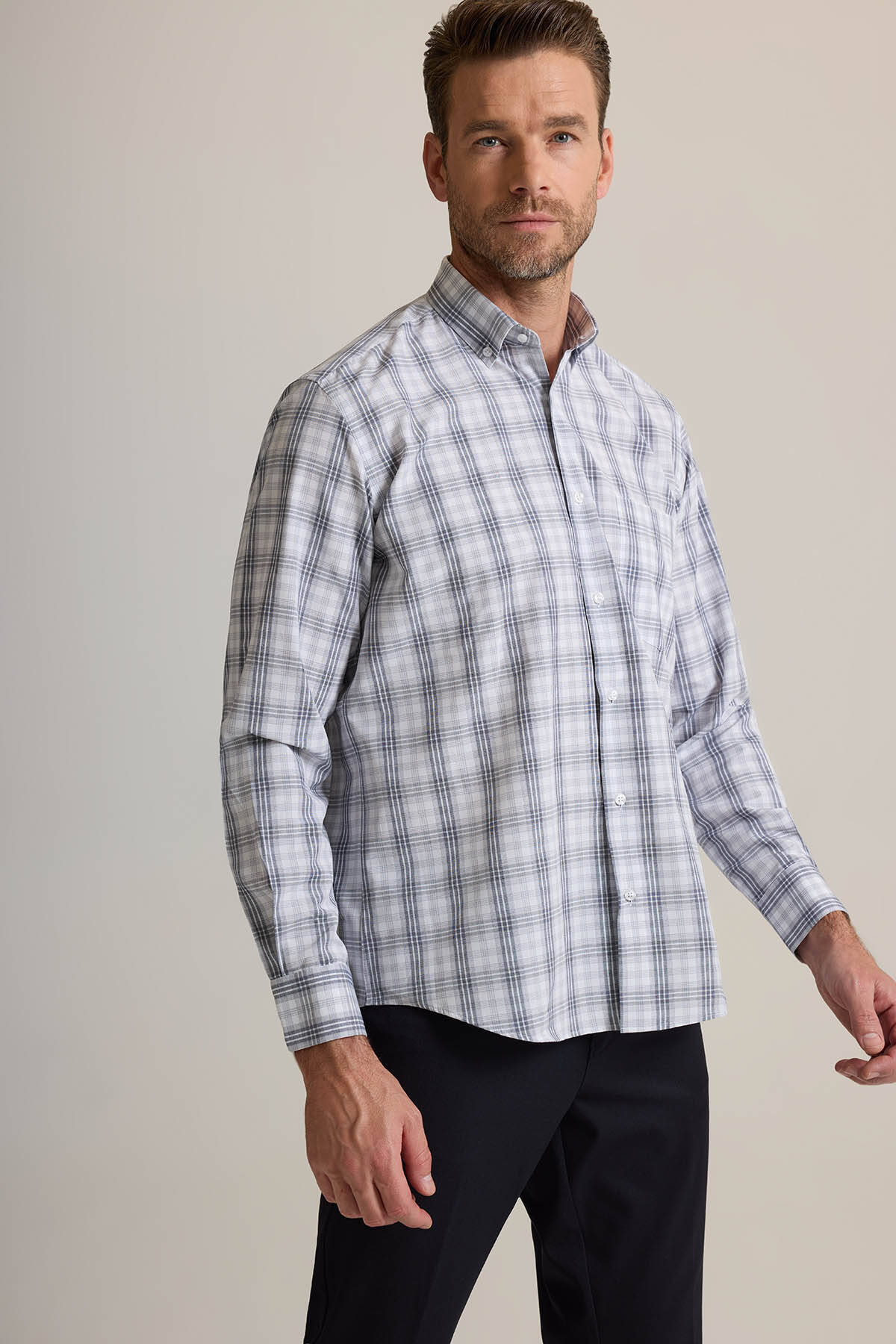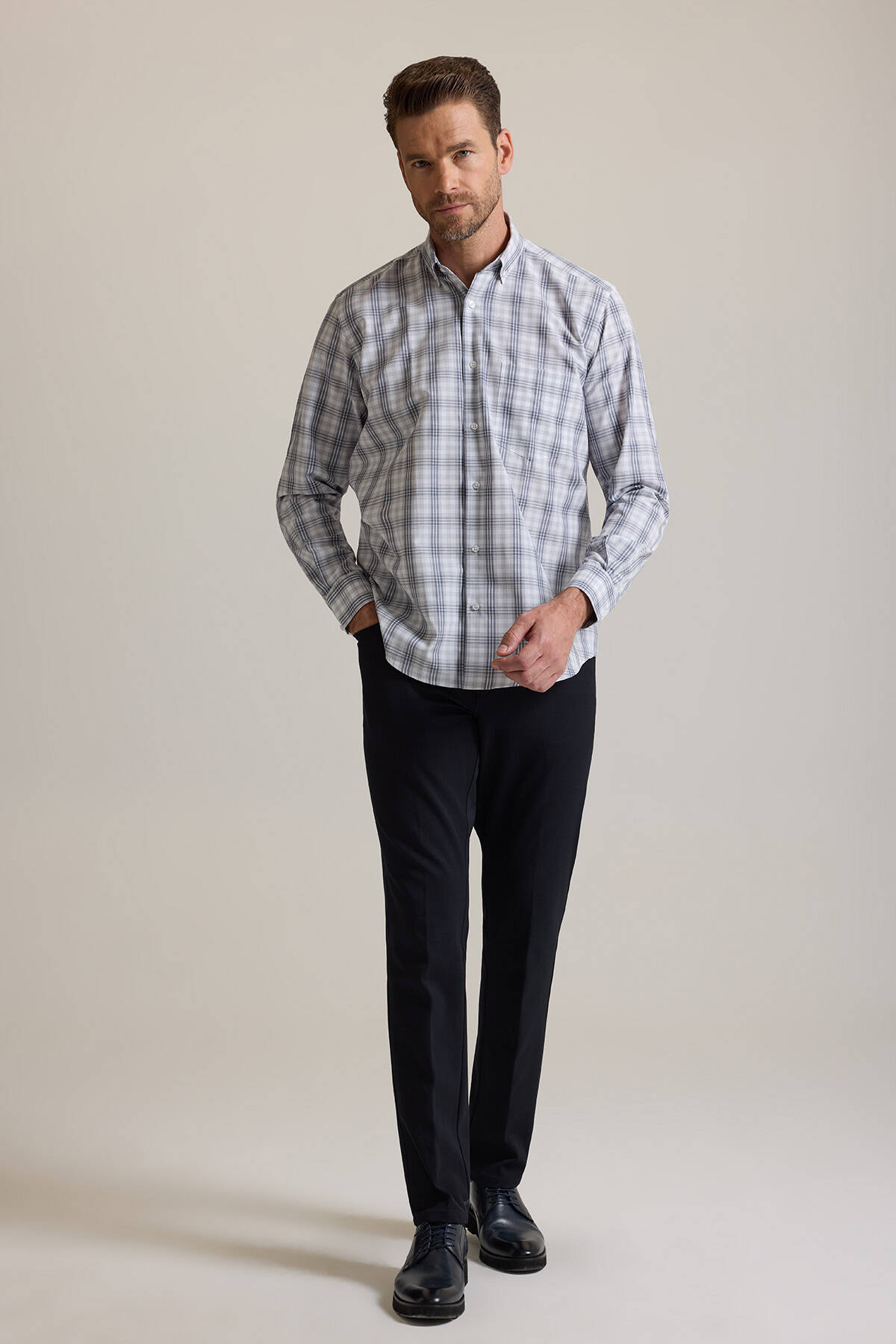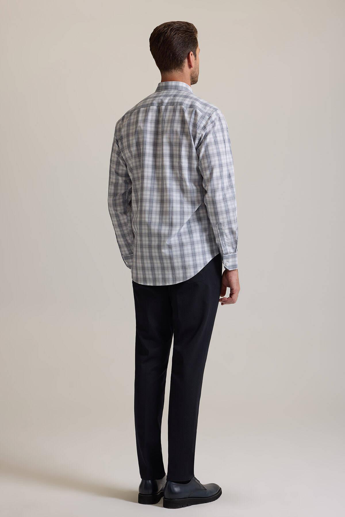 Erkek Gri Regular Fit Pamuklu Kare Desenli Gömlek