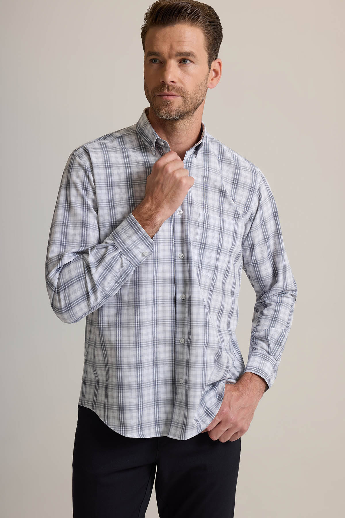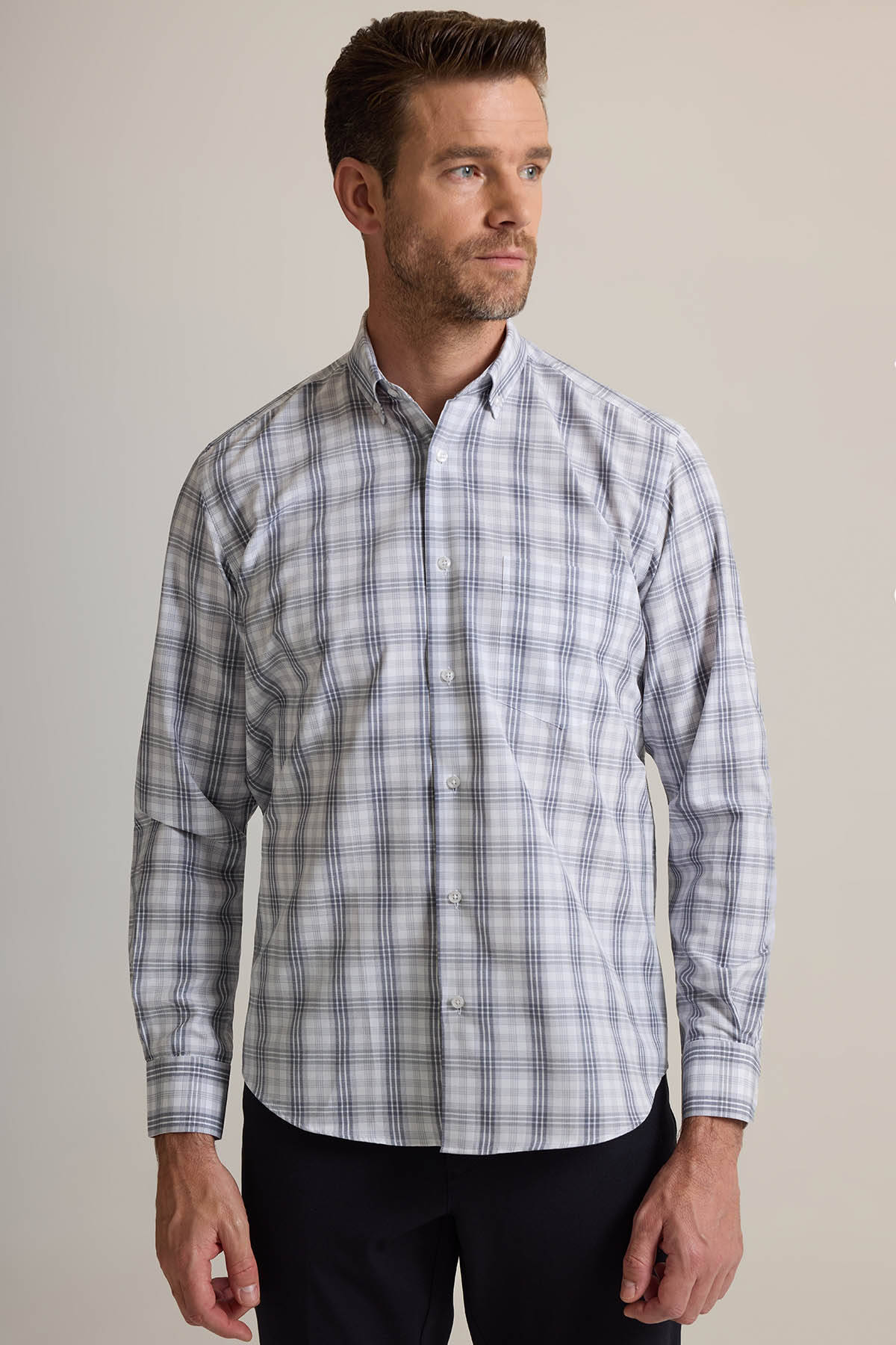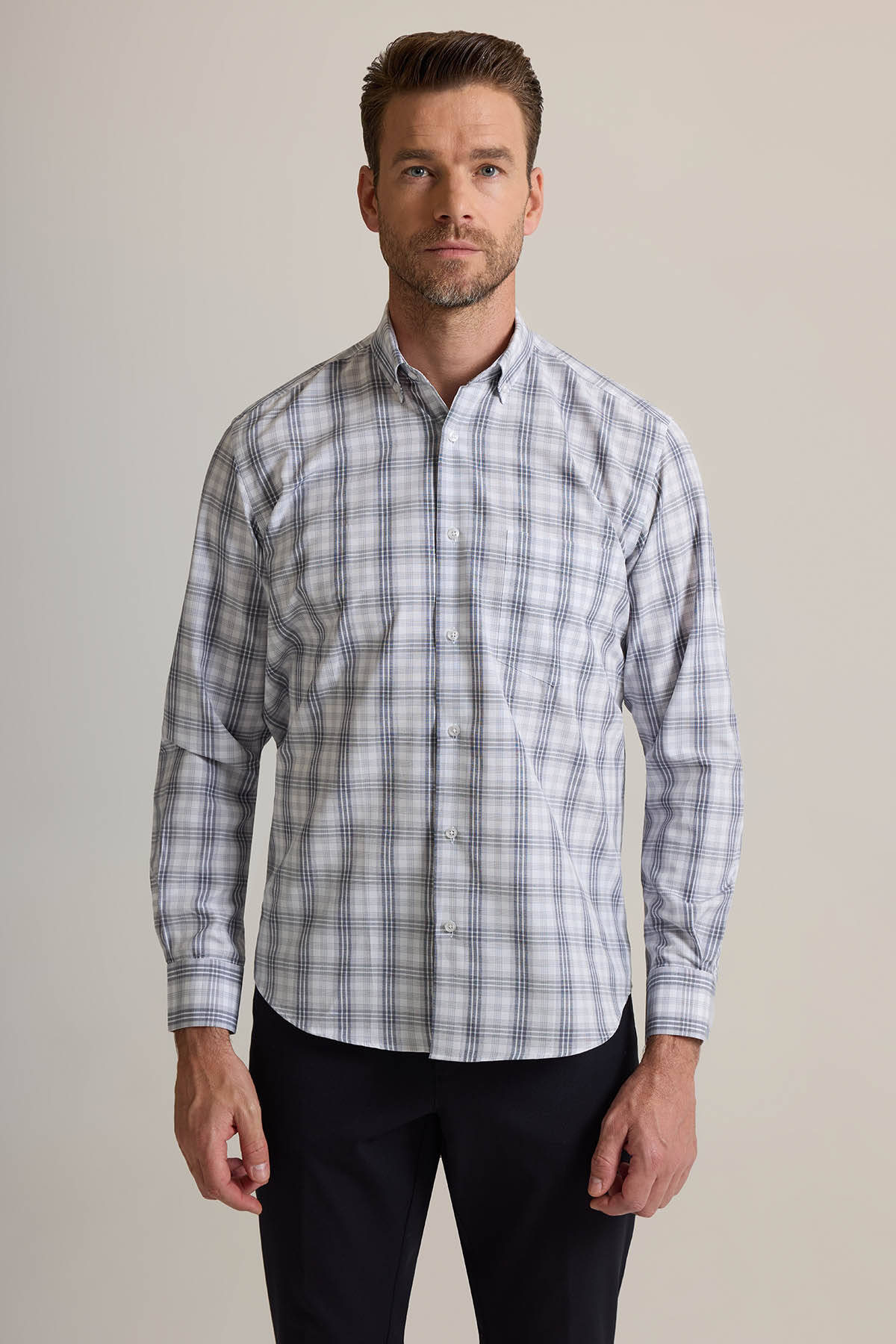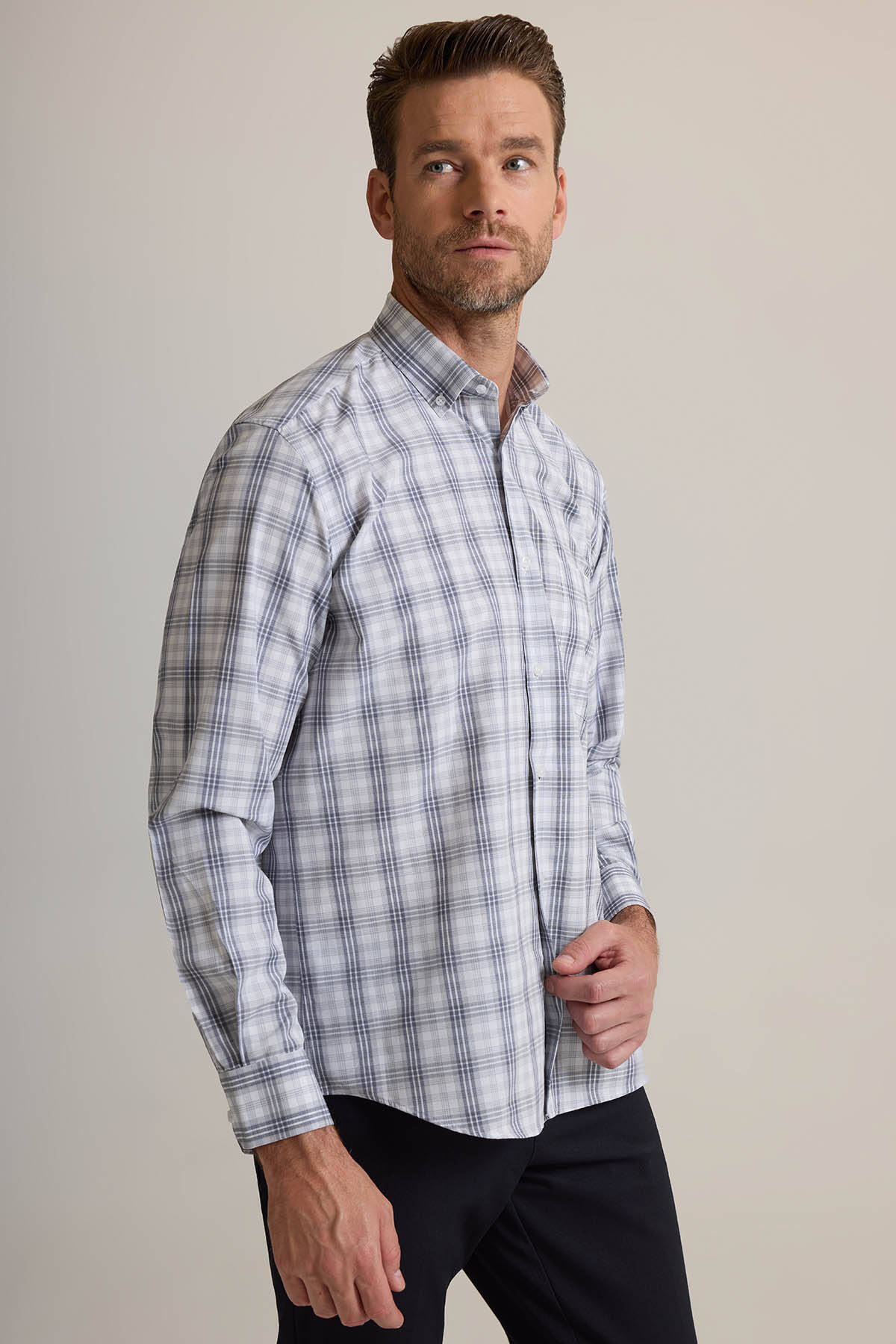 Erkek Gri Regular Fit Pamuklu Kare Desenli Gömlek