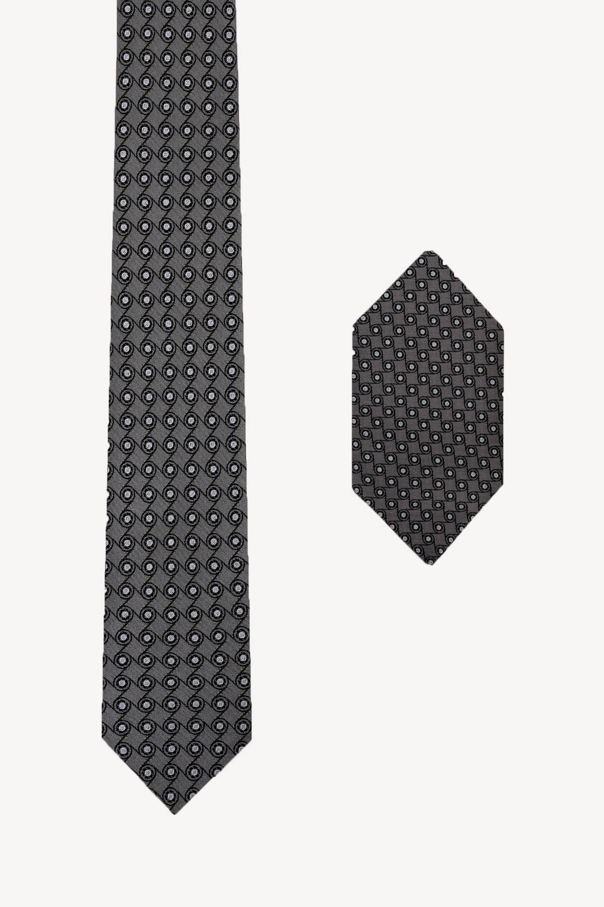 Erkek Gri Sarmal Desenli Kravat Mendil Set