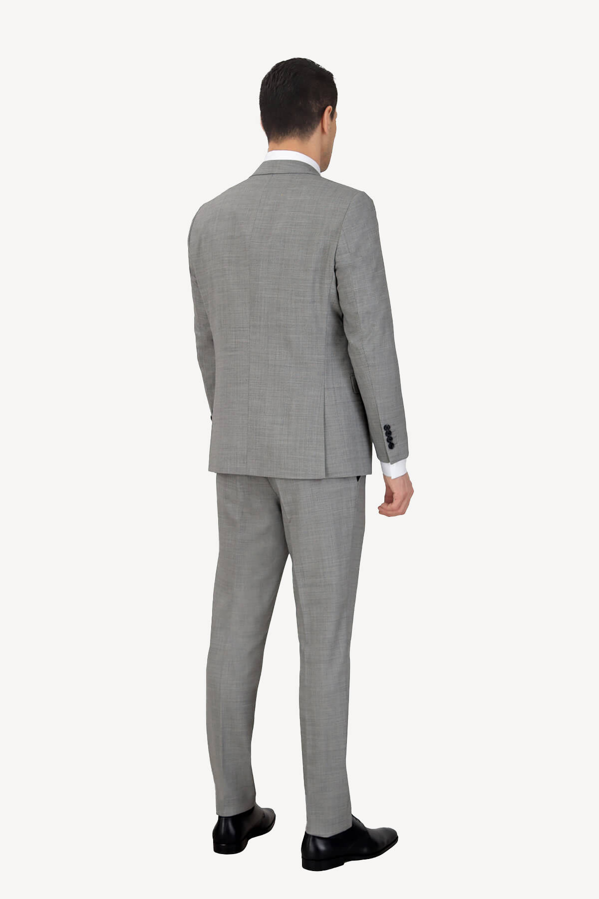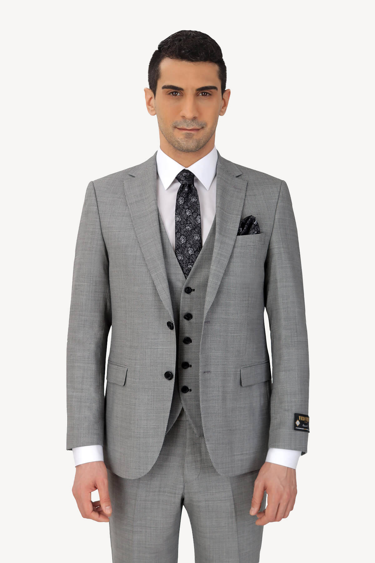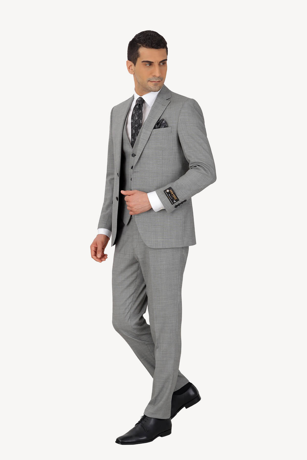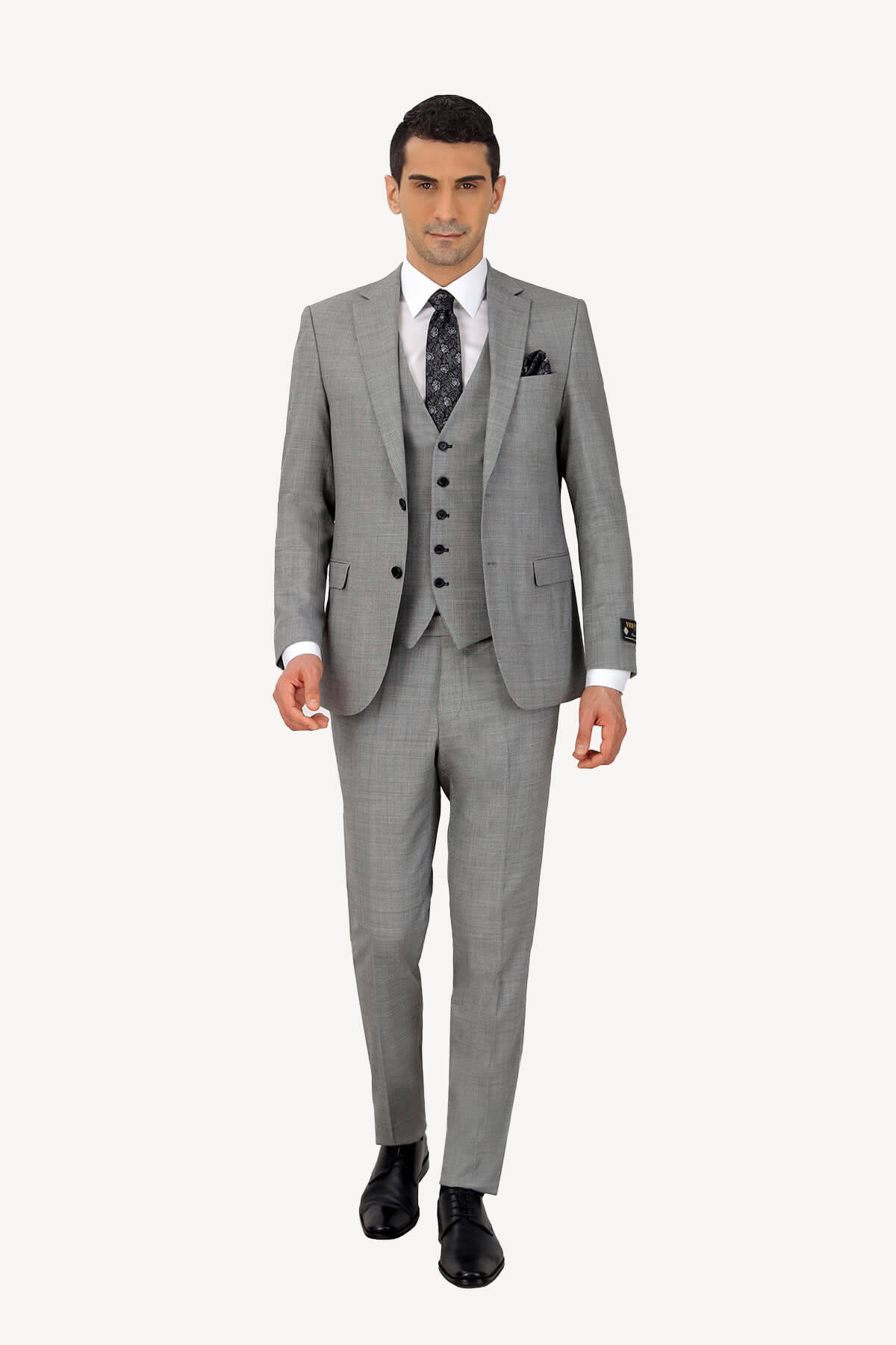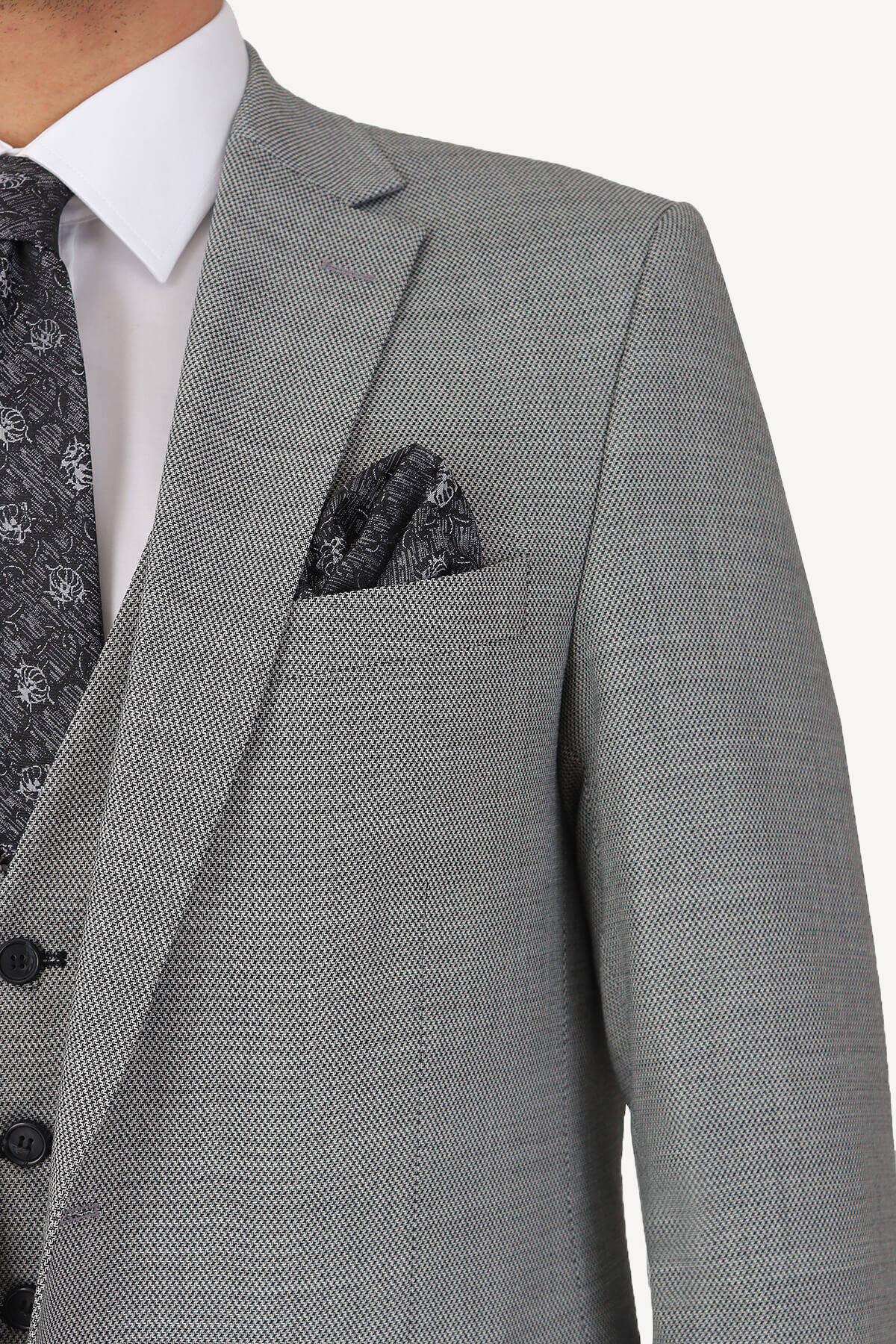 Erkek Gri Silim Fit Yelekli Desenli Takım Elbise