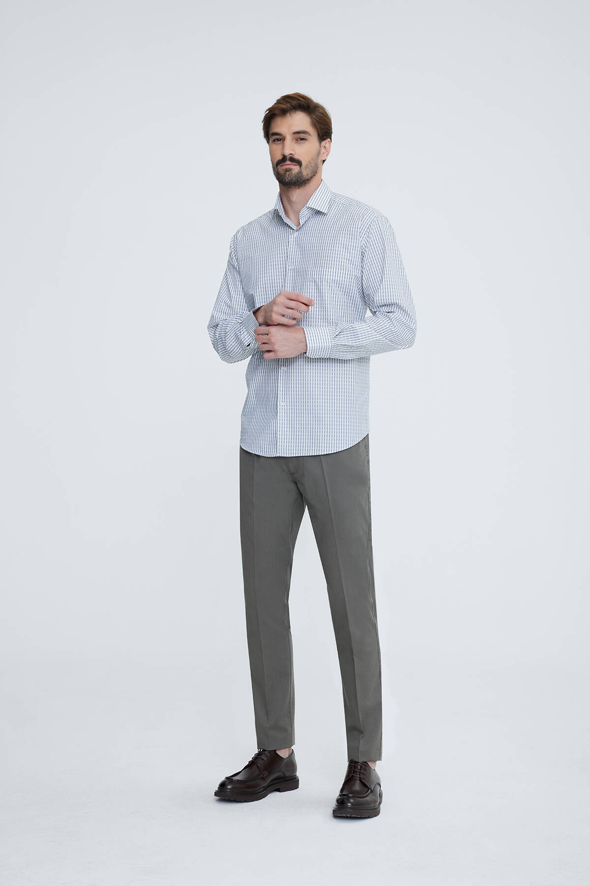 Erkek Gri Regular Fit Kareli Takım Elbise