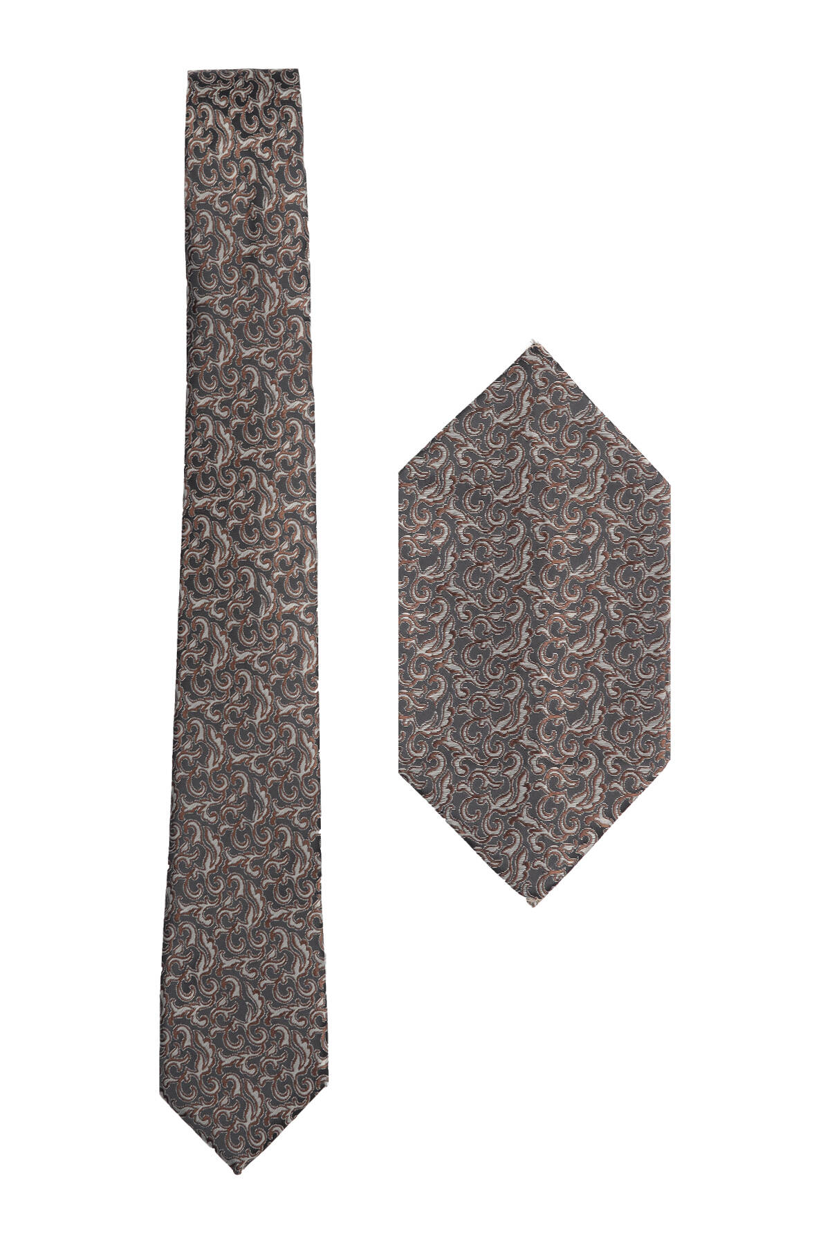 Erkek Kahverengi Desenli Kravat Mendil Set