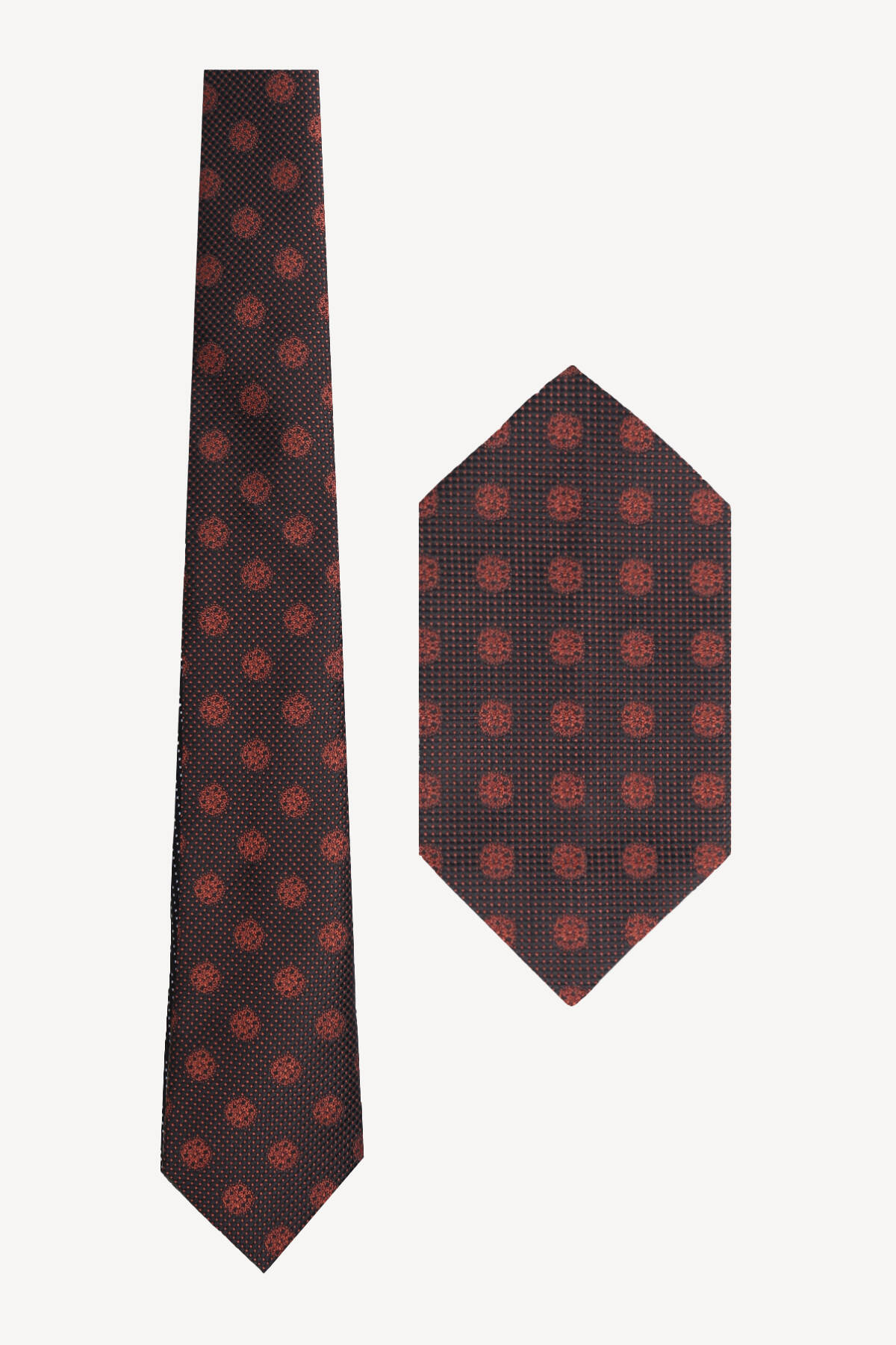 Erkek Kahverengi Desenli Kravat Mendil Set