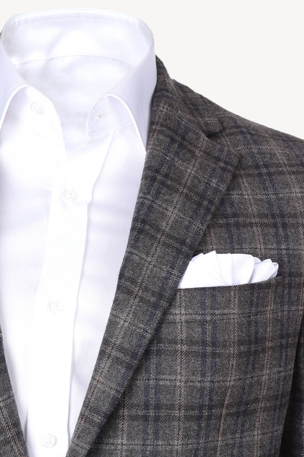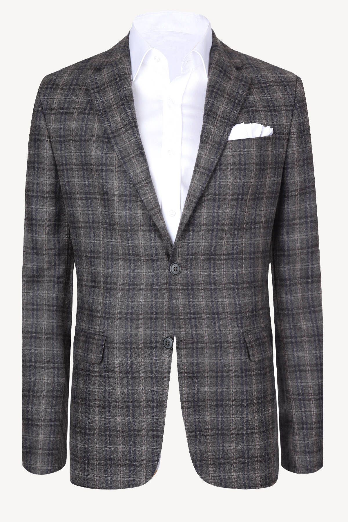 Erkek Kahverengi Klasik Yünlü Ekose Spor Ceket