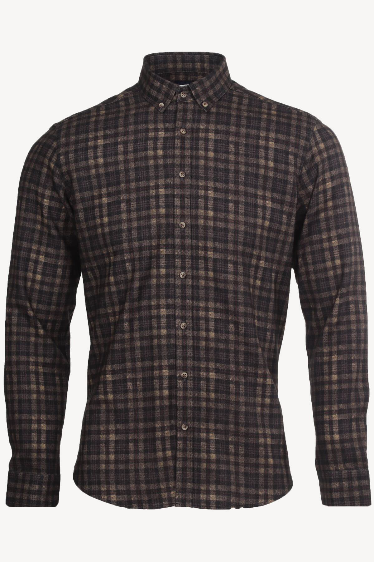 Erkek Kahverengi Uzun Kol Ekose Slim Fit Gömlek