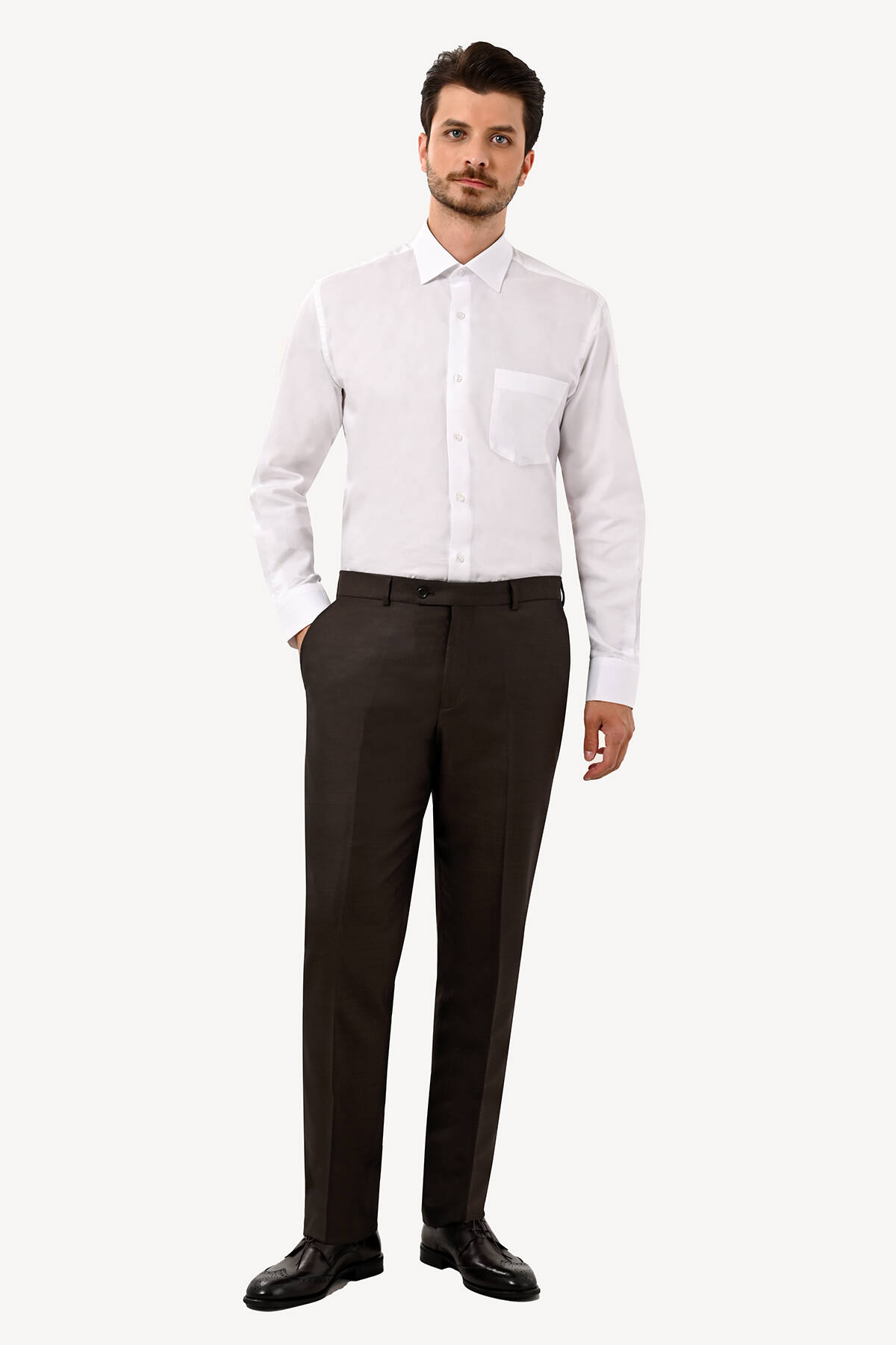 Gelince Haber VerYSF Giyim Erkek Kahverengi Yan Cep Regular Fit Kumaş Pantolon, sonbahar ve kış aylarında sofistike ve klas stili zahmetsizce yaratmak için ideal bir çözüm oluşturur. Koleksiyonun favorisi olan bu şık kumaş pantolon, yün karışımlı tuşesi sayesinde gardırobunuza premium bir parça eklemenize fırsat sunar. Business smart veya yarı resmî durumlar için zarif bir seçenek olan tasarım, her detayında yüksek kalite işçiliğini yansıtır. Kişiye özel görünüme sahip erkek kumaş pantolon, regular fit kalıbı ile konforu eşsiz şekilde deneyimlemenizi sağlar. Düz kesime eşlik eden fleto cepler ise kumaş pantolonda aradığınız zamansız ve sofistike şıklığı özenle yansıtır. Tasarımın klasik silüeti, slim fit gömlek, blazer ceket veya polo yaka triko gibi parçalarla çekici kombinlere dönüşebilir. Bu şık erkek kumaş pantolon, formal stile en çok yakışan kahverengi tonunda tasarlanmıştır. Kahverenginin asla modası geçmeyen zengin ve çarpıcı duruşu, kombinlerinizin zahmetsizce seçkin bir görünmesini sağlar. Elit terzilik detaylarına sahip kahverengi kumaş pantolon, beyaz slim fit gömlek ve klasik Derby tarzı acı kahverengi tonlarında ayakkabılarla tamamlandığında hayalinizdeki çekici ofis tarzına dönüşebilir. Bu tarz lüks malzemeleri kusursuz kalıp ve birinci sınıf işçilikle buluşturan erkek pantolon modelleri YSF Giyim’de sizleri bekler. Siz de avantajlı fiyatlar ve premium alışveriş deneyimleri ile erkek pantolon modellerini sipariş ederek YSF Giyim’in ayrıcalıklı dünyasına adım atabilirsiniz!