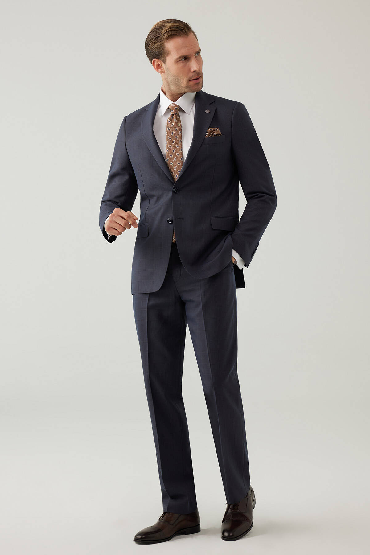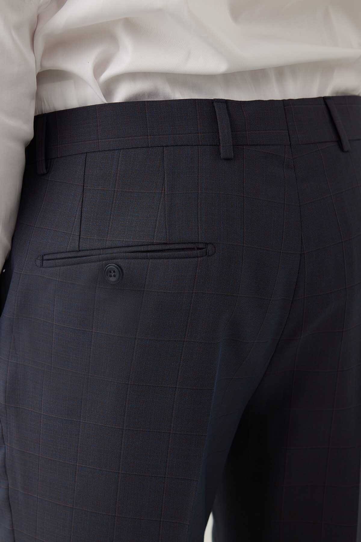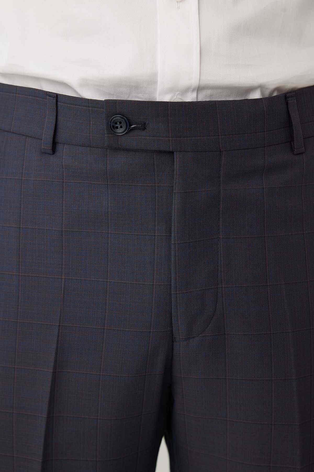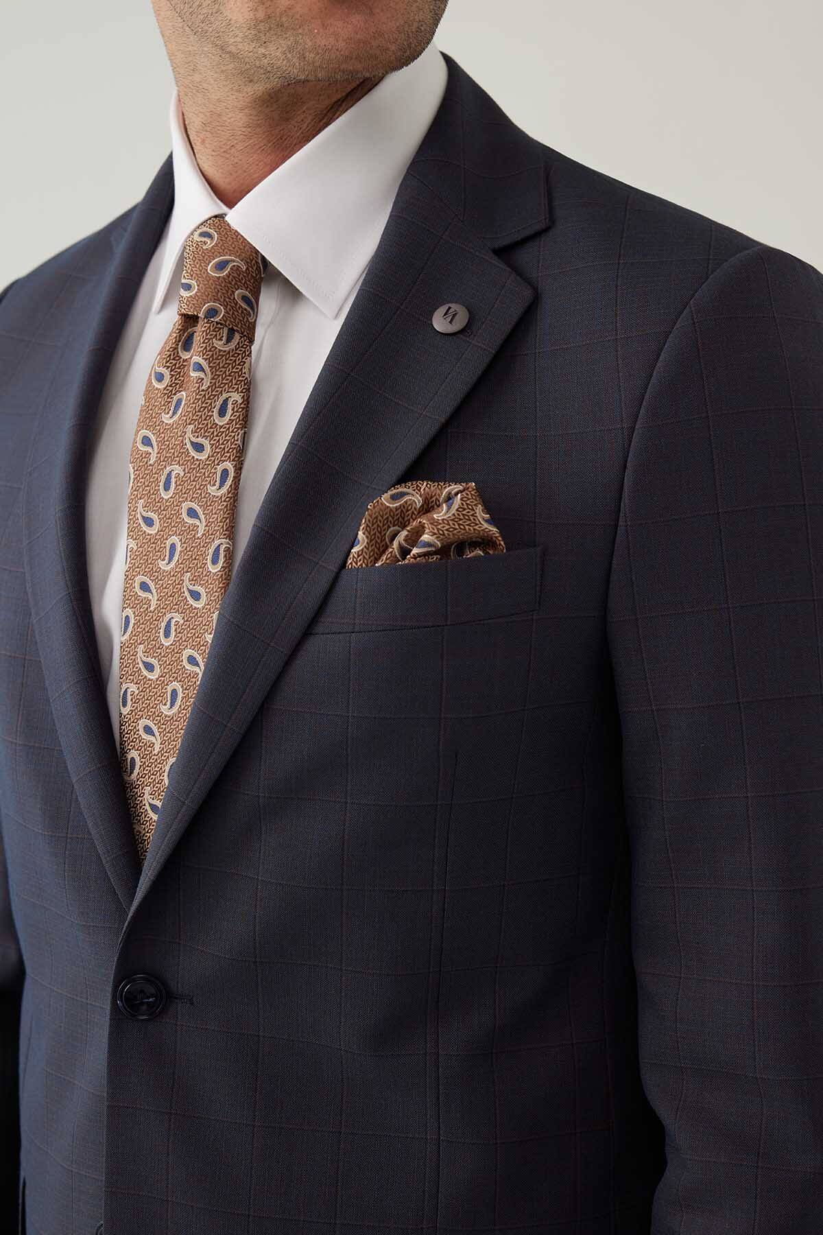 Erkek Lacivert-Kahve Kareli Klasik Takım Elbise