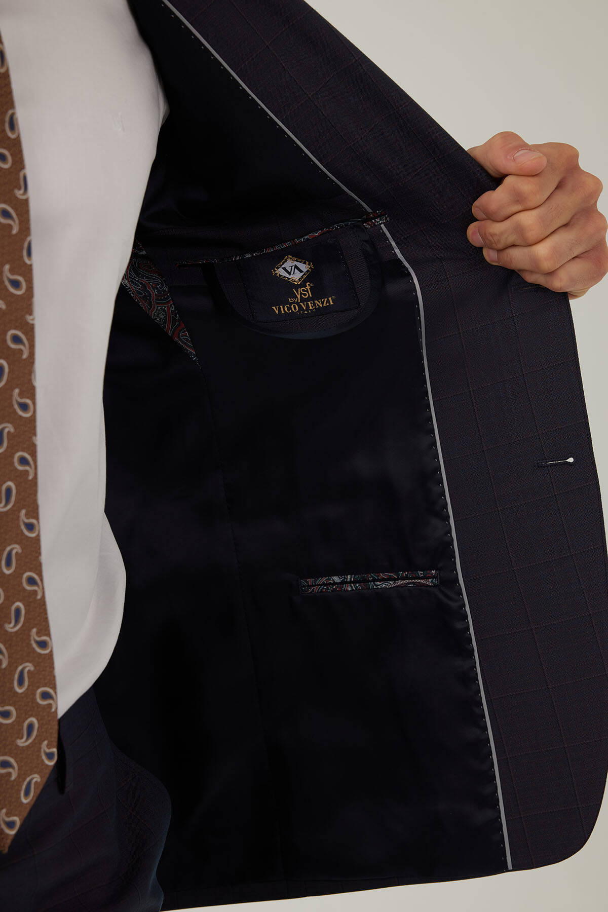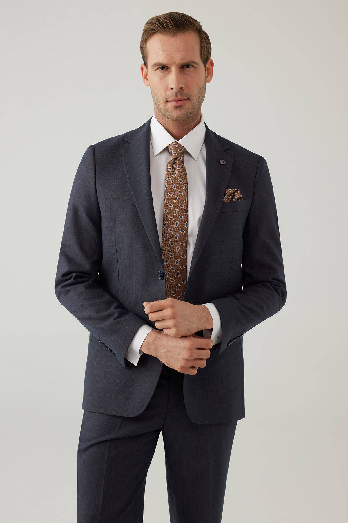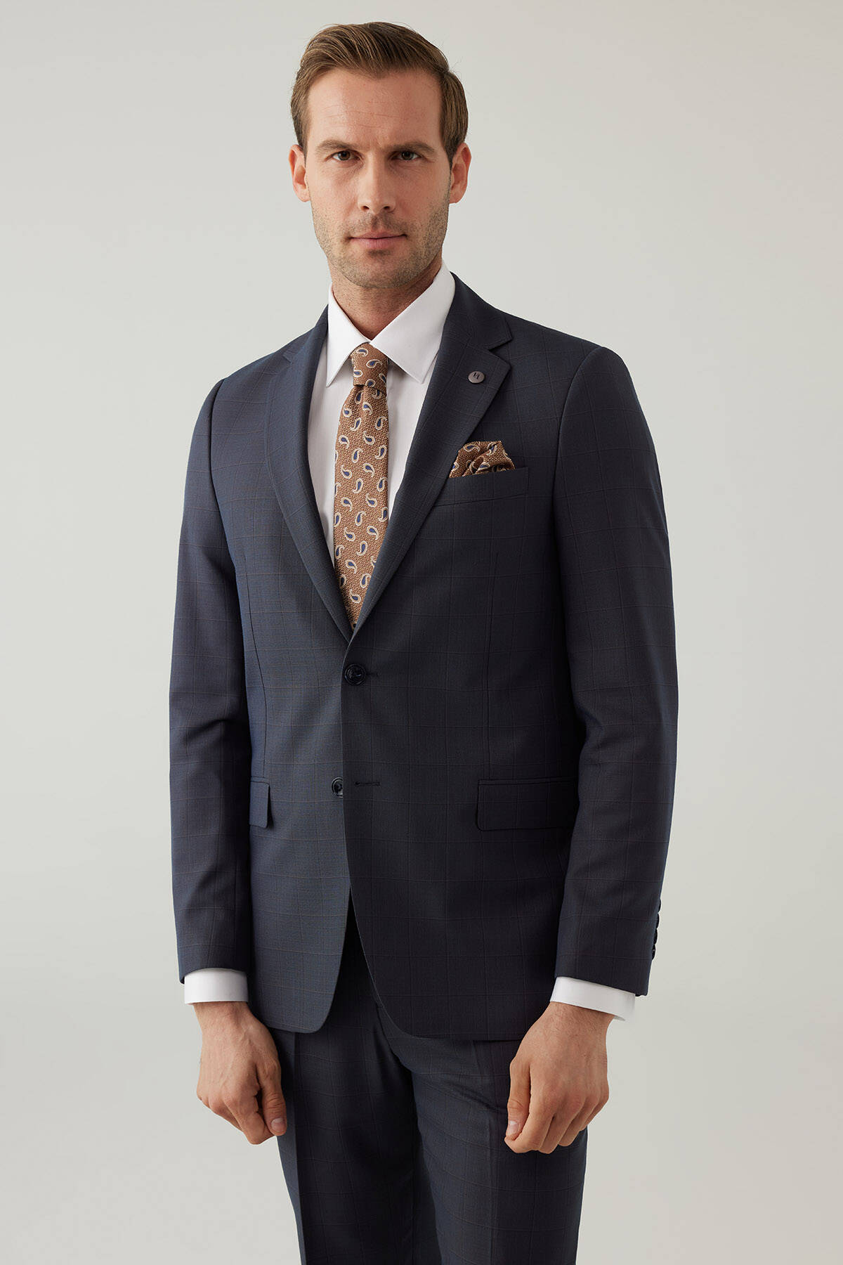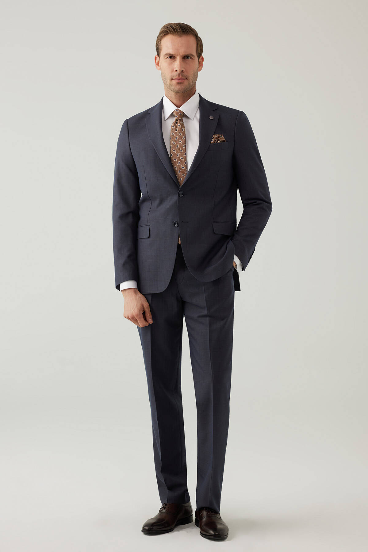Erkek Lacivert-Kahve Kareli Klasik Takım Elbise
