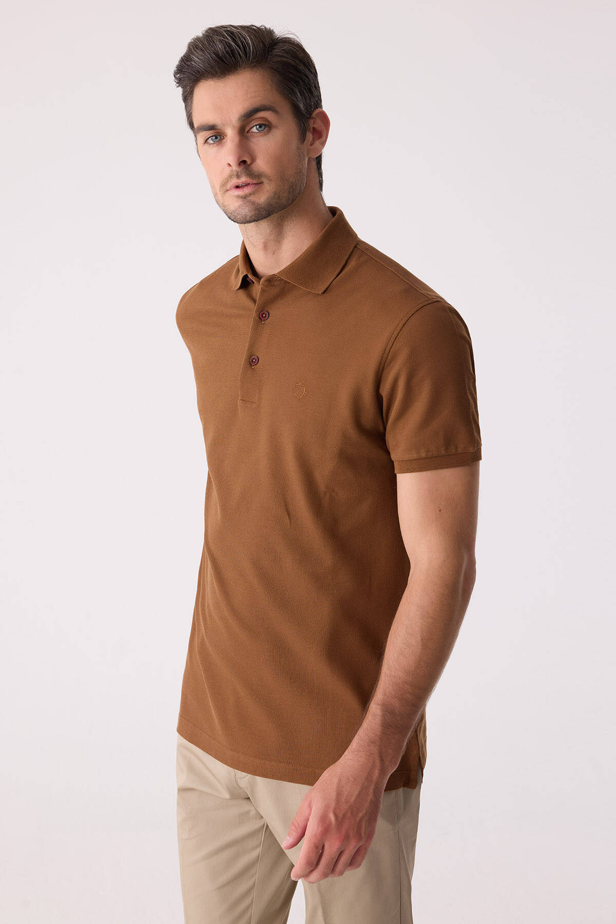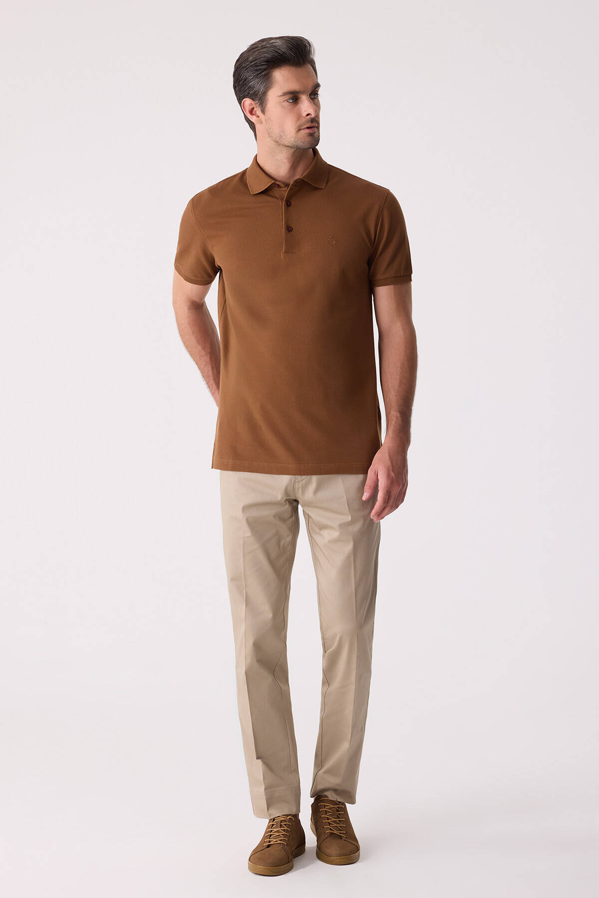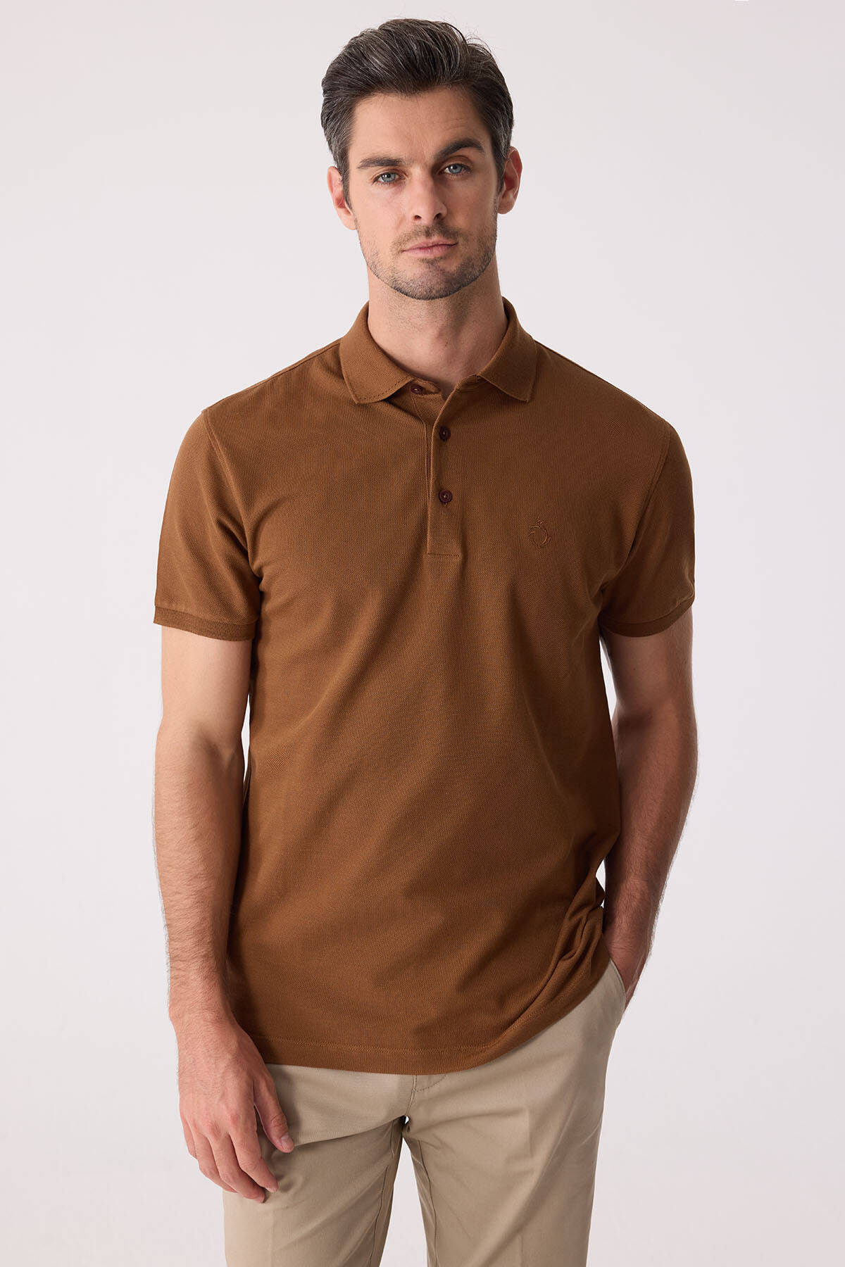 Erkek Kiremit Polo Yaka %100 Pamuk Tişört