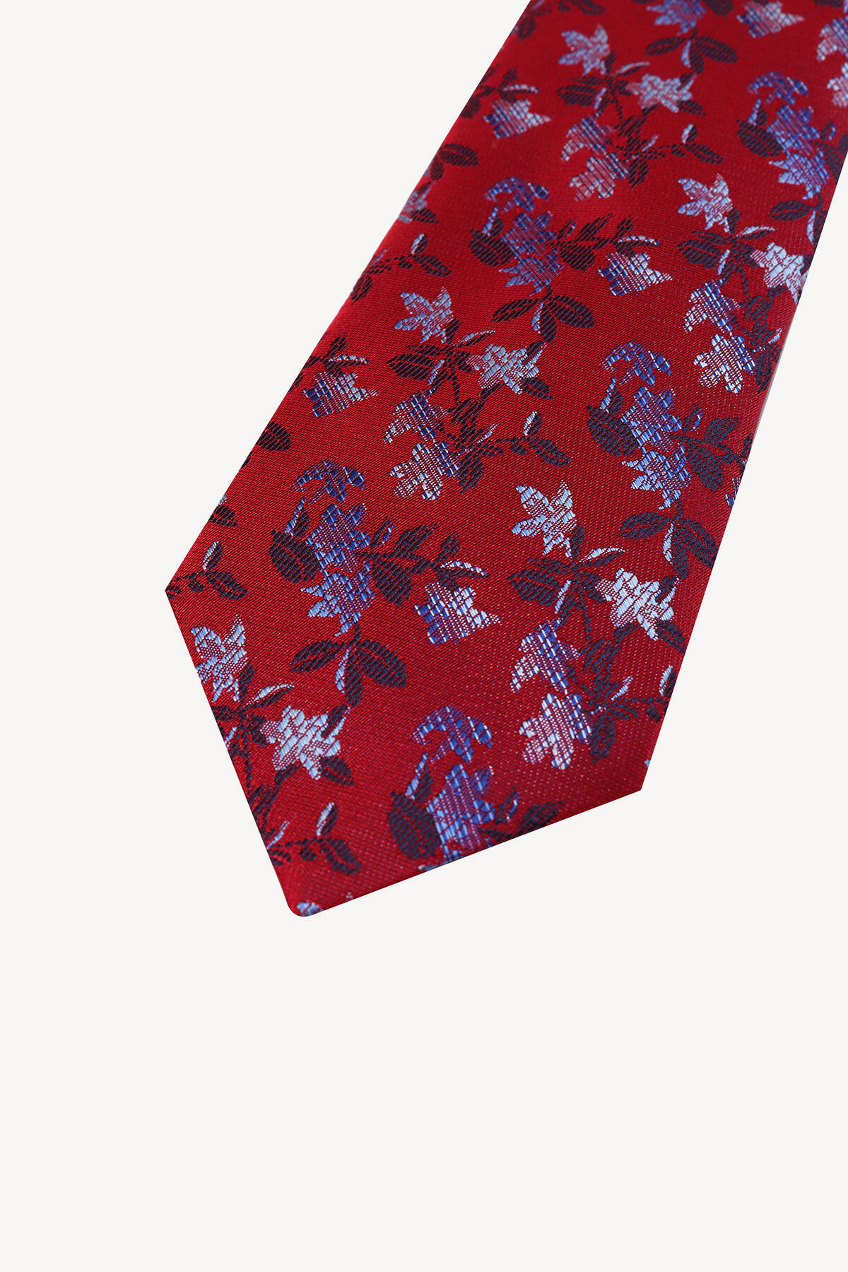 Erkek Kırmızı Çiçek Desenli Kravat Mendil Set