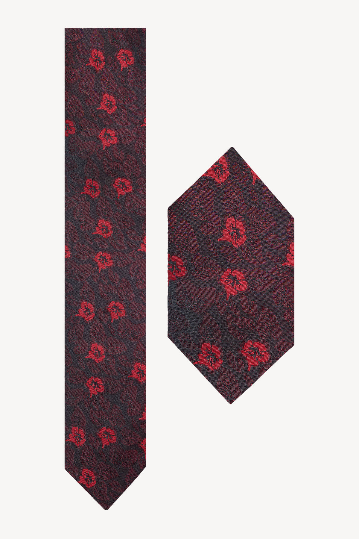 Erkek Lacivert Çiçek Desenli Kravat Mendil Set