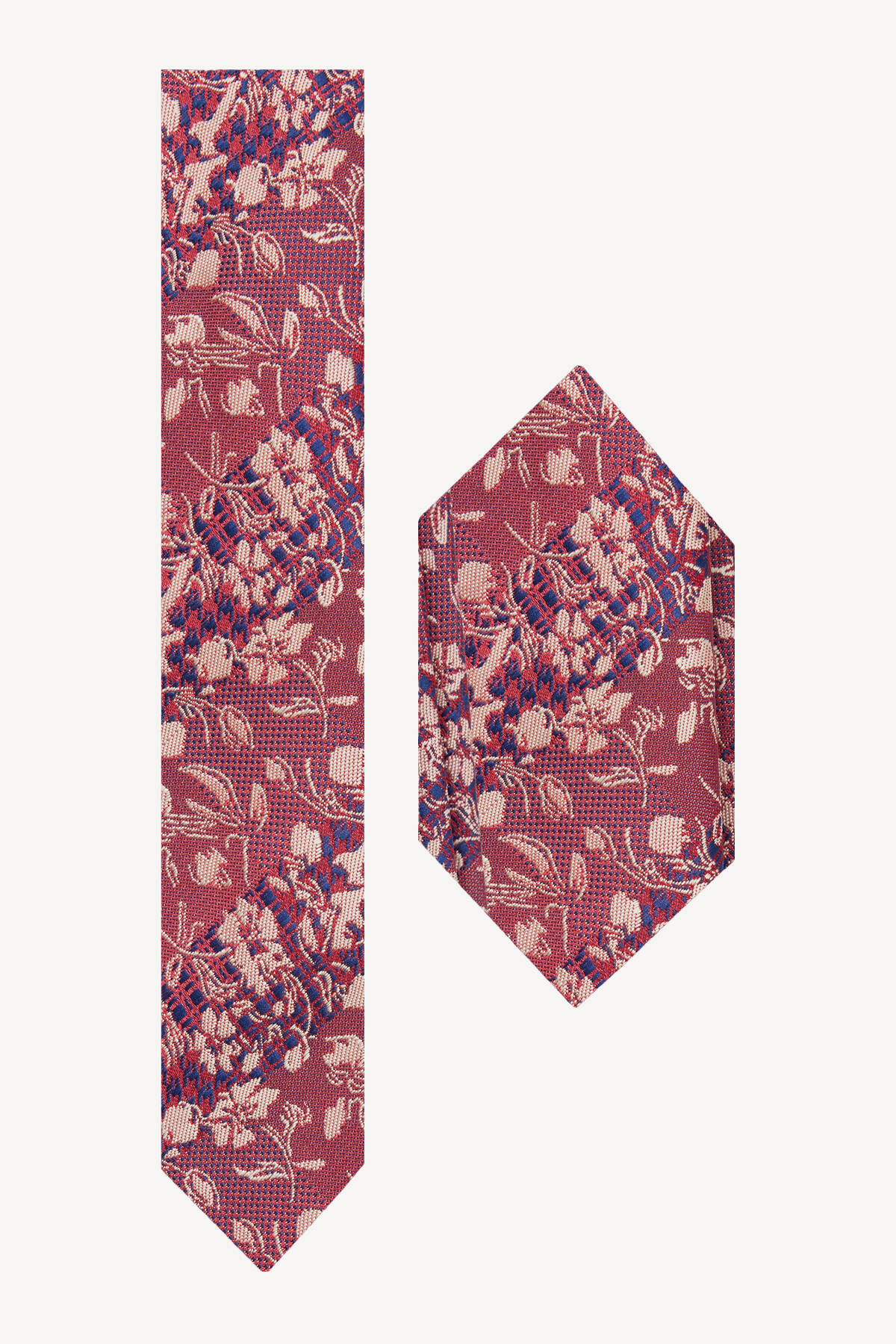 Erkek Kırmızı Desenli Kravat Mendil Set