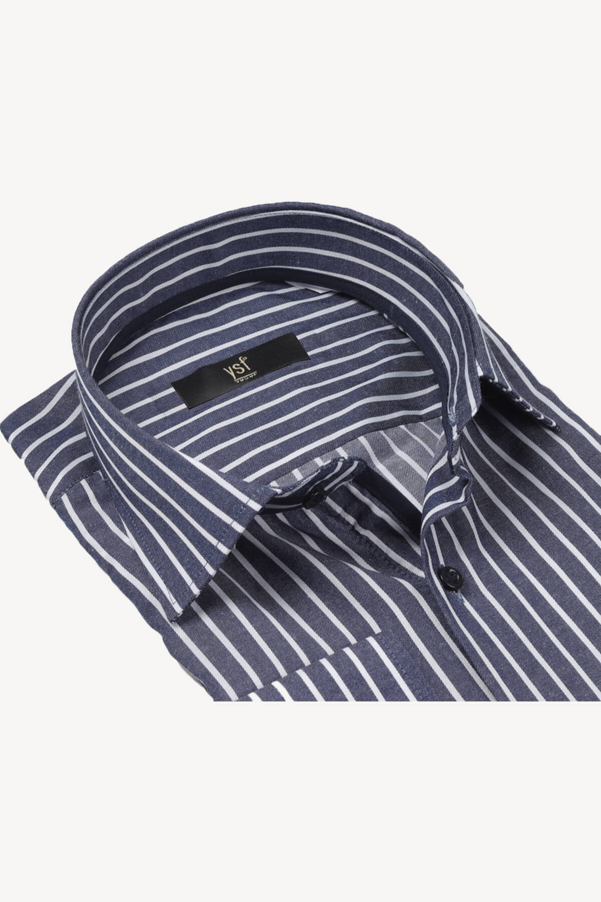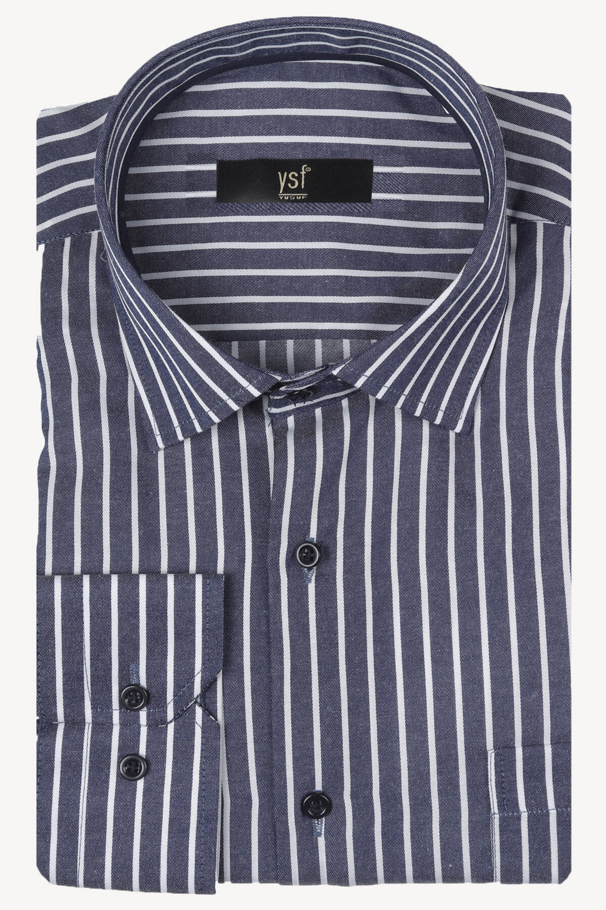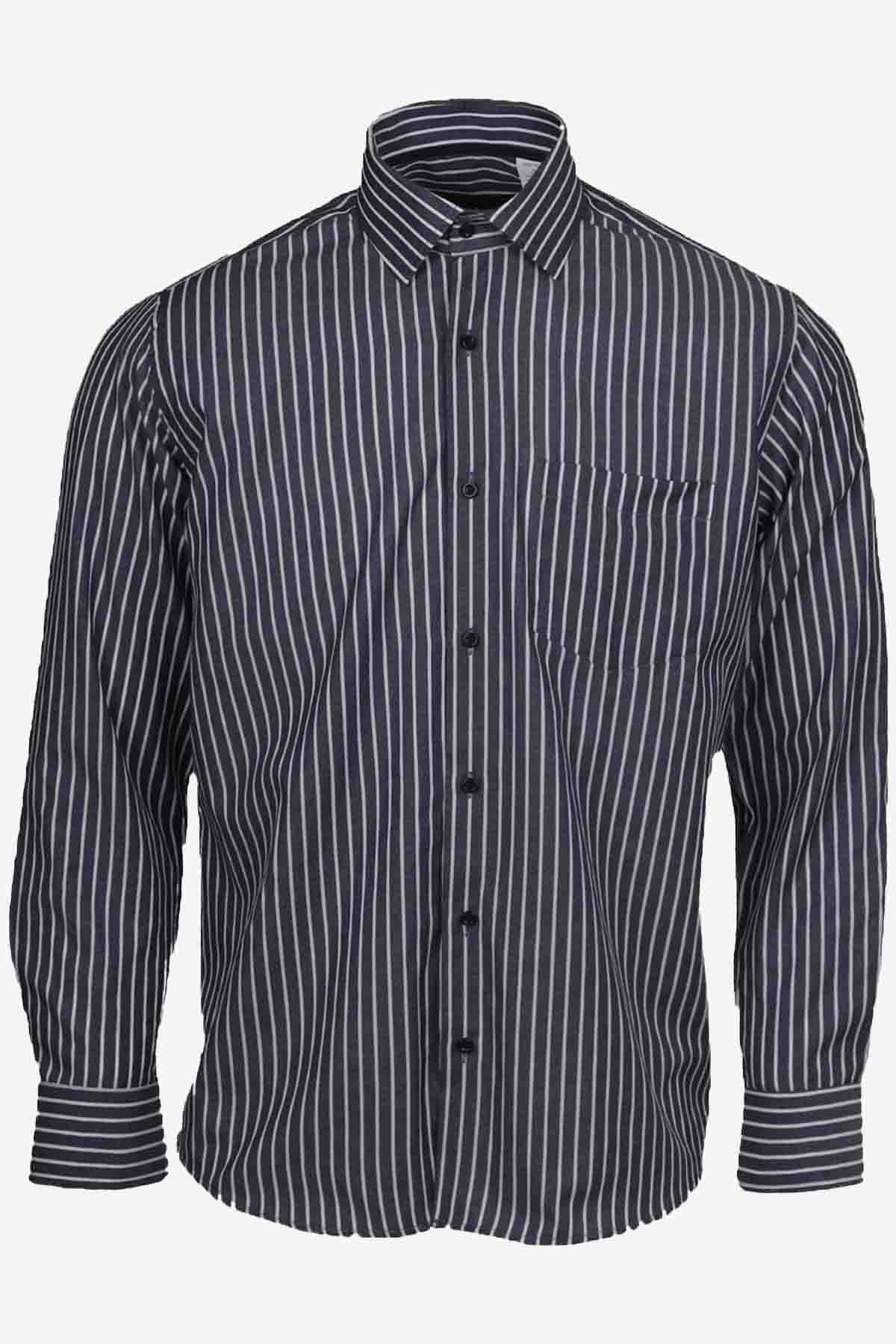 Erkek Koyu Gri Çizgili Klasik Uzun Kollu Gömlek