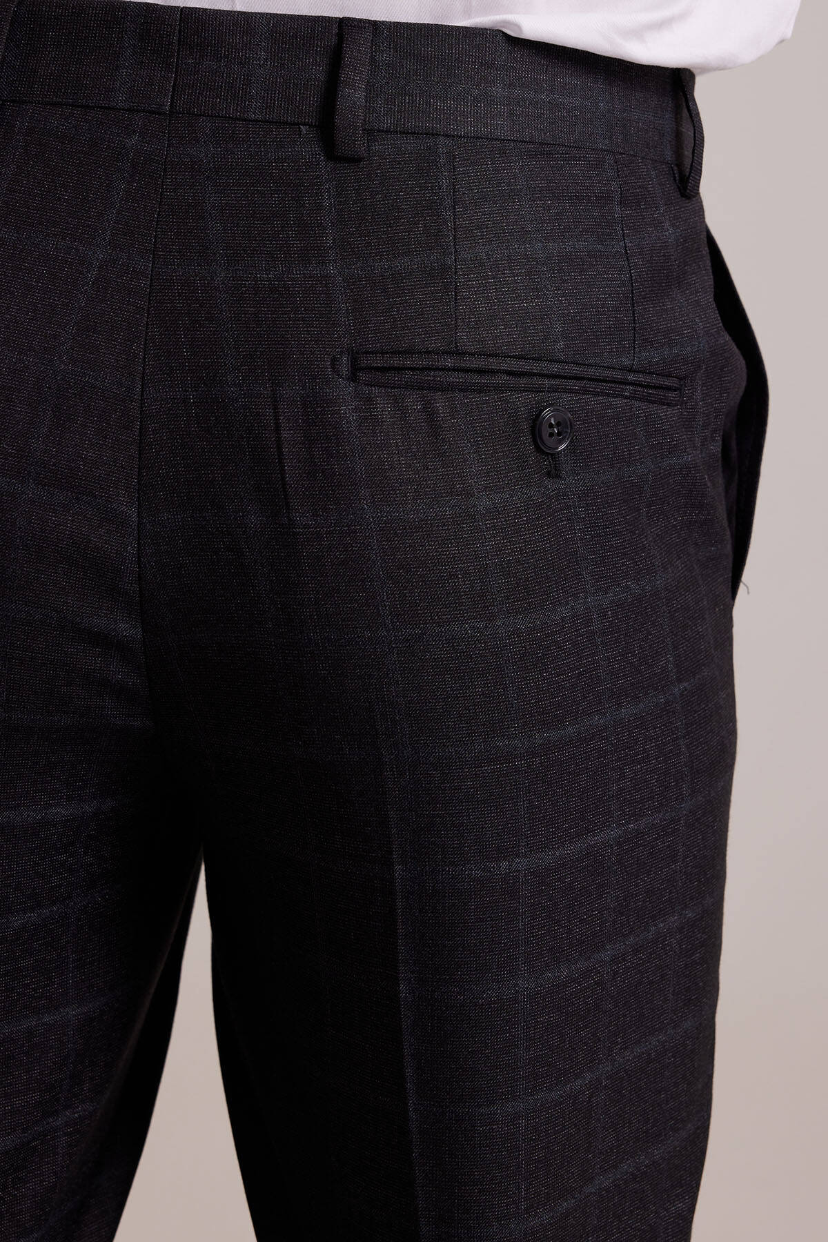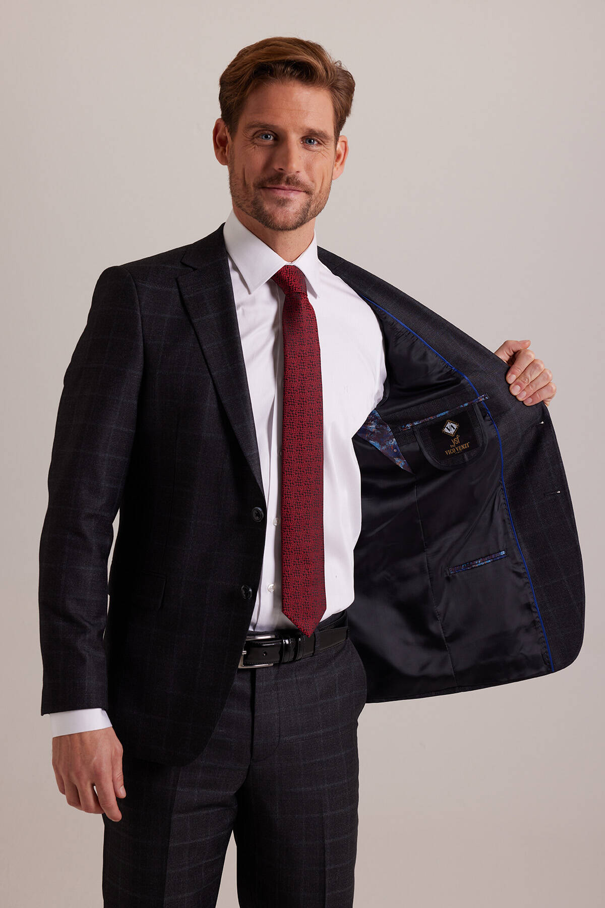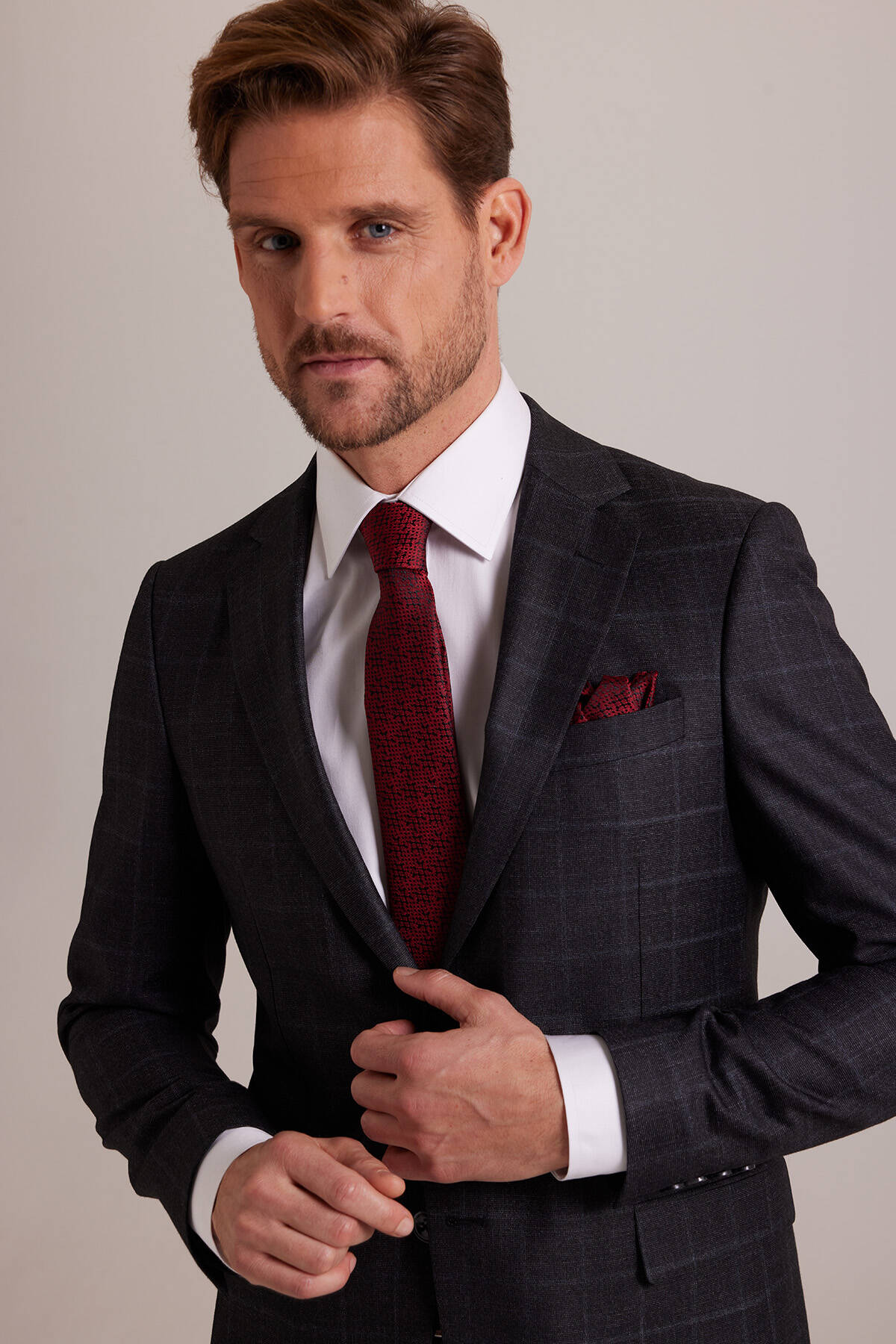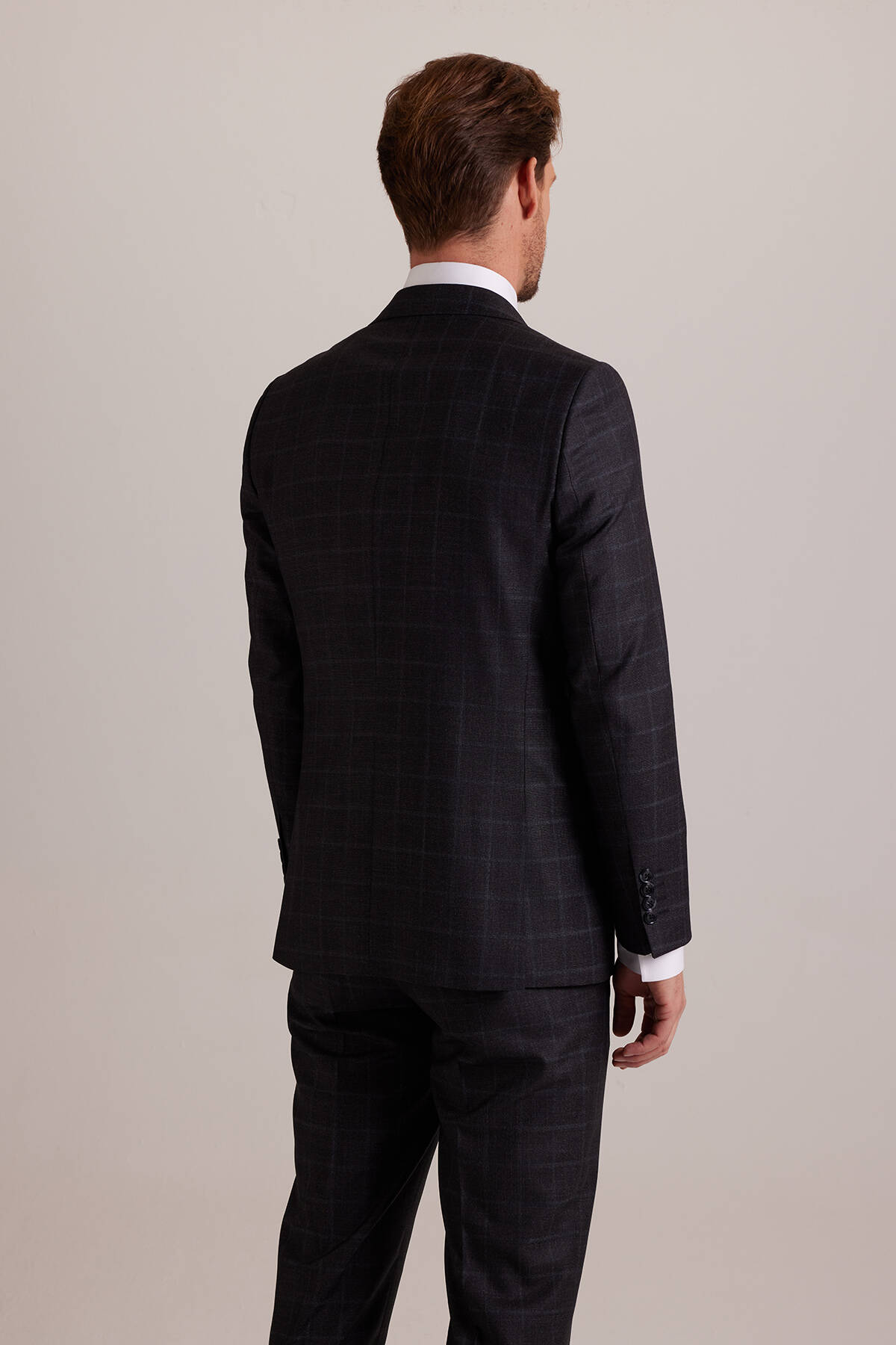 Erkek Koyu Gri Regular Fit Kareli Takım Elbise