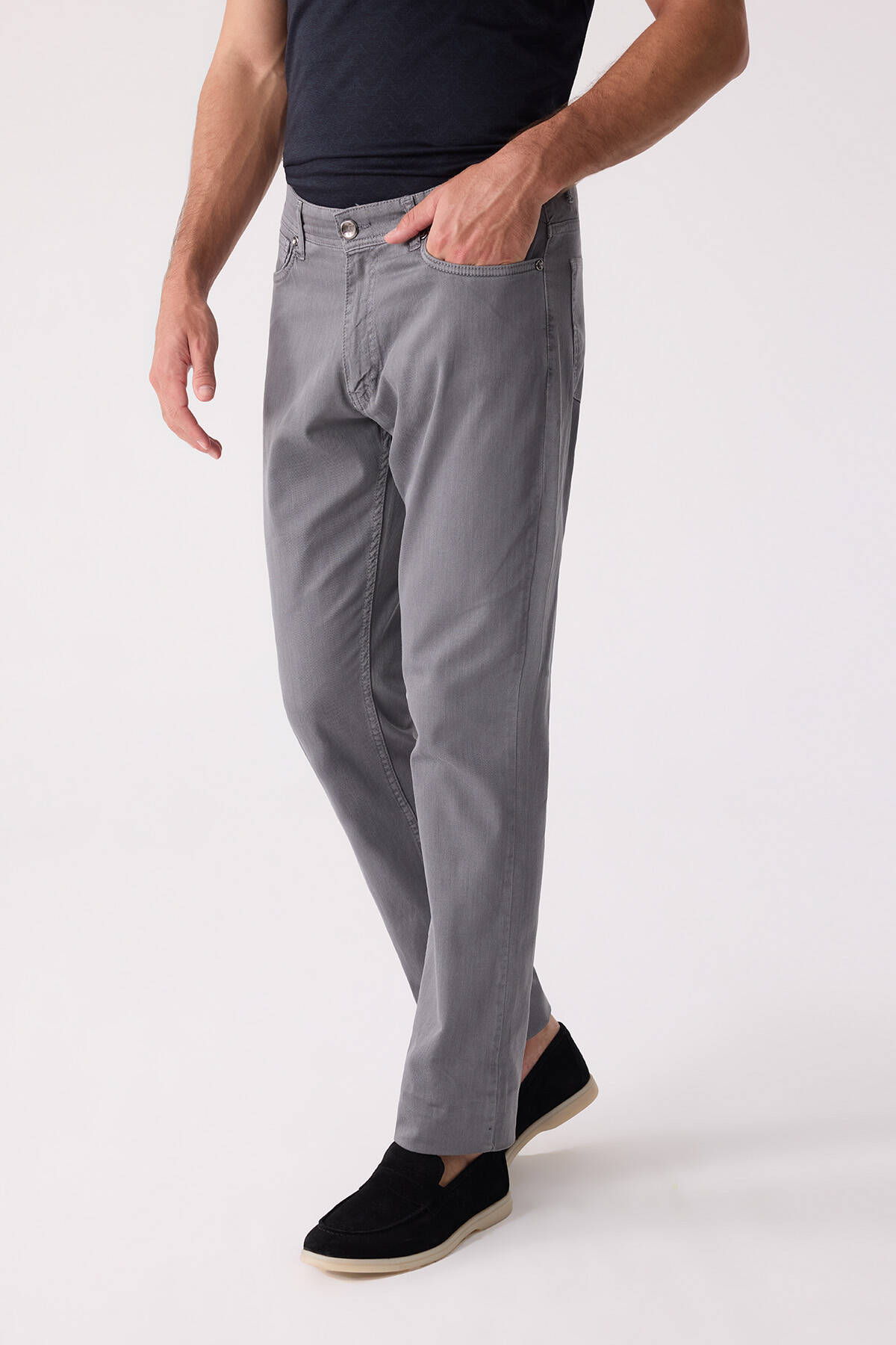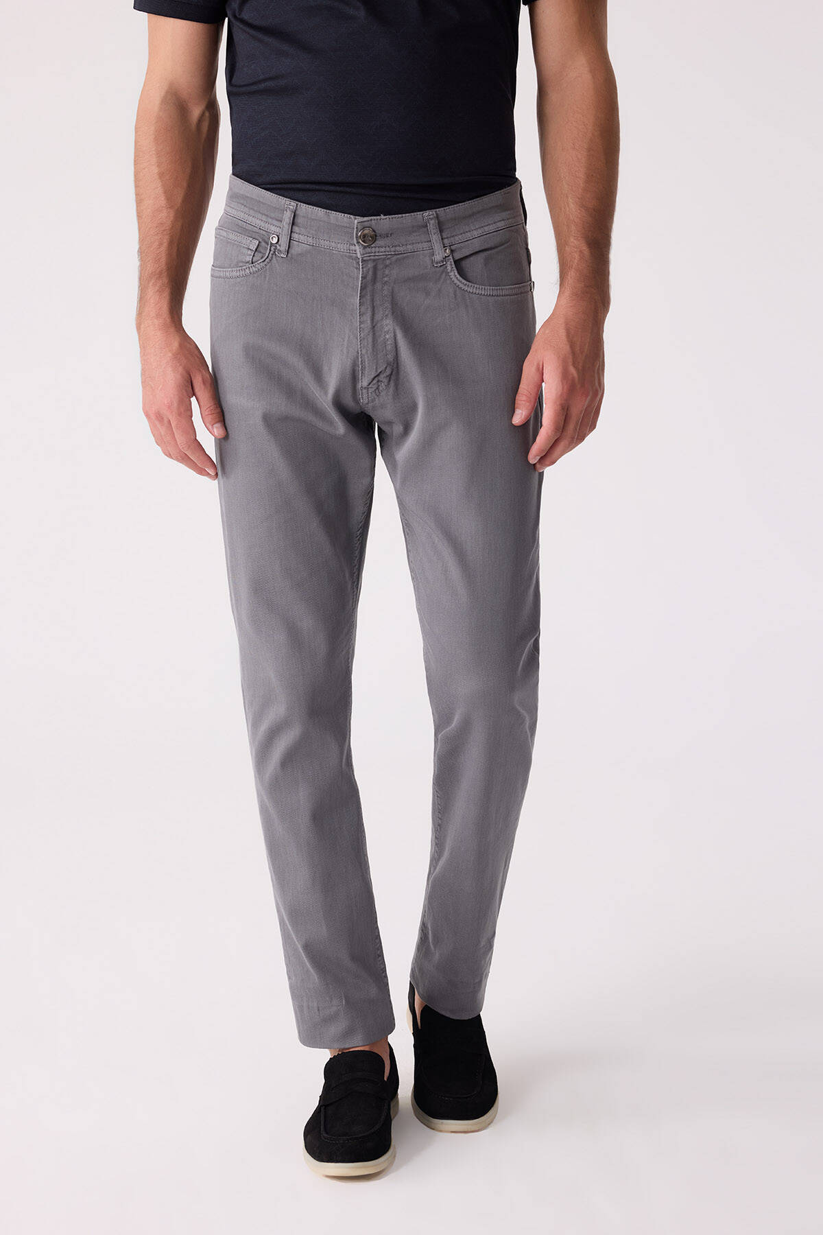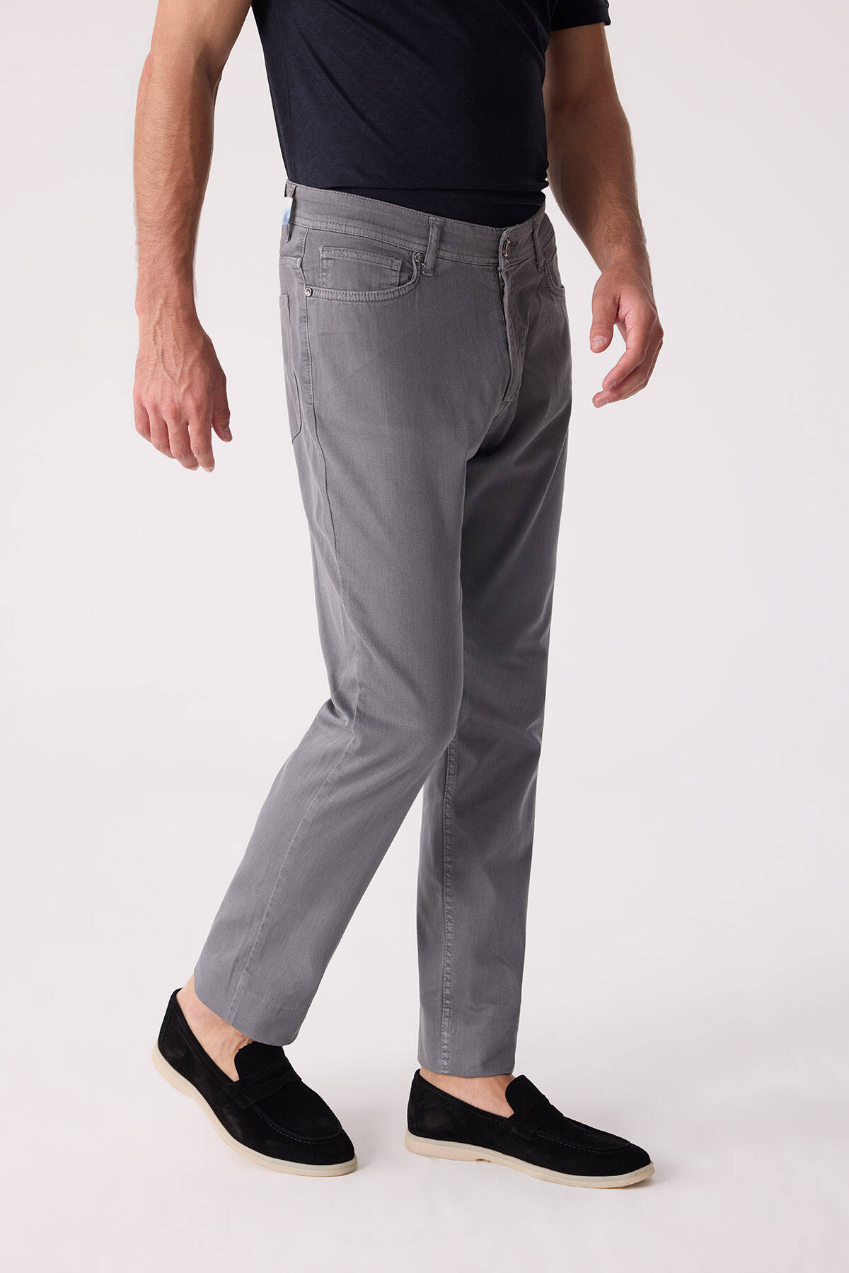 Erkek Gri Slim Fit Üst Cep Kanvas Pantolon