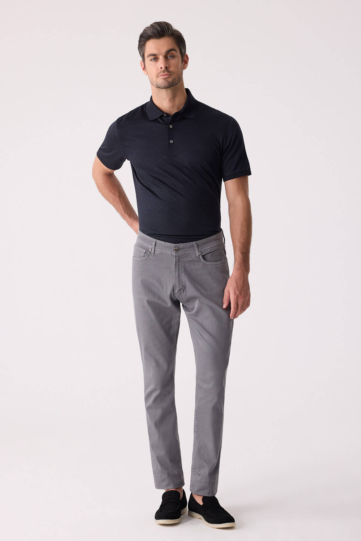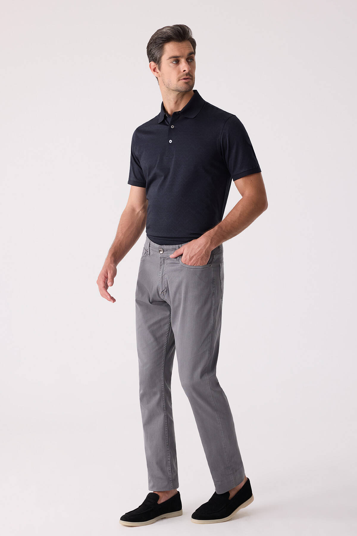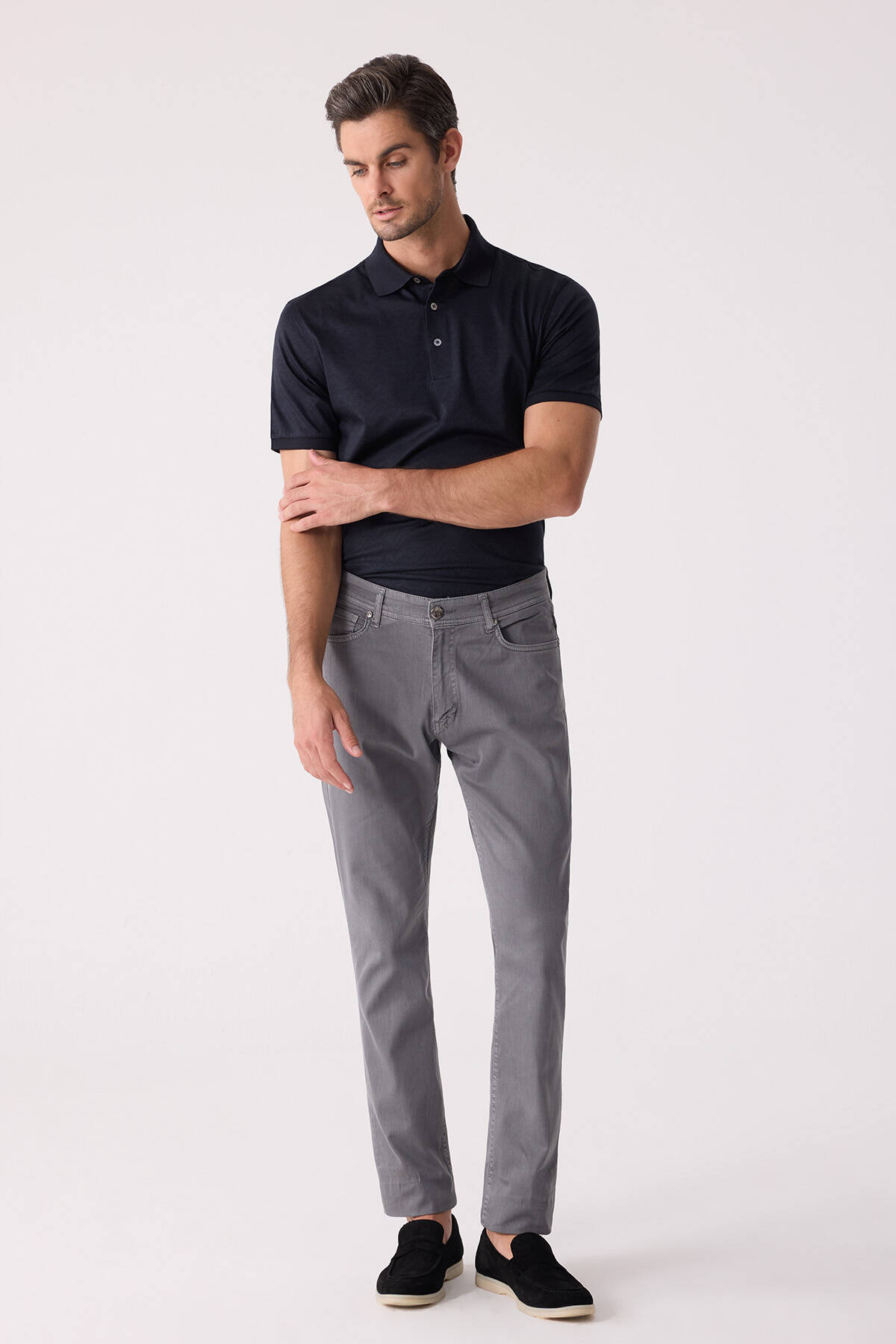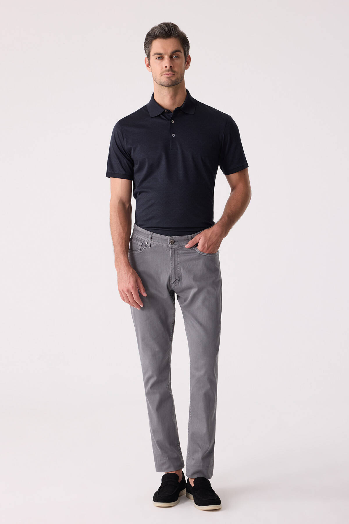 Erkek Gri Slim Fit Üst Cep Kanvas Pantolon