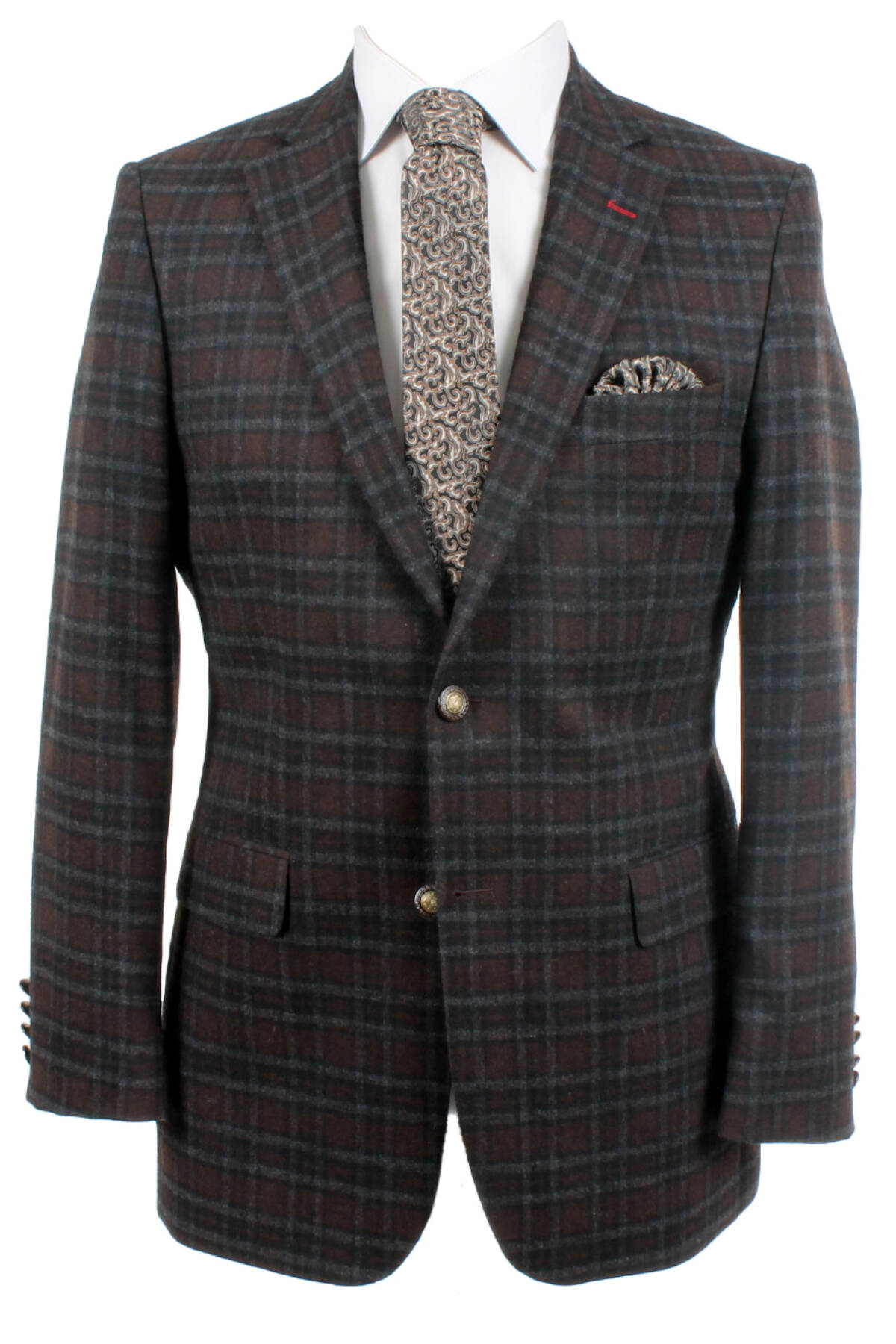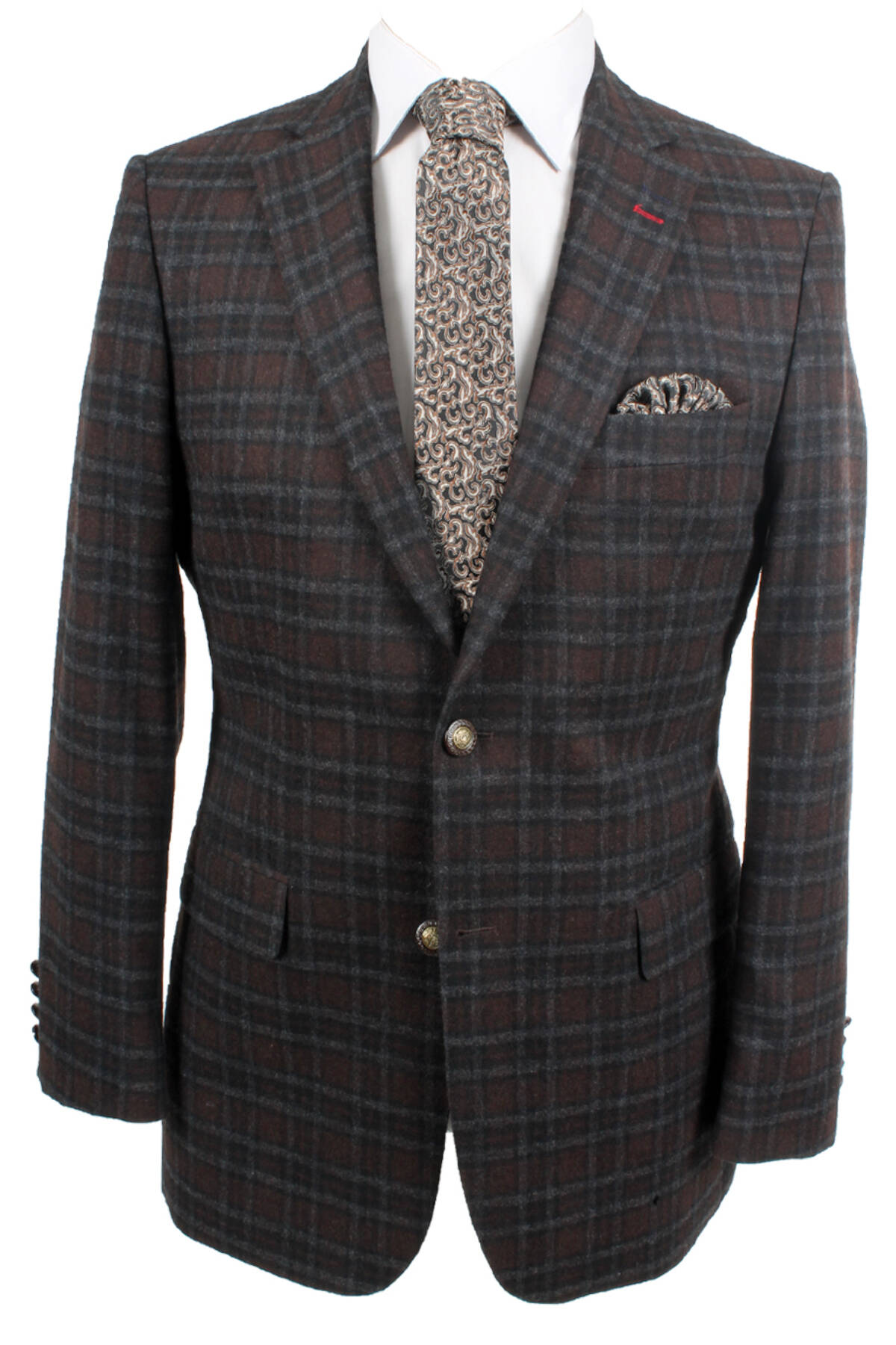 Erkek Koyu Kahverengi Klasik Ekose Spor Ceket