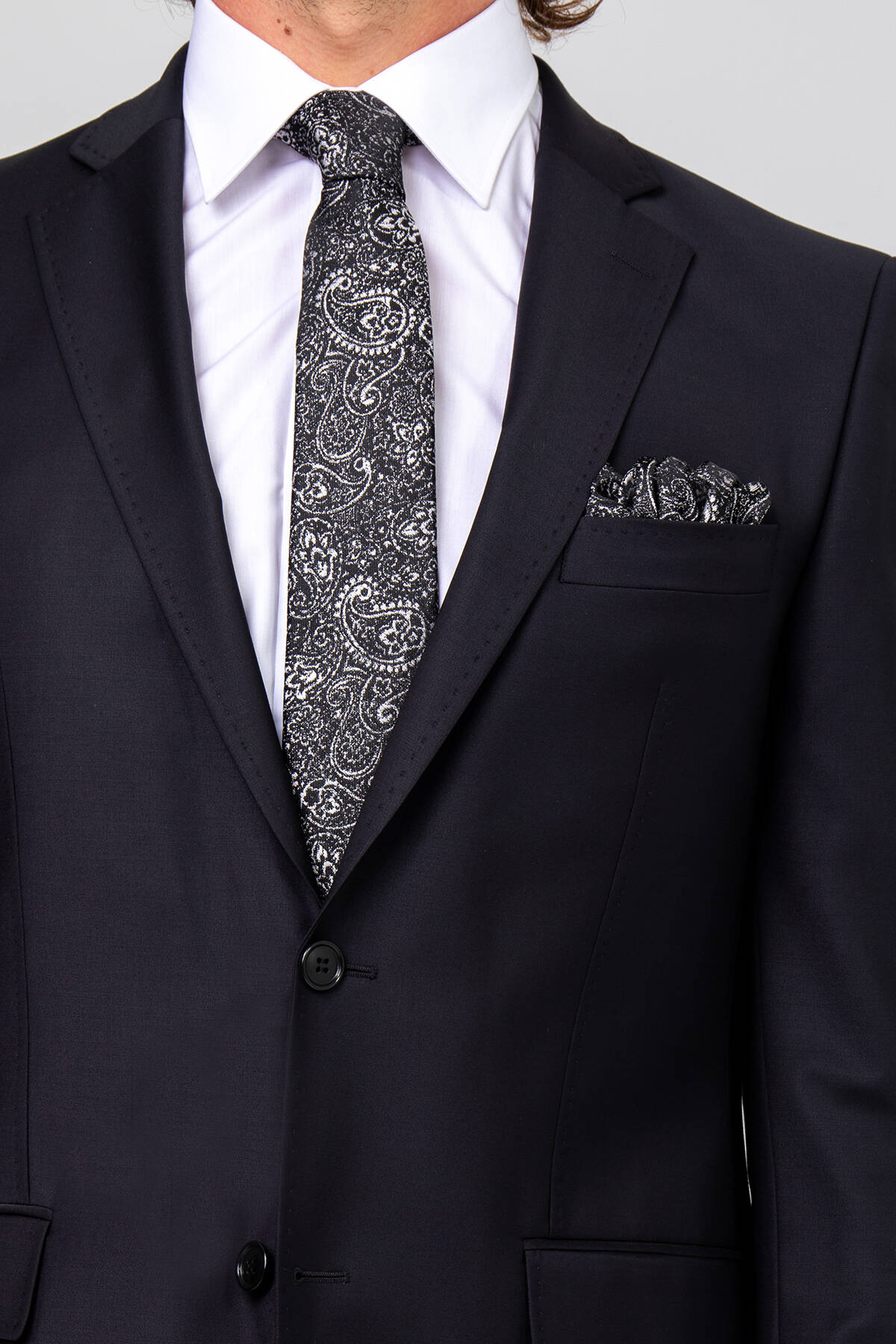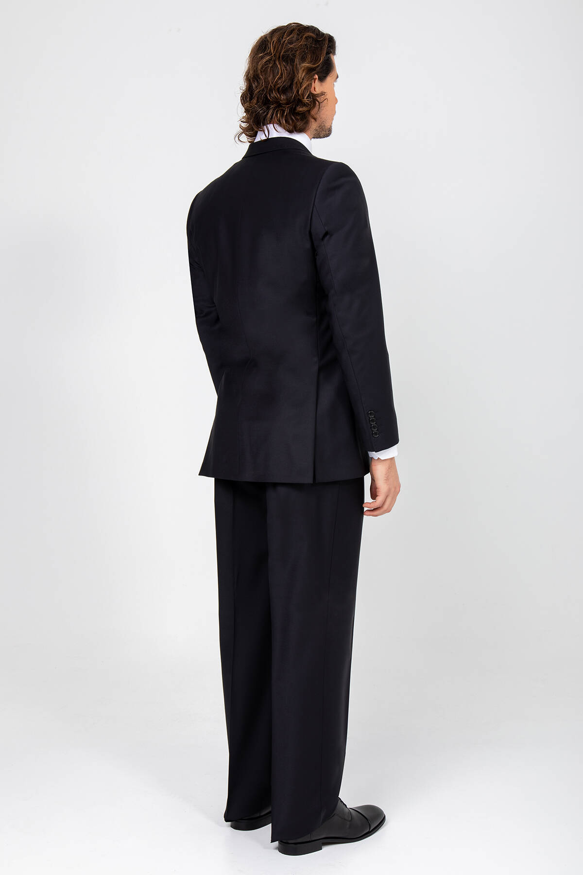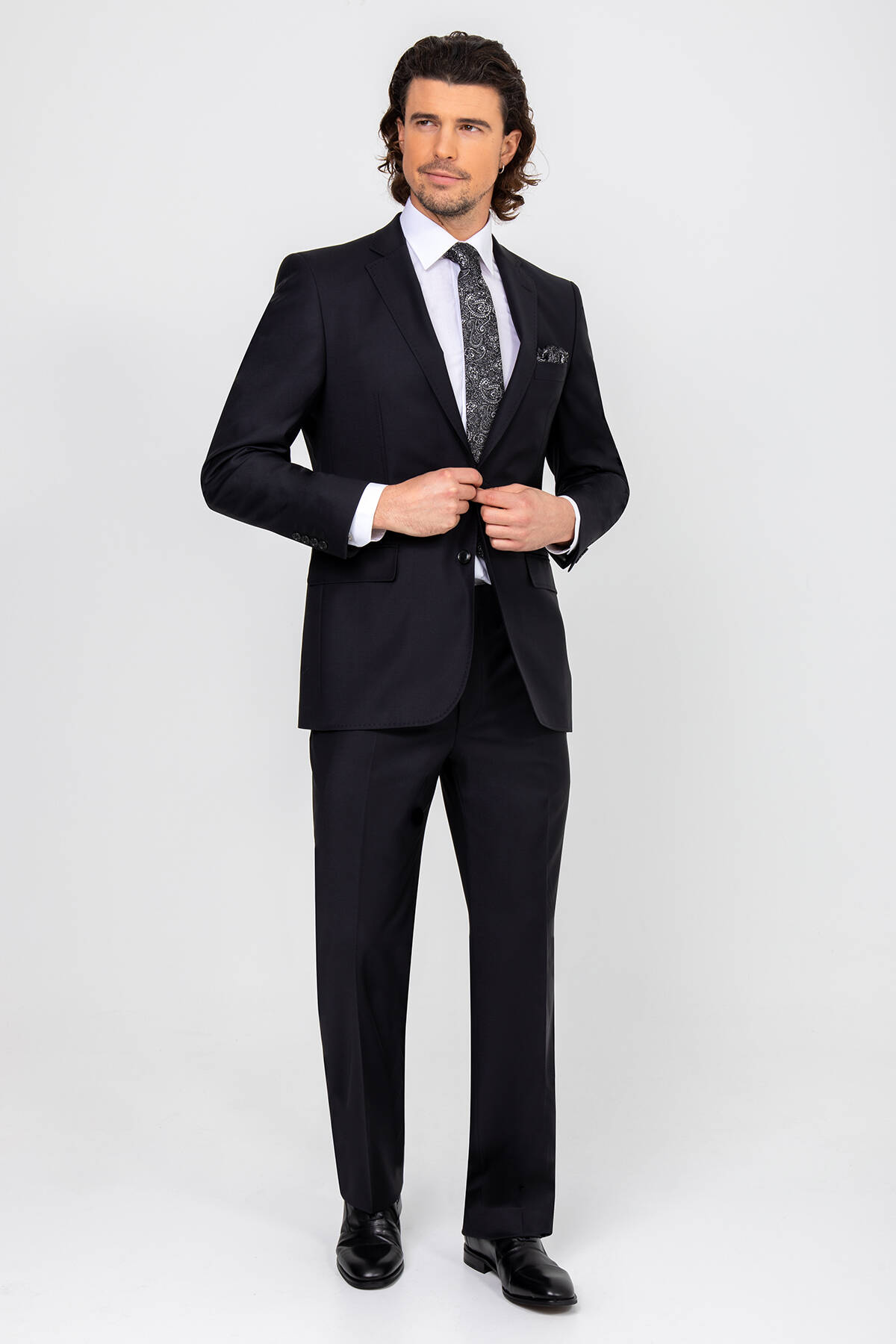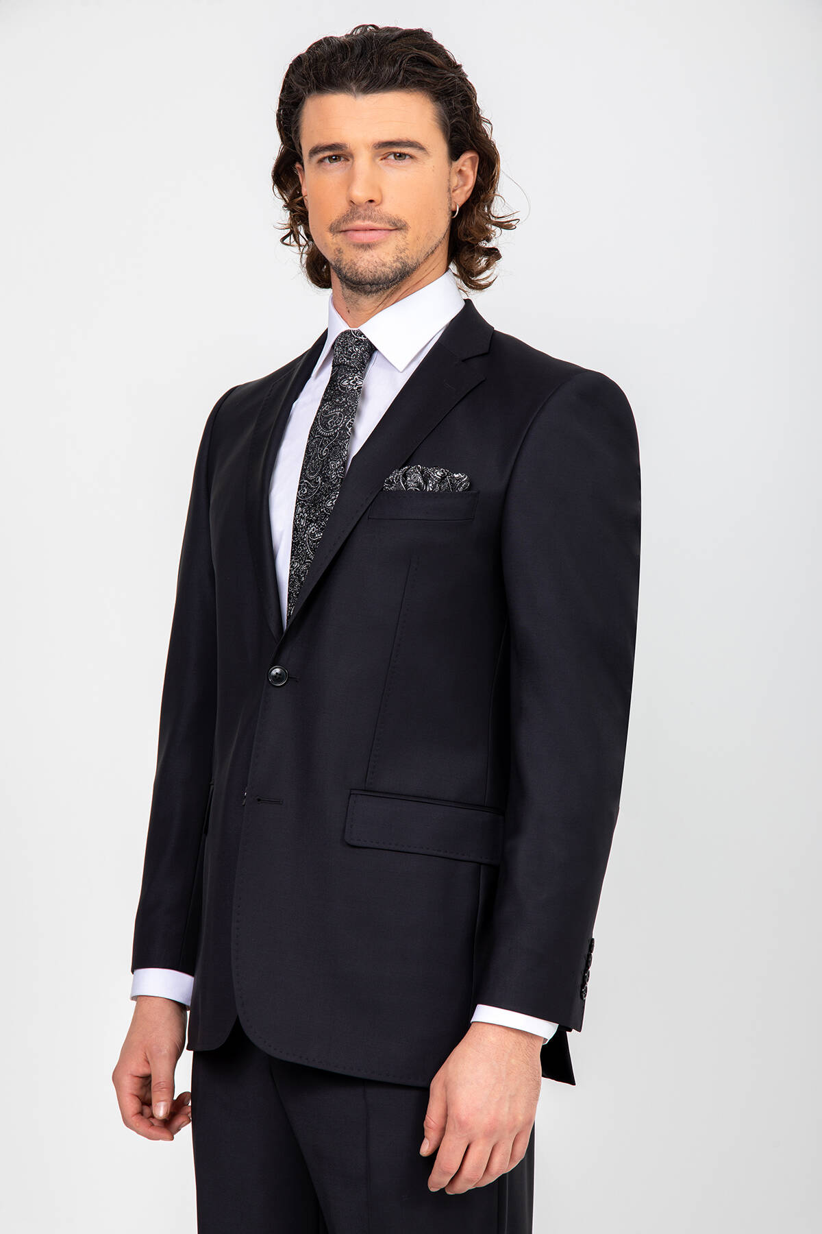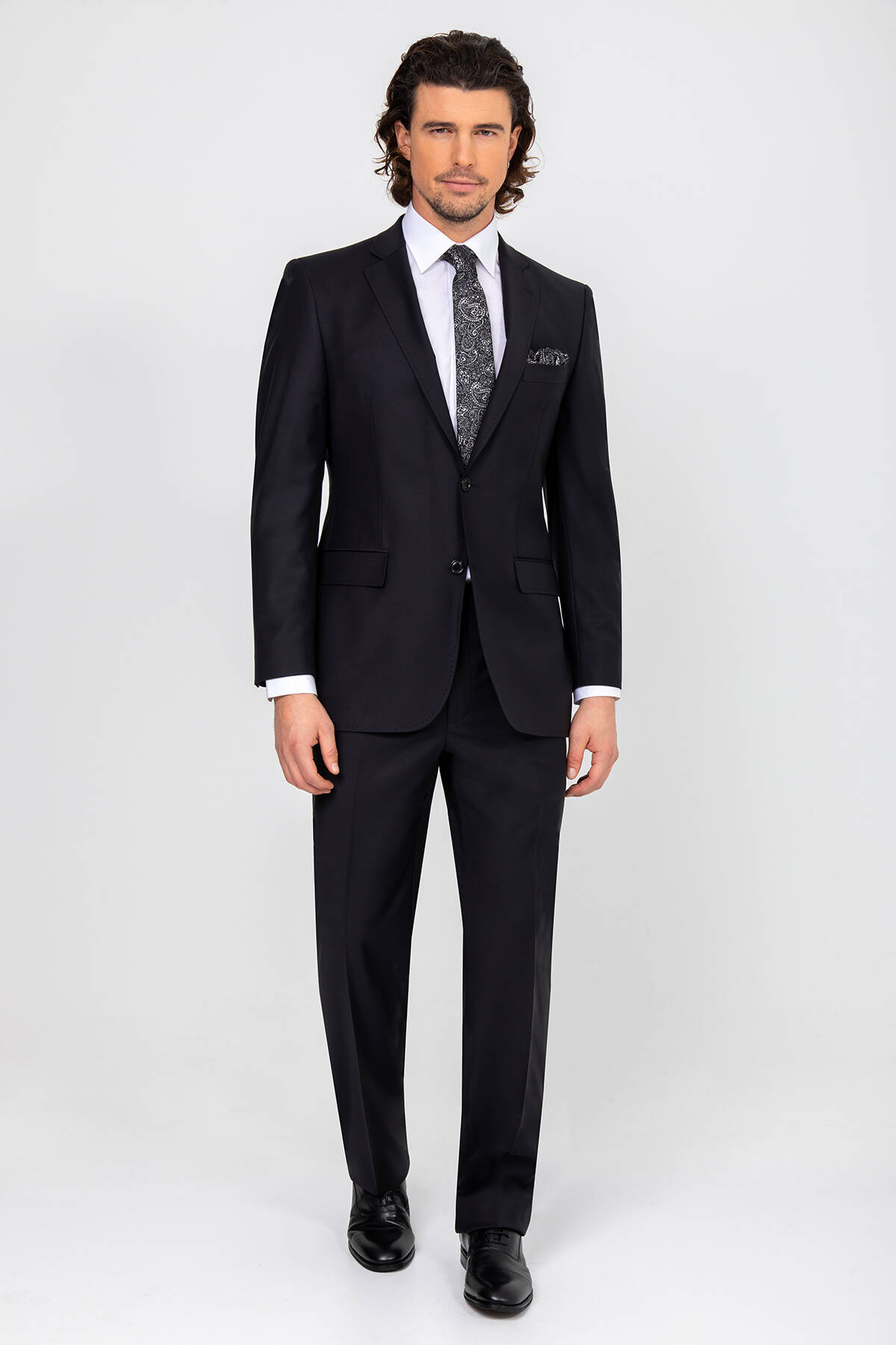 Erkek Koyu Lacivert Klasik Puntolu Takım Elbise