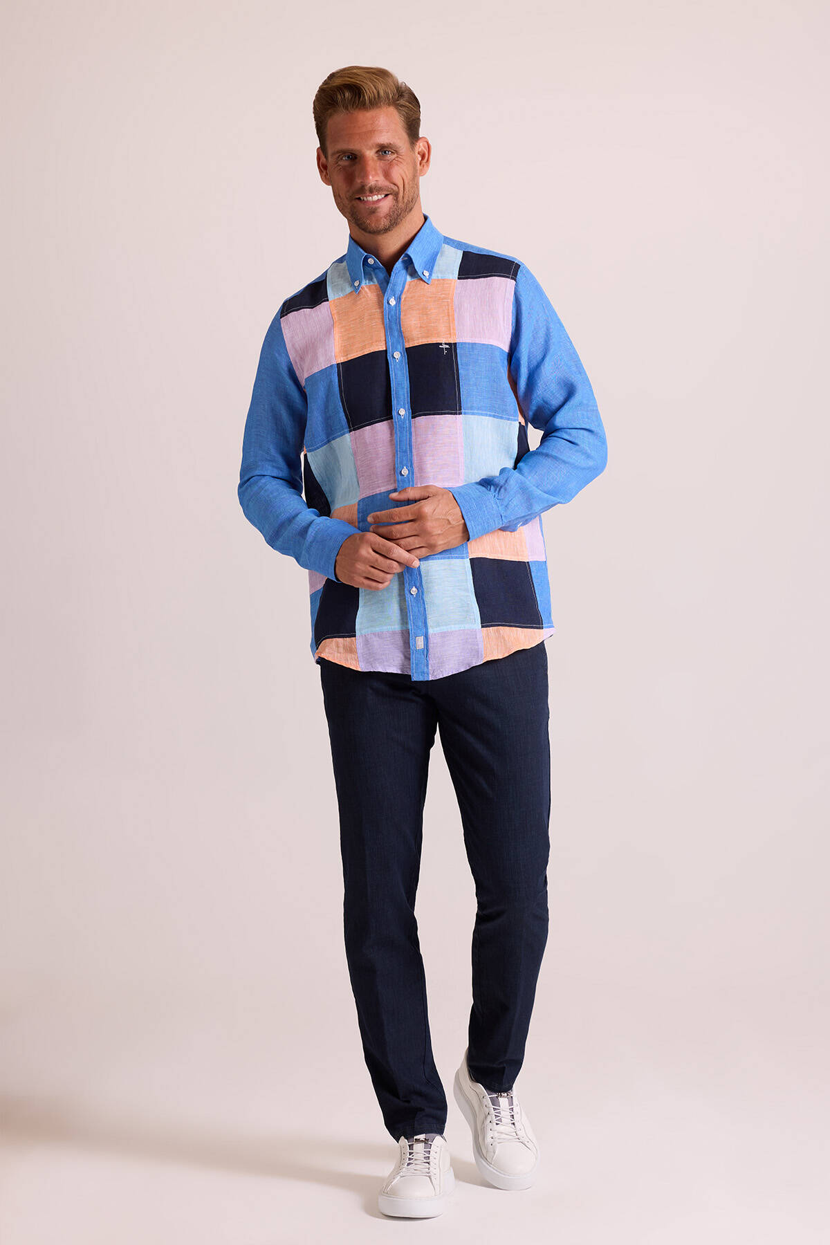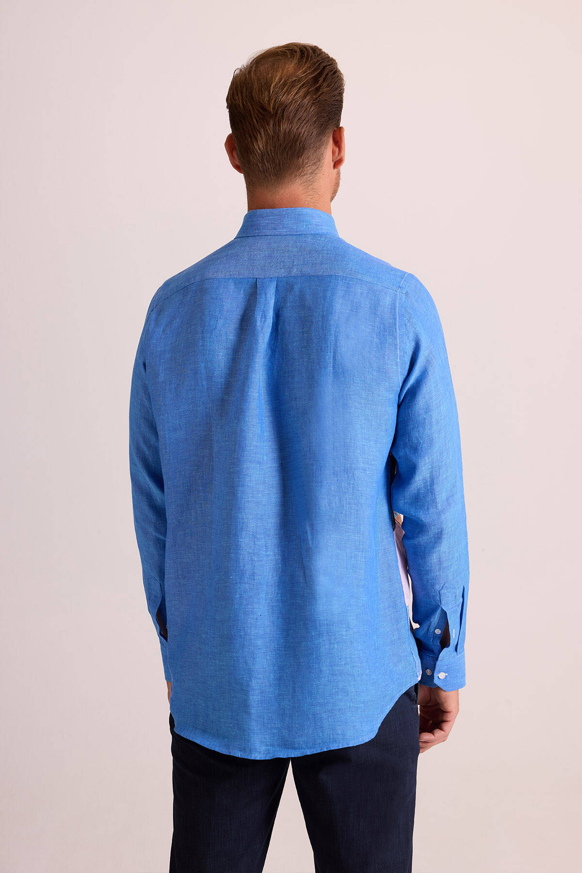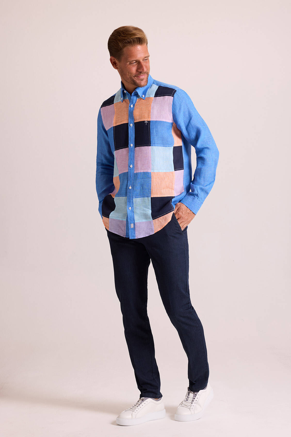 Gelince Haber VerYSF Giyim yaz koleksiyonunun en renkli parçalarından olan Erkek Koyu Mavi Regular Fit Uzun Kol Keten Gömlek gündelik giyim tarzını sanata dönüştürür. Gömleğin %100 ketenden oluşan lüks ve nefes alabilir tuşesi en sıcak günlerde dahi kendinizi iyi hissetmenizi sağlar. Patchwork stilinden esinlenen çok renkli görünümü ise yazın hareketli ve enerji dolu günlerine uyumlu görünümlere imza atmanızı destekler. Bu şık erkek gömlek regular fit kesimi sayesinde ihtiyacınız olan hareket esnekliğini de verir. Modern tasarımı hem tek başına hem de bisiklet yaka beyaz tişört gibi basic parçalarla üst üste kombinlenebilir.