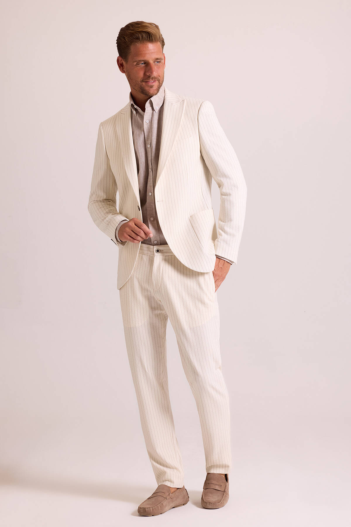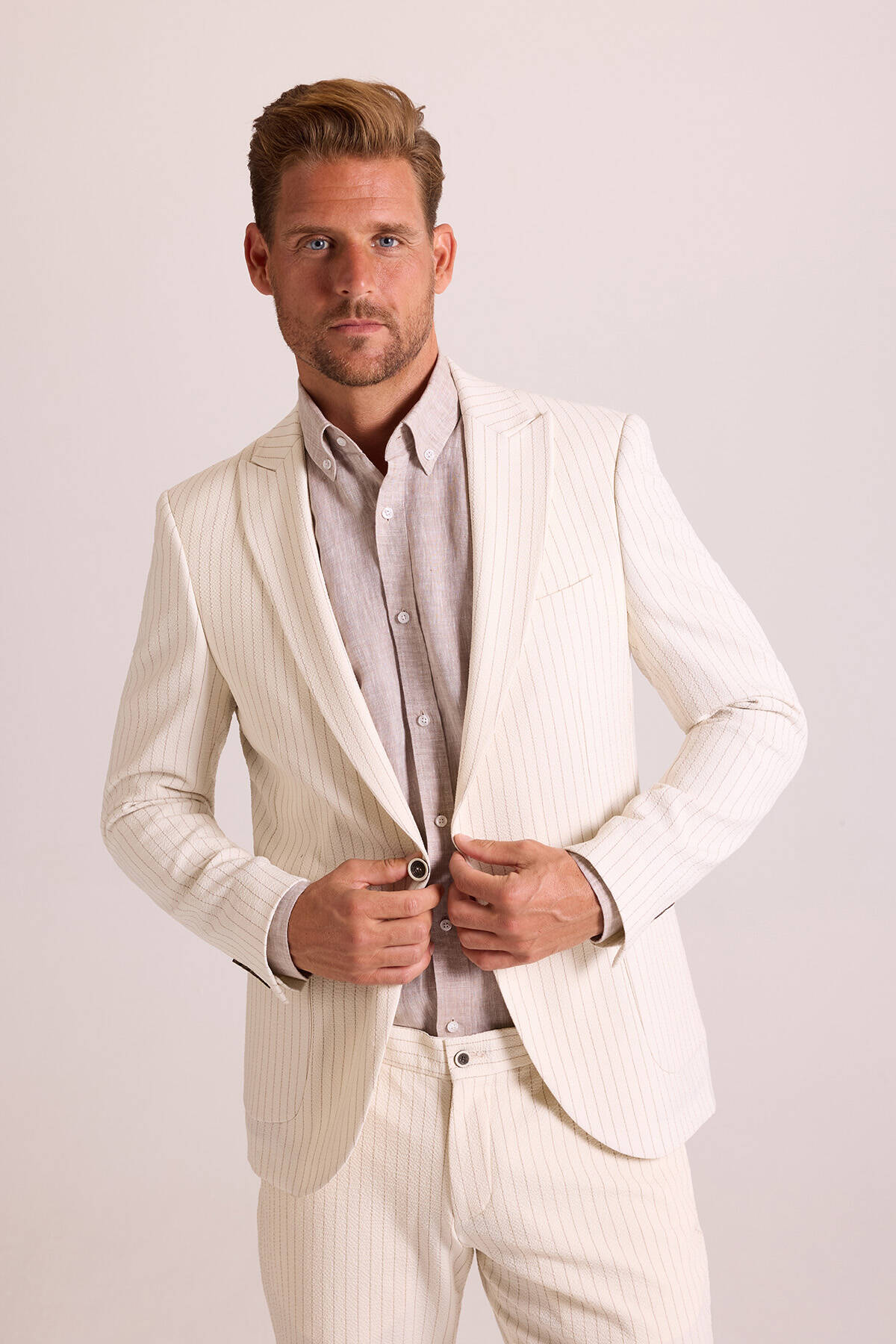 Erkek Krem Regular Fit Tiamo Sivri Yaka Takım Elbise