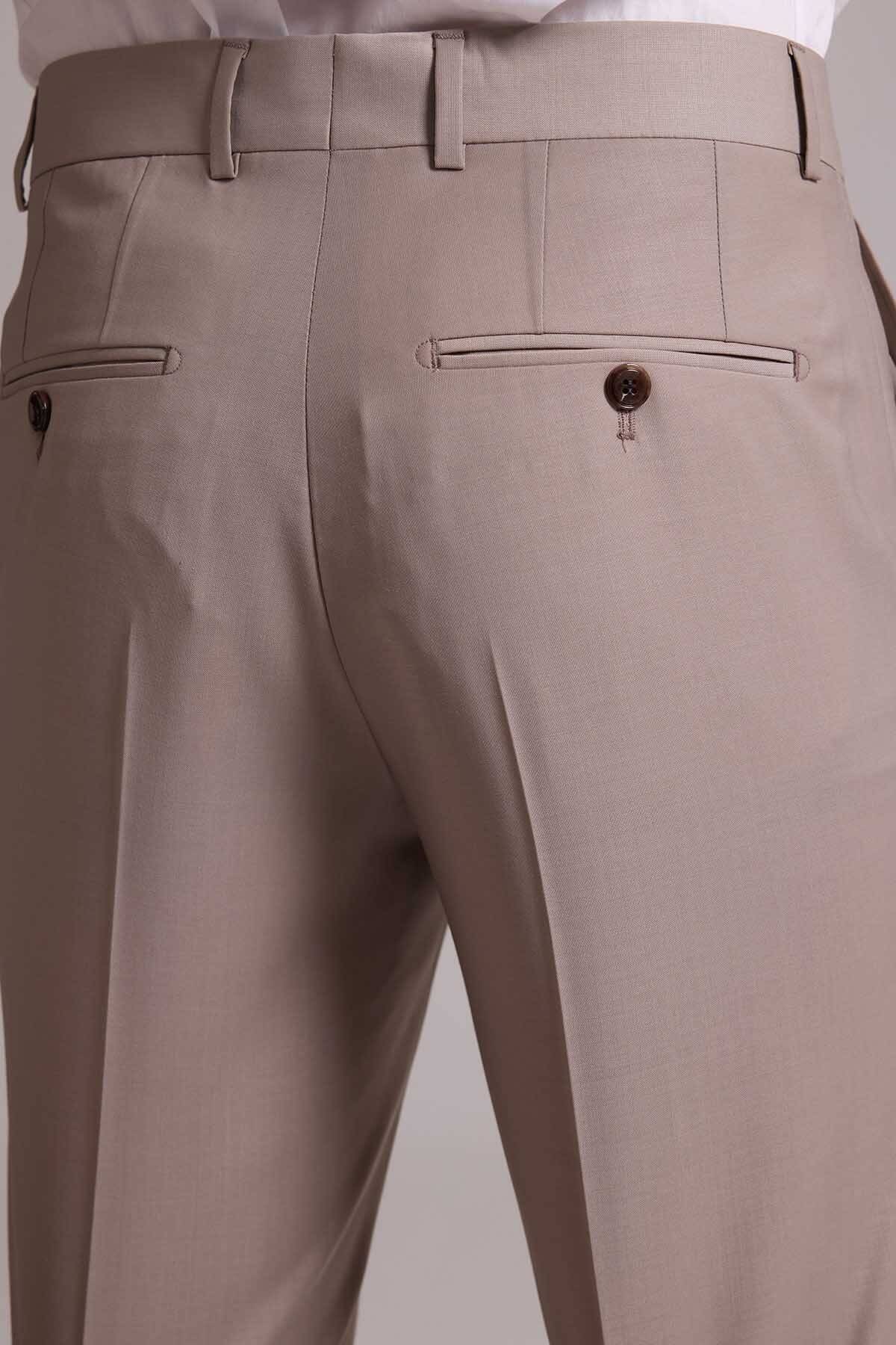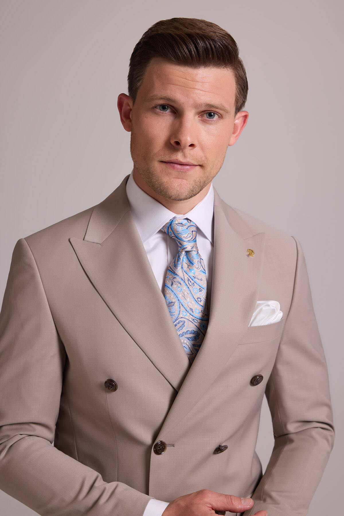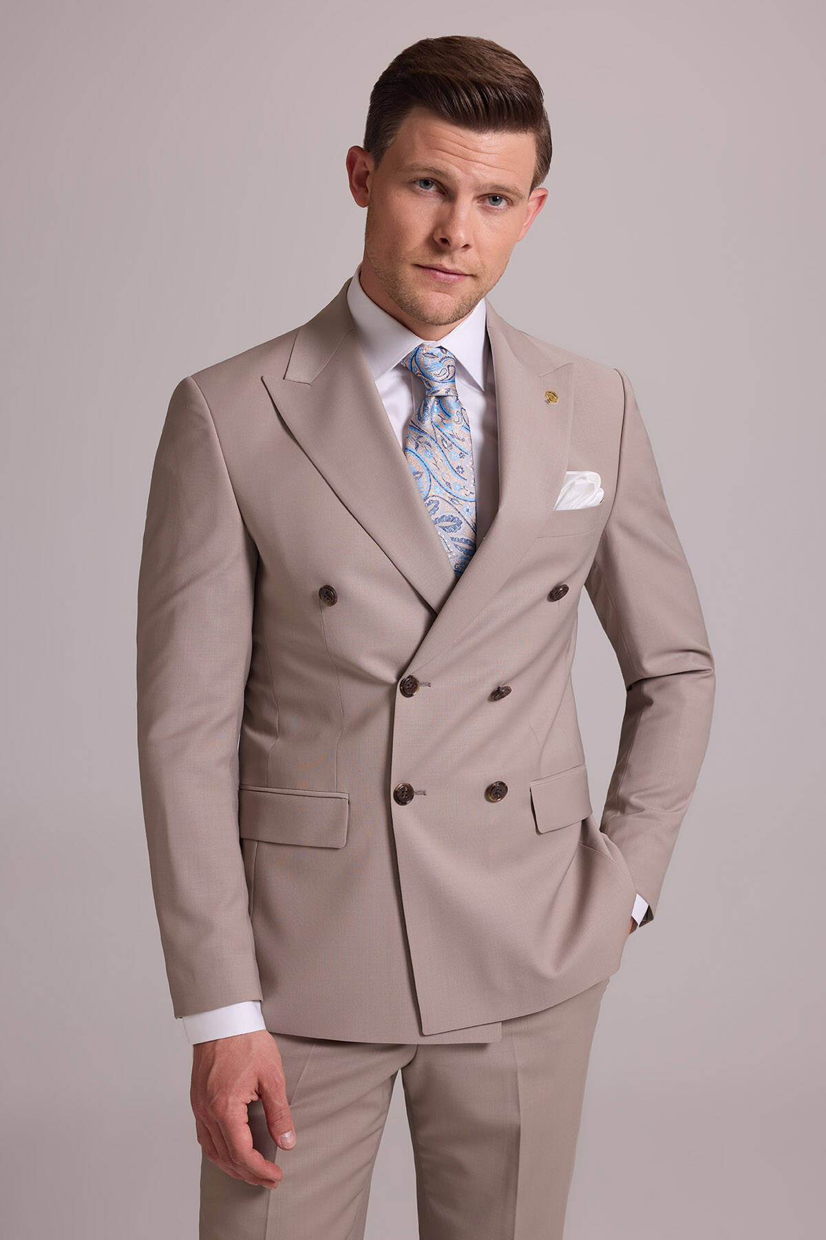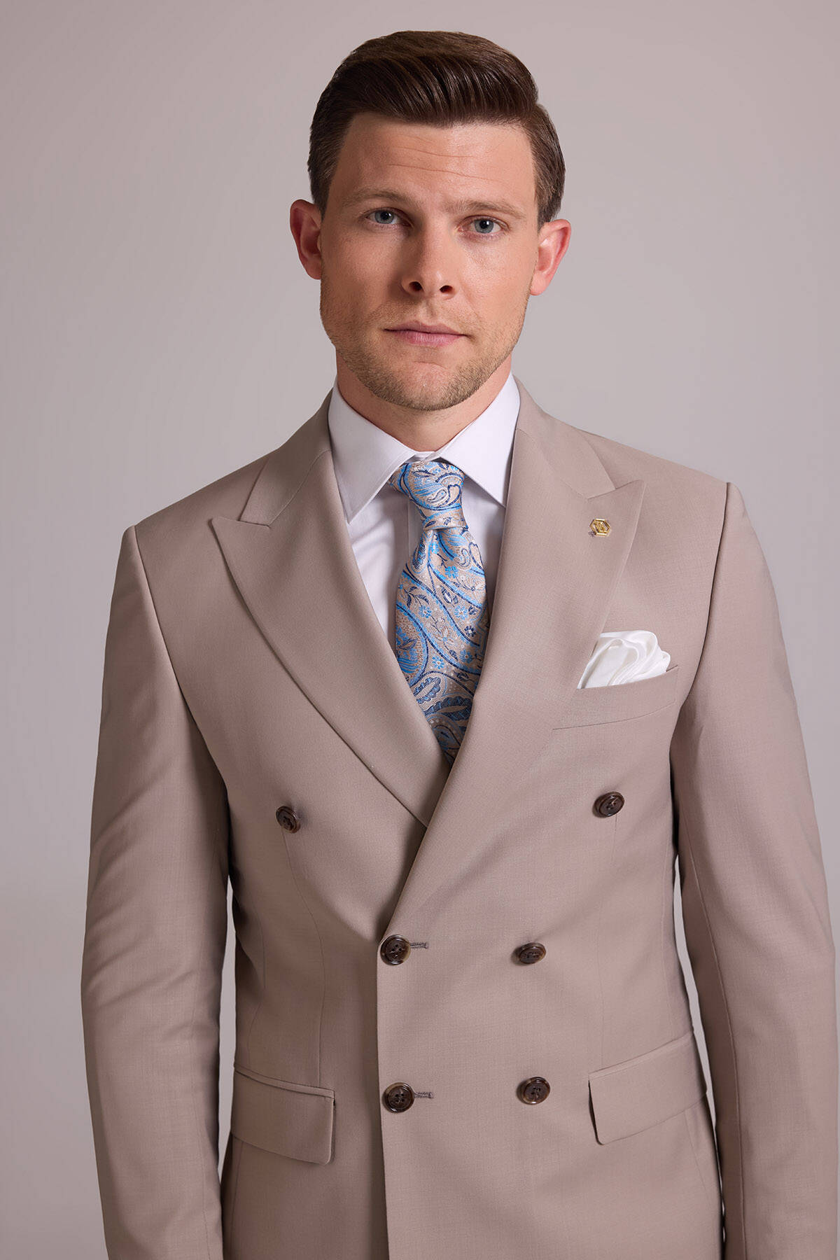 Erkek Krem Slim Fit Kruvaze %100 Yün Takım Elbise