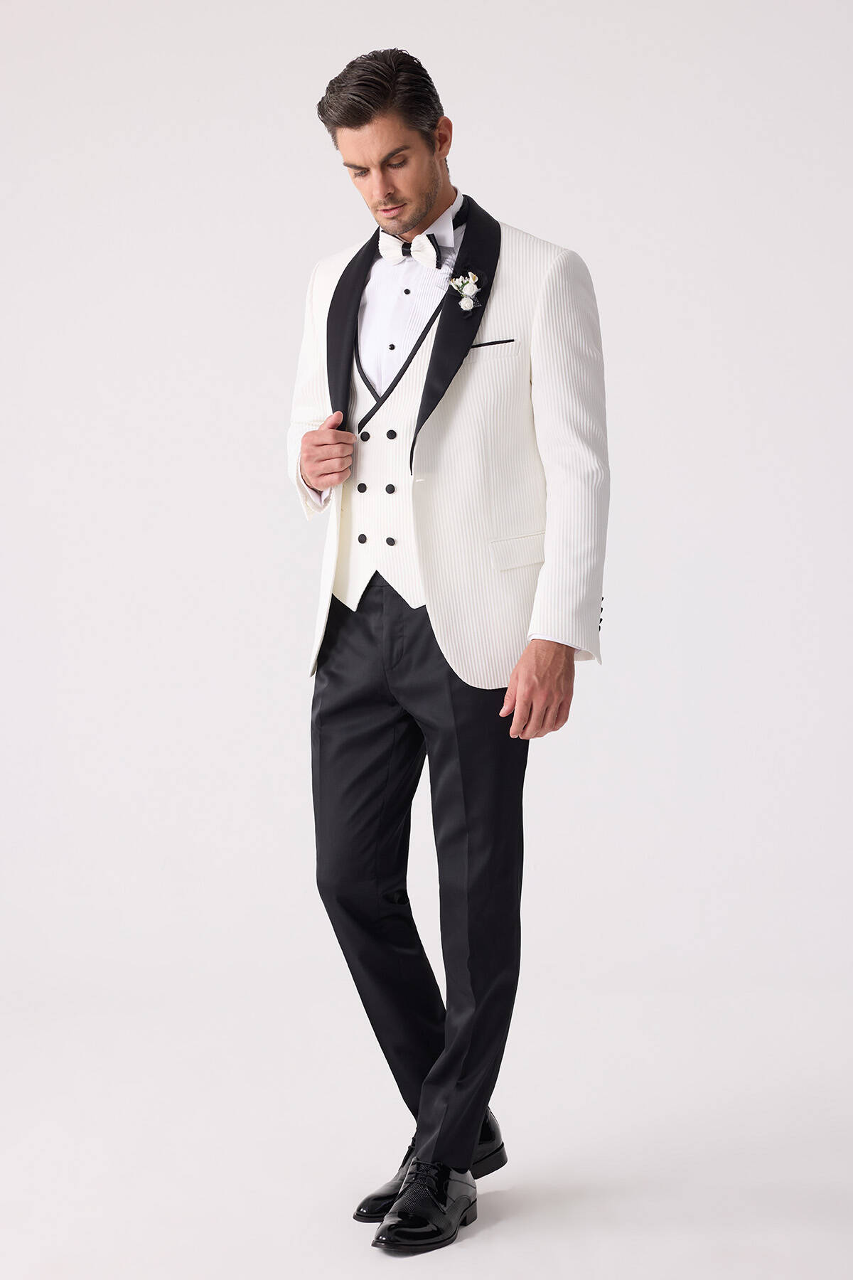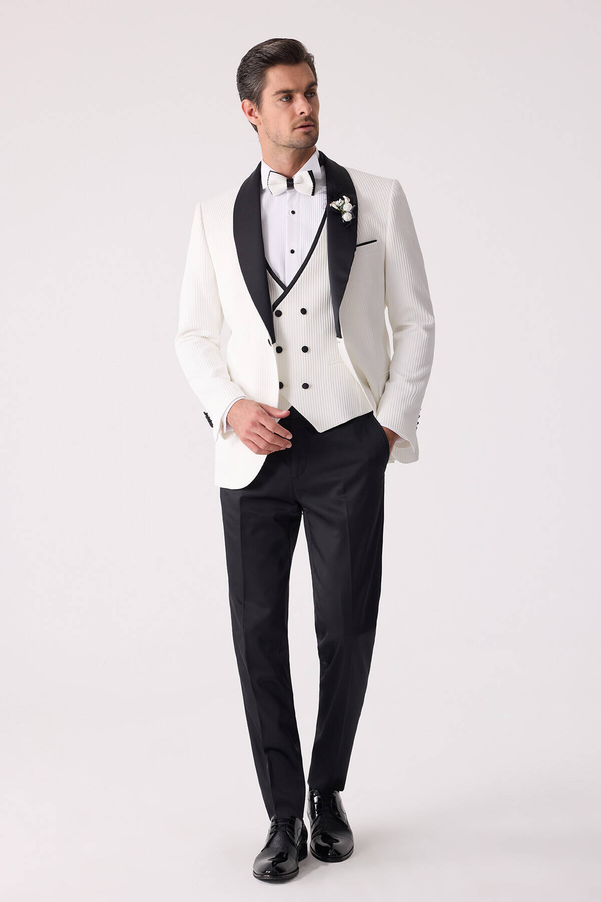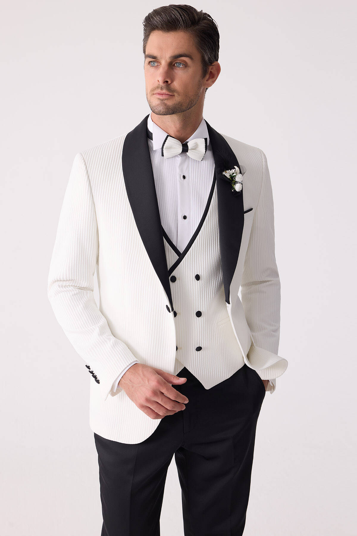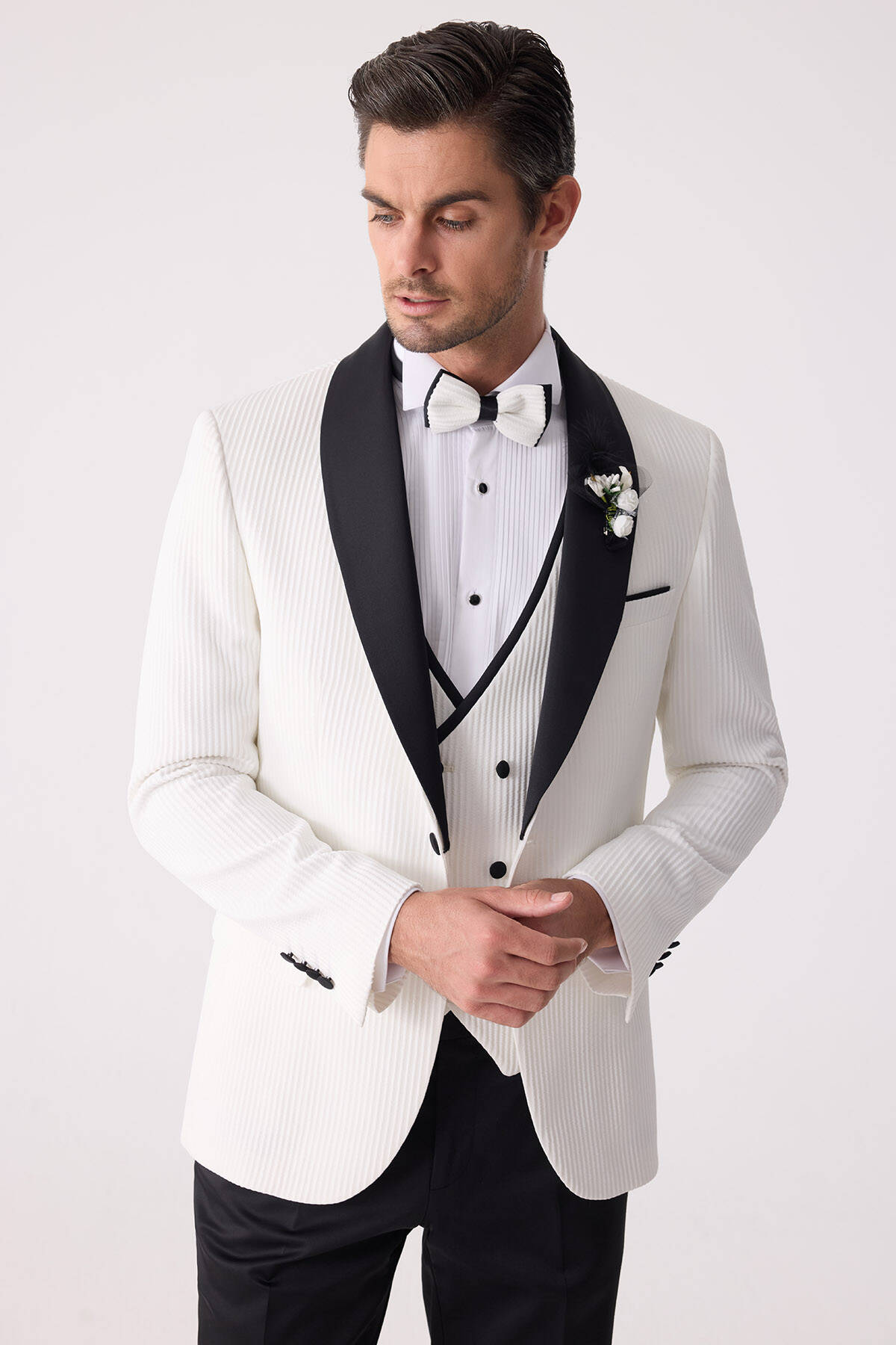 Erkek Krem Slim Fit Şal Yaka Damatlık