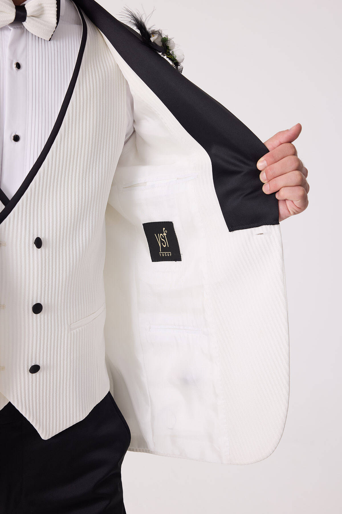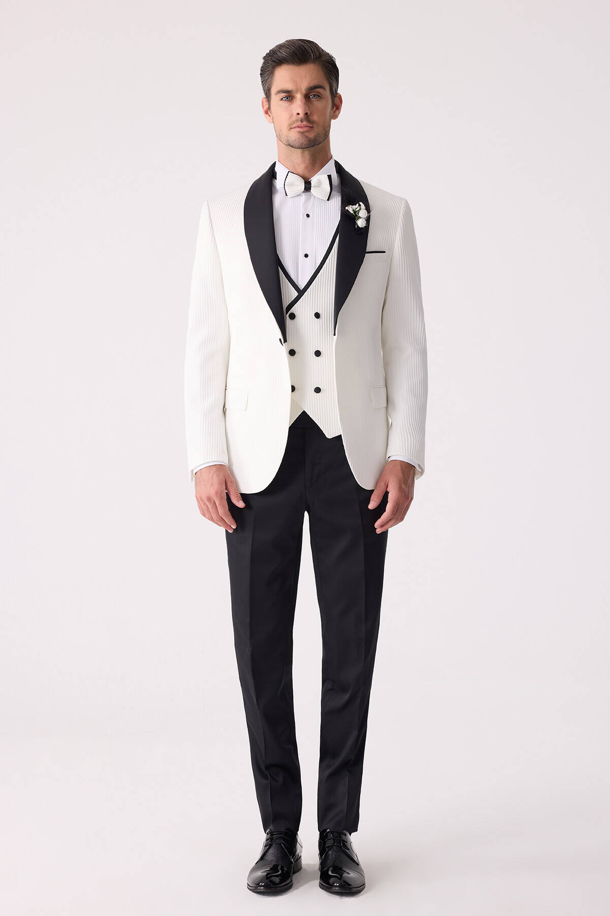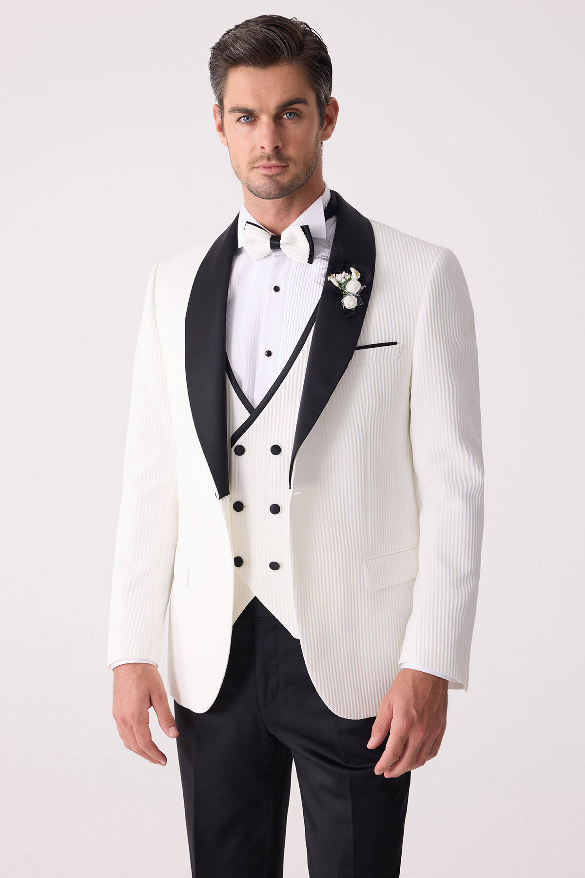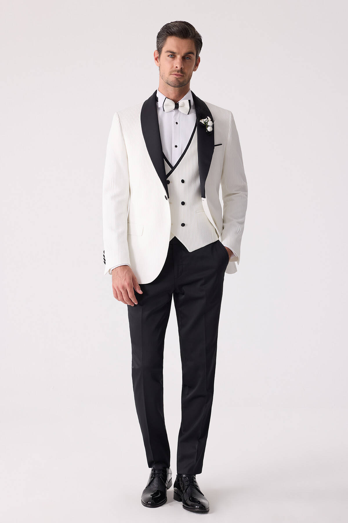 Erkek Krem Slim Fit Şal Yaka Damatlık