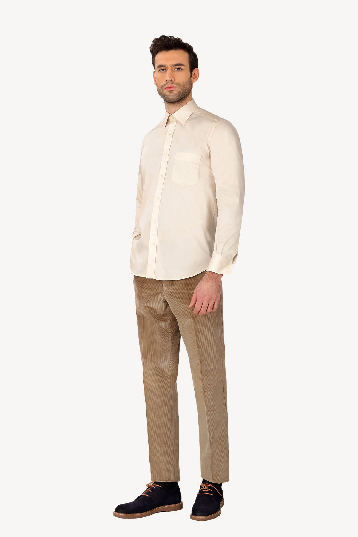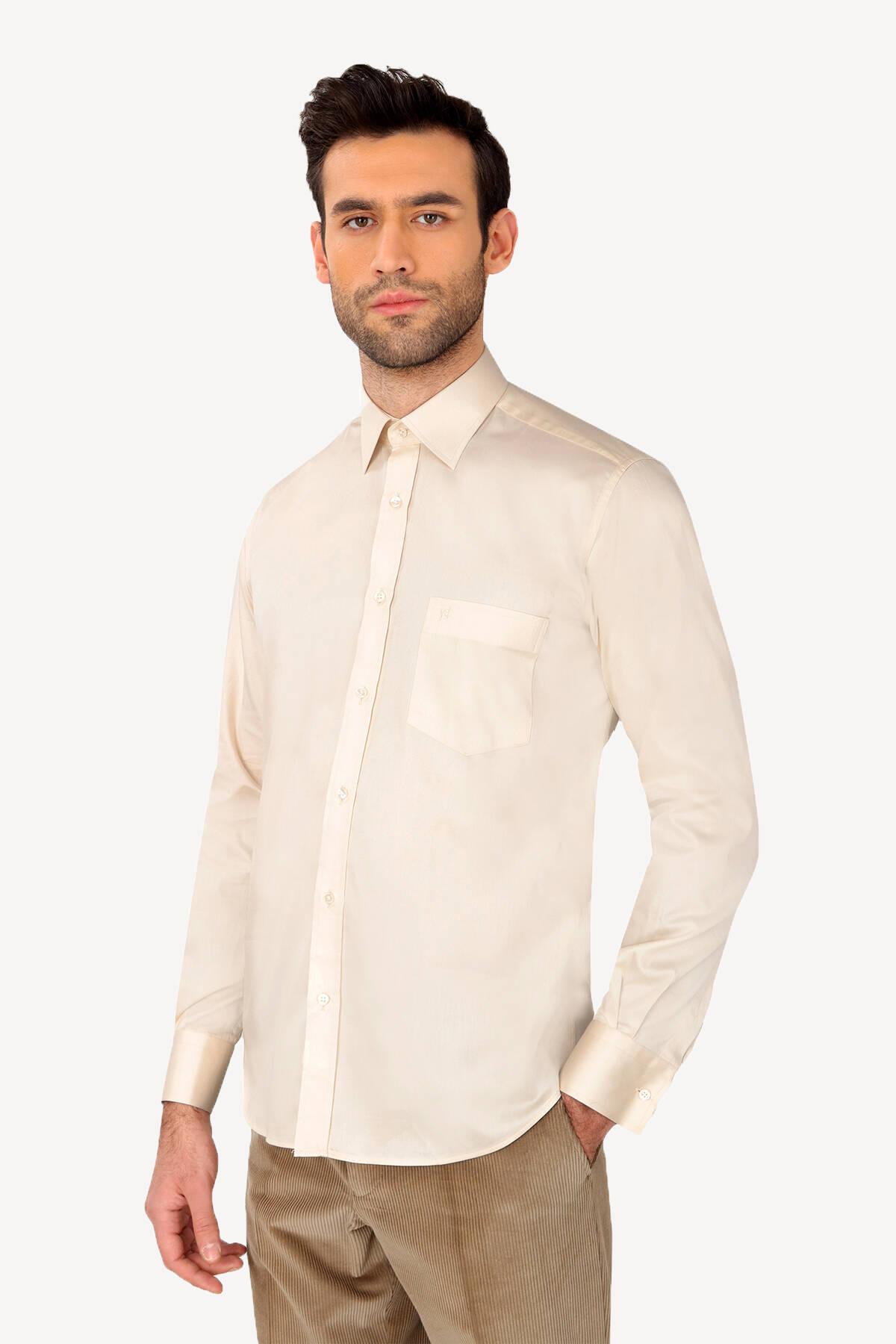 Erkek Beyaz Yarım İtalyan Slim Fit Uzun Kol Gömlek