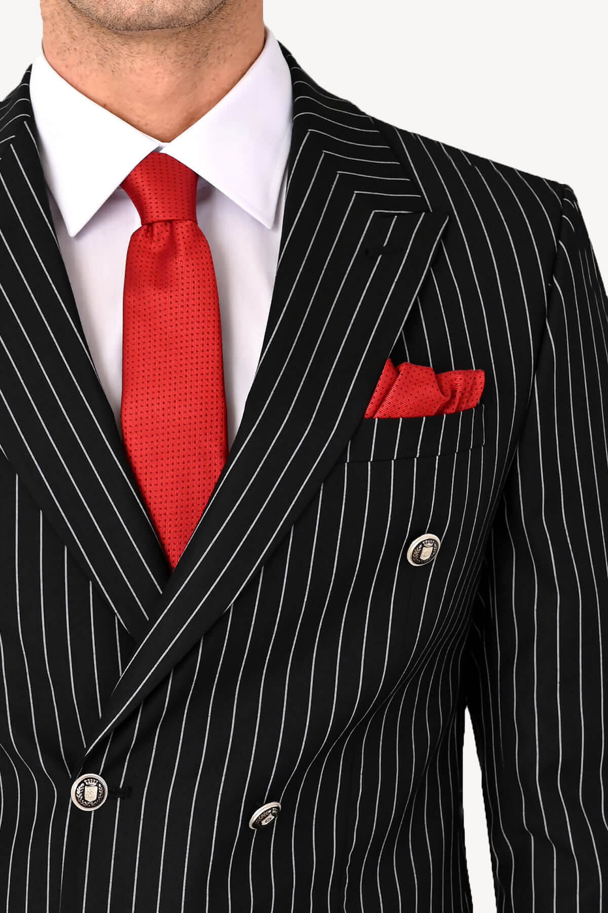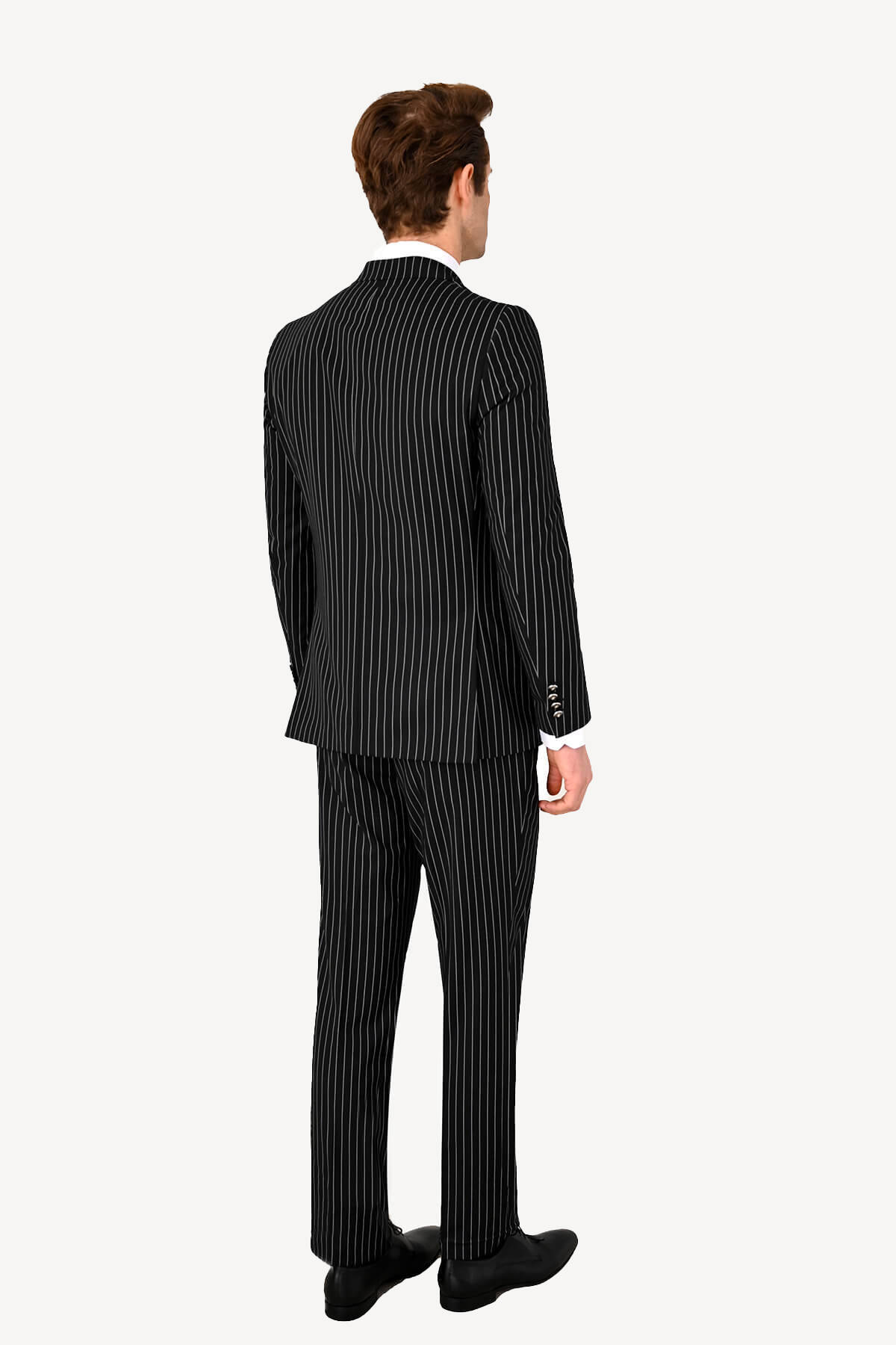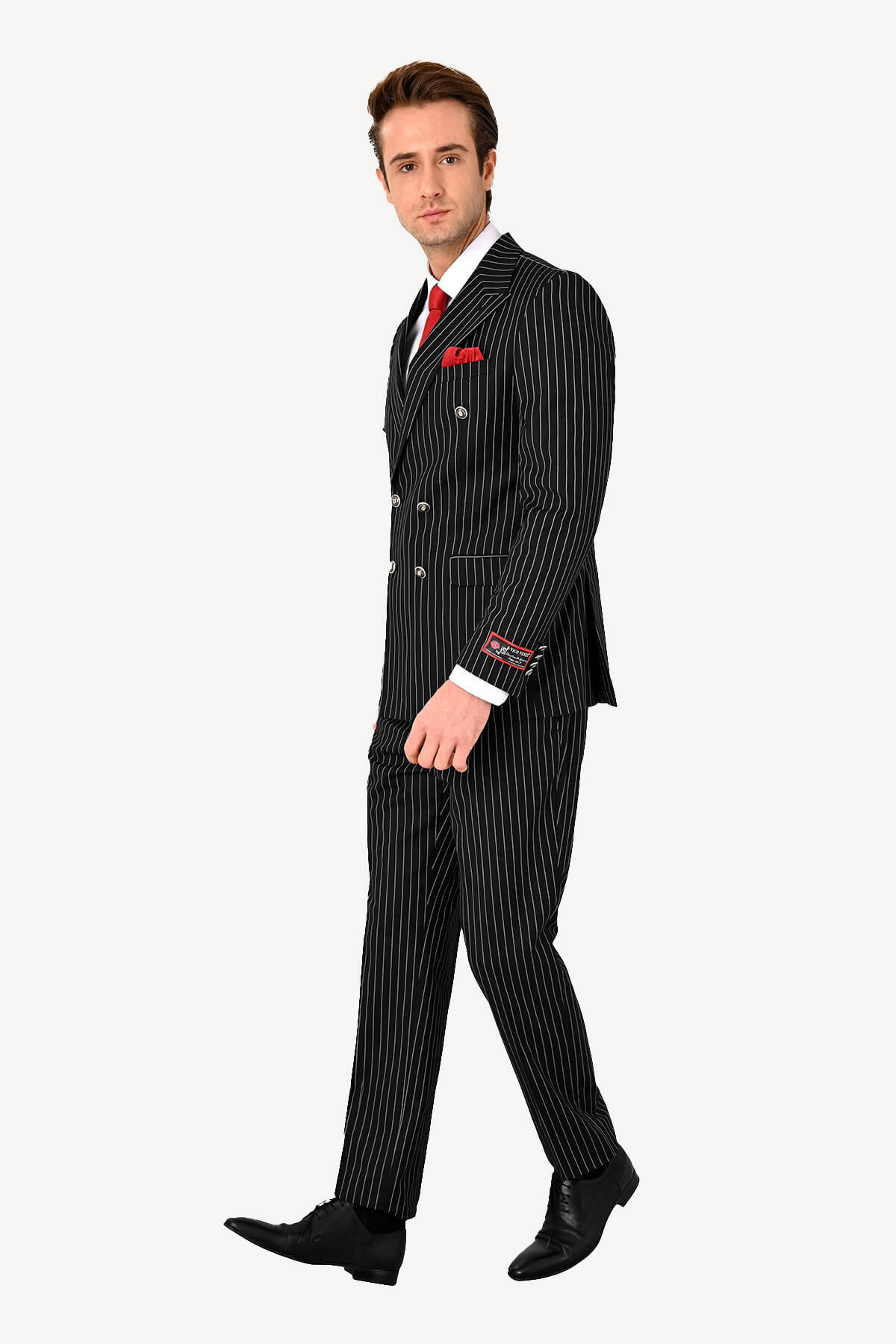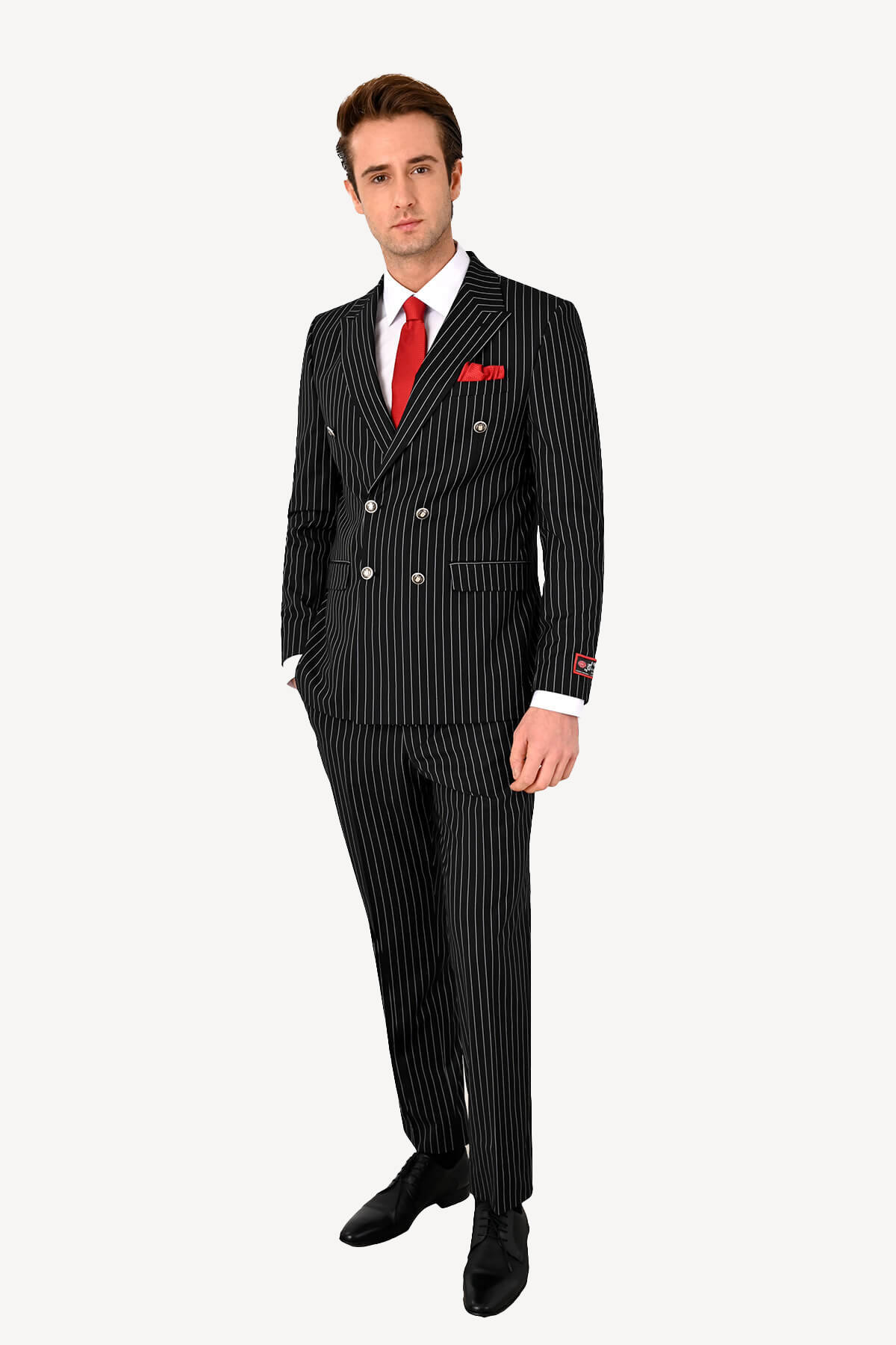 Erkek Siyah Kruvaze Çizgili Regular Fit Takım Elbise