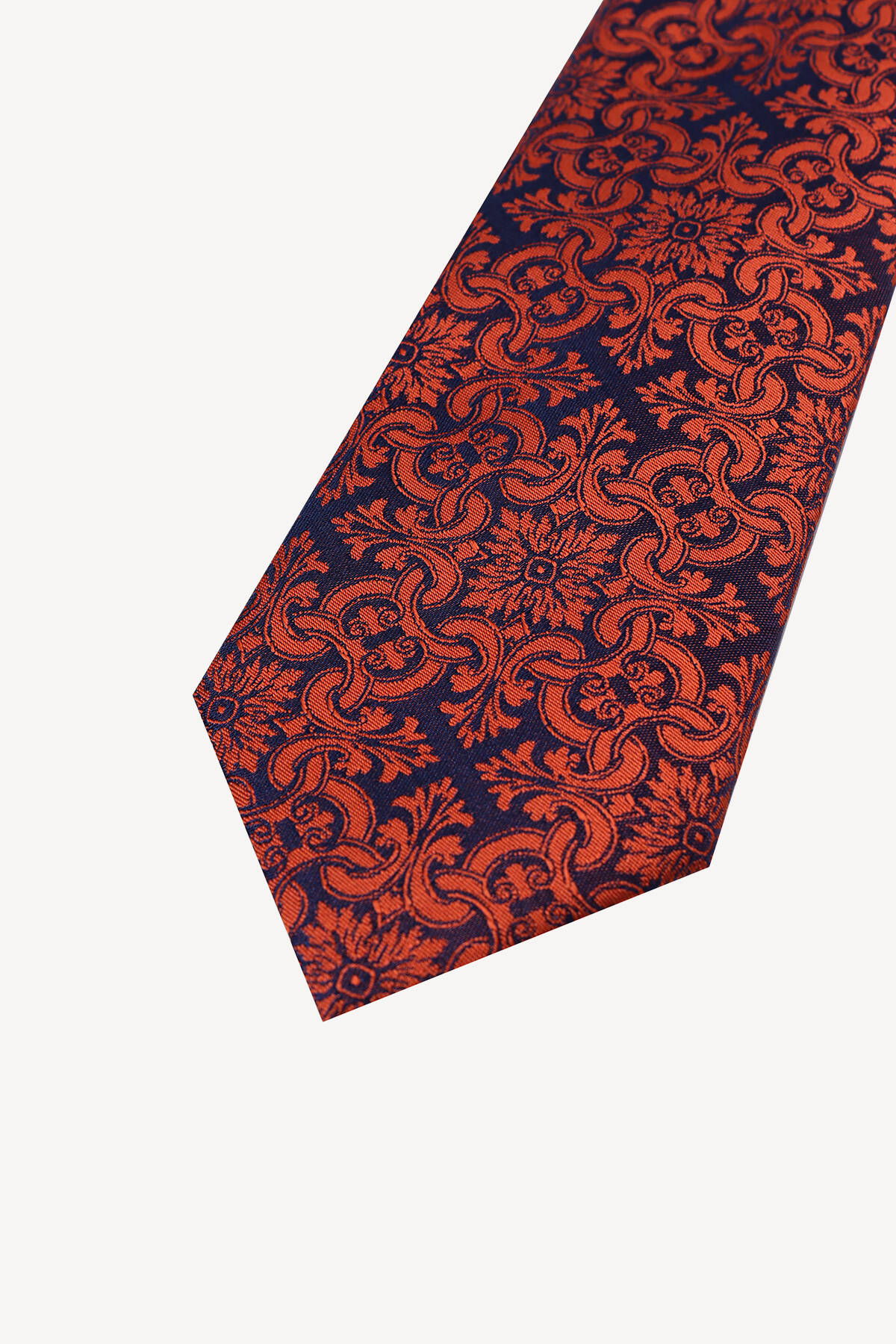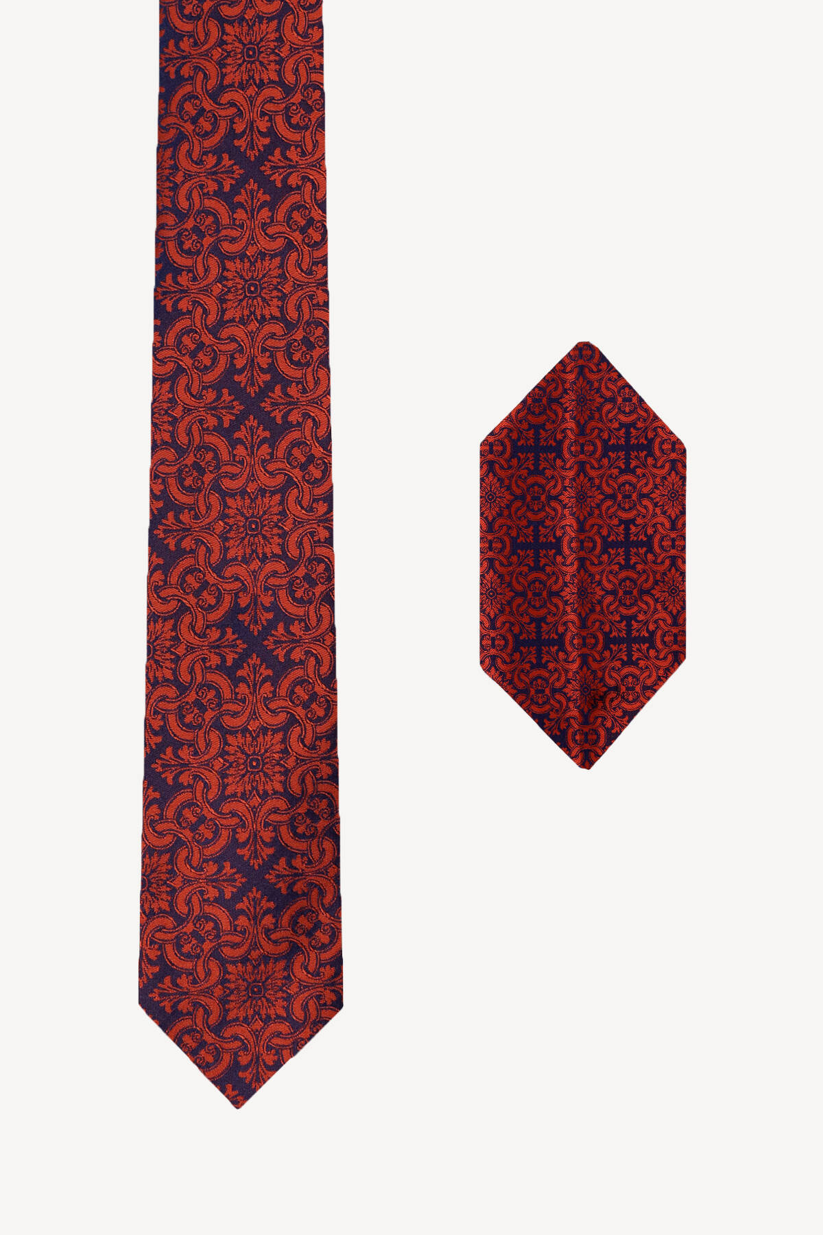 Erkek Lacivert Bakır Desenli Kravat Mendil Set