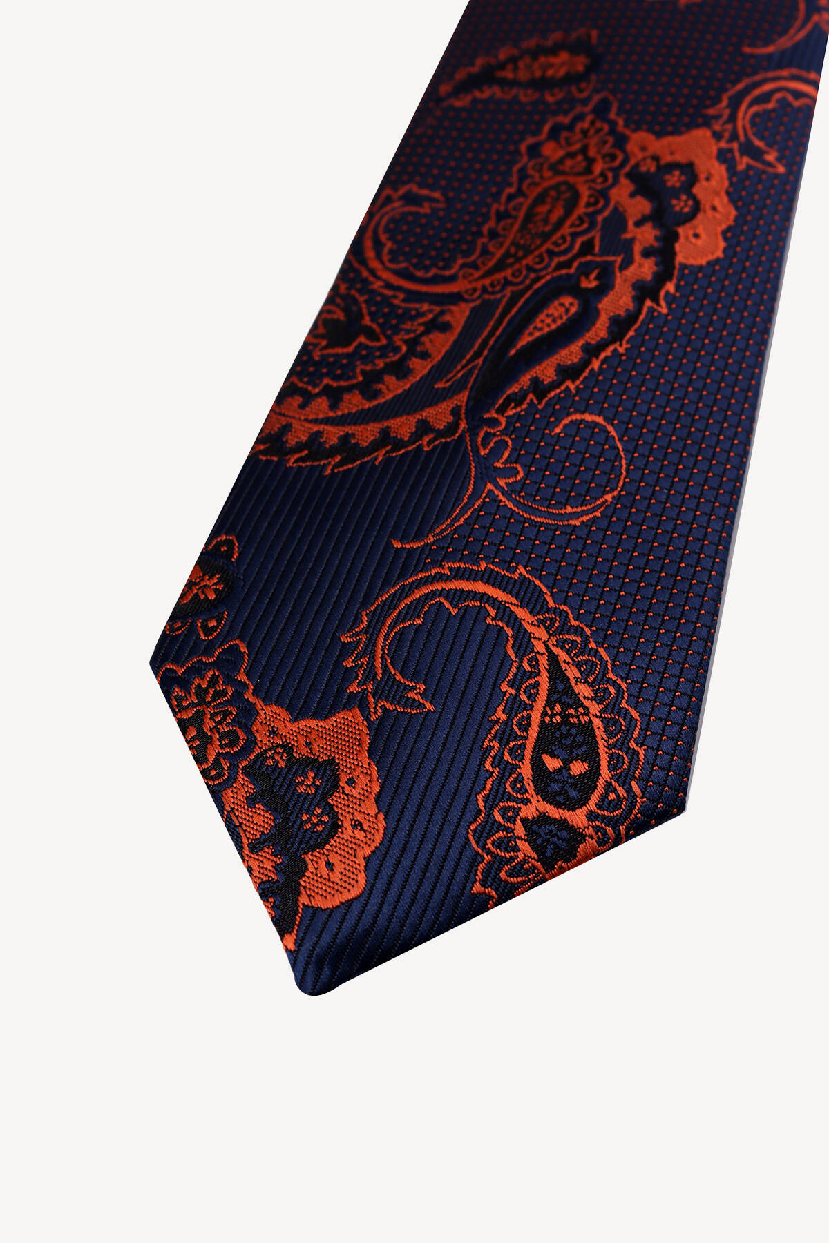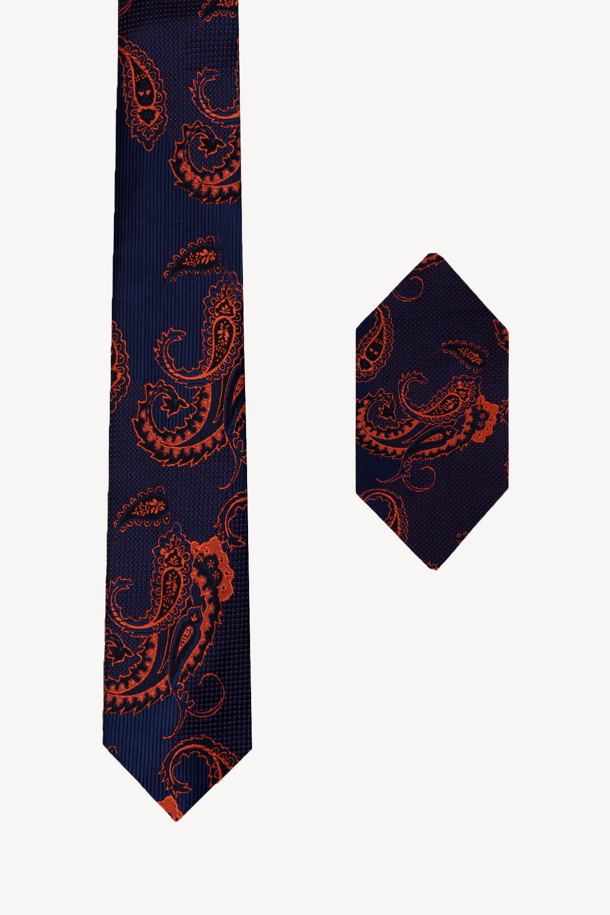 Erkek Lacivert Bakır Desenli Kravat Mendil Set